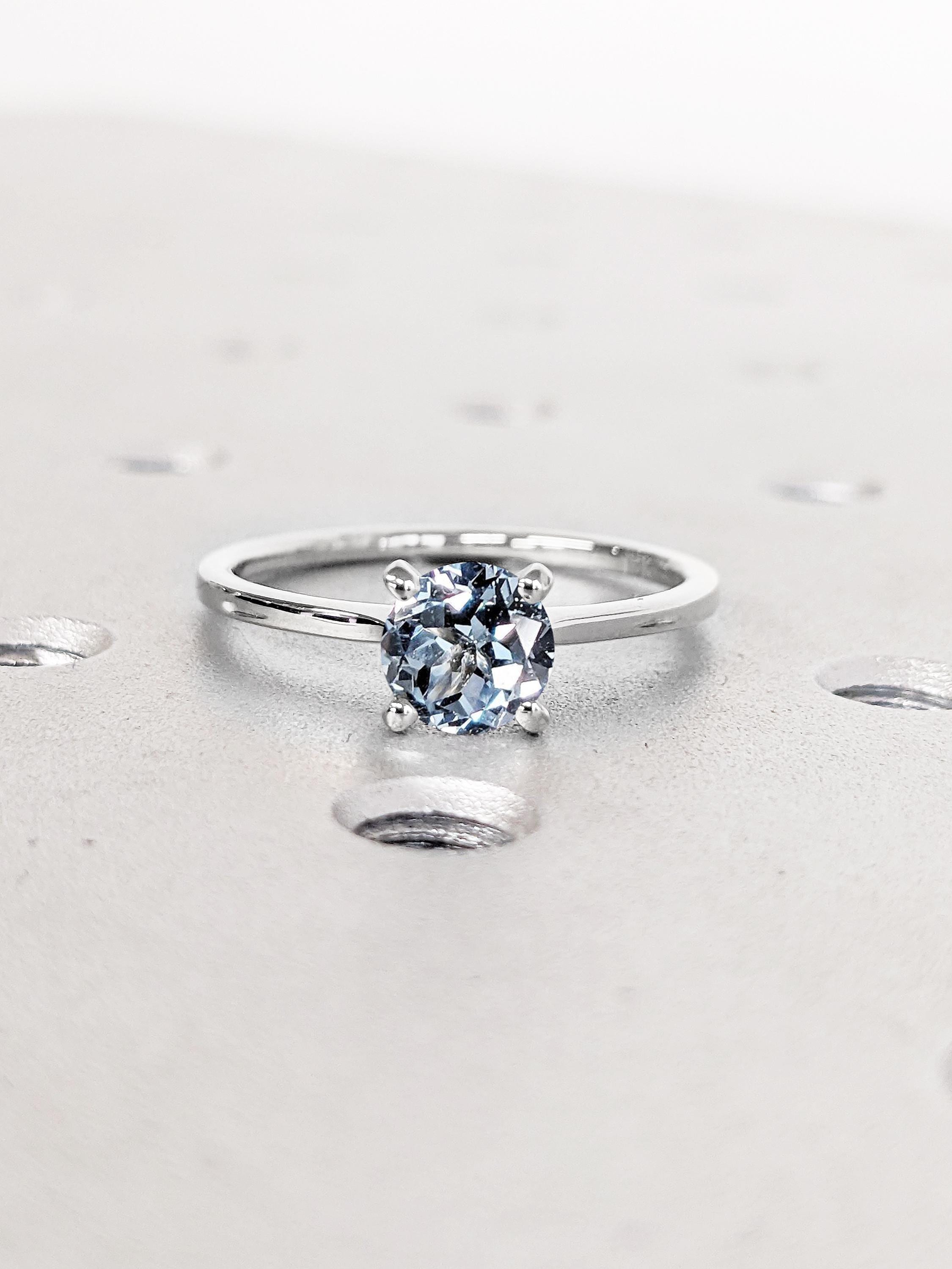 Round Aquamarine Ring, 18k White Gold Engagement Ring, Simple Ring, March Birthstone Ring, Lab Aquamarine Solitaire Ring, Gemstone Jewelry