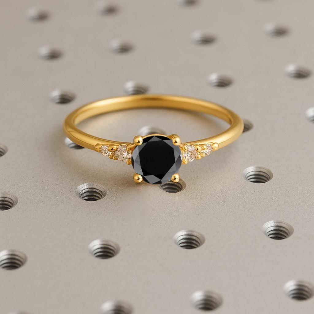 Round Black Diamond Ring, Solid Gold Ring, 0.5ct Diamond Engagement Ring, Diamond Wedding Band, Promise Ring for Her, Dainty Diamond Ring