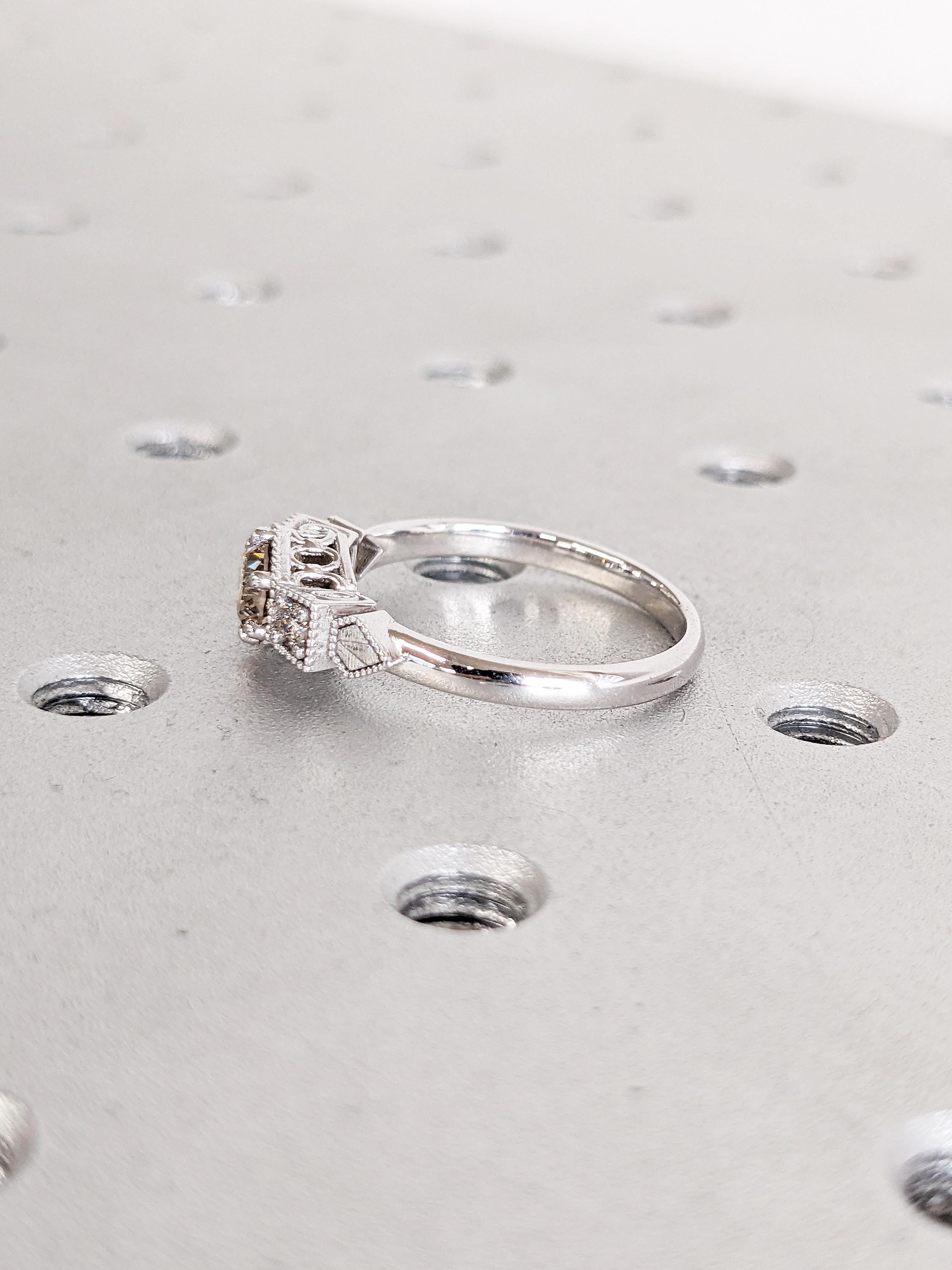 Round Champagne Diamond Ring, White Gold Ring, Milgrain Engagement Ring, Antique Ring, Vintage Style Ring, Moissanite and Brown Diamond Ring