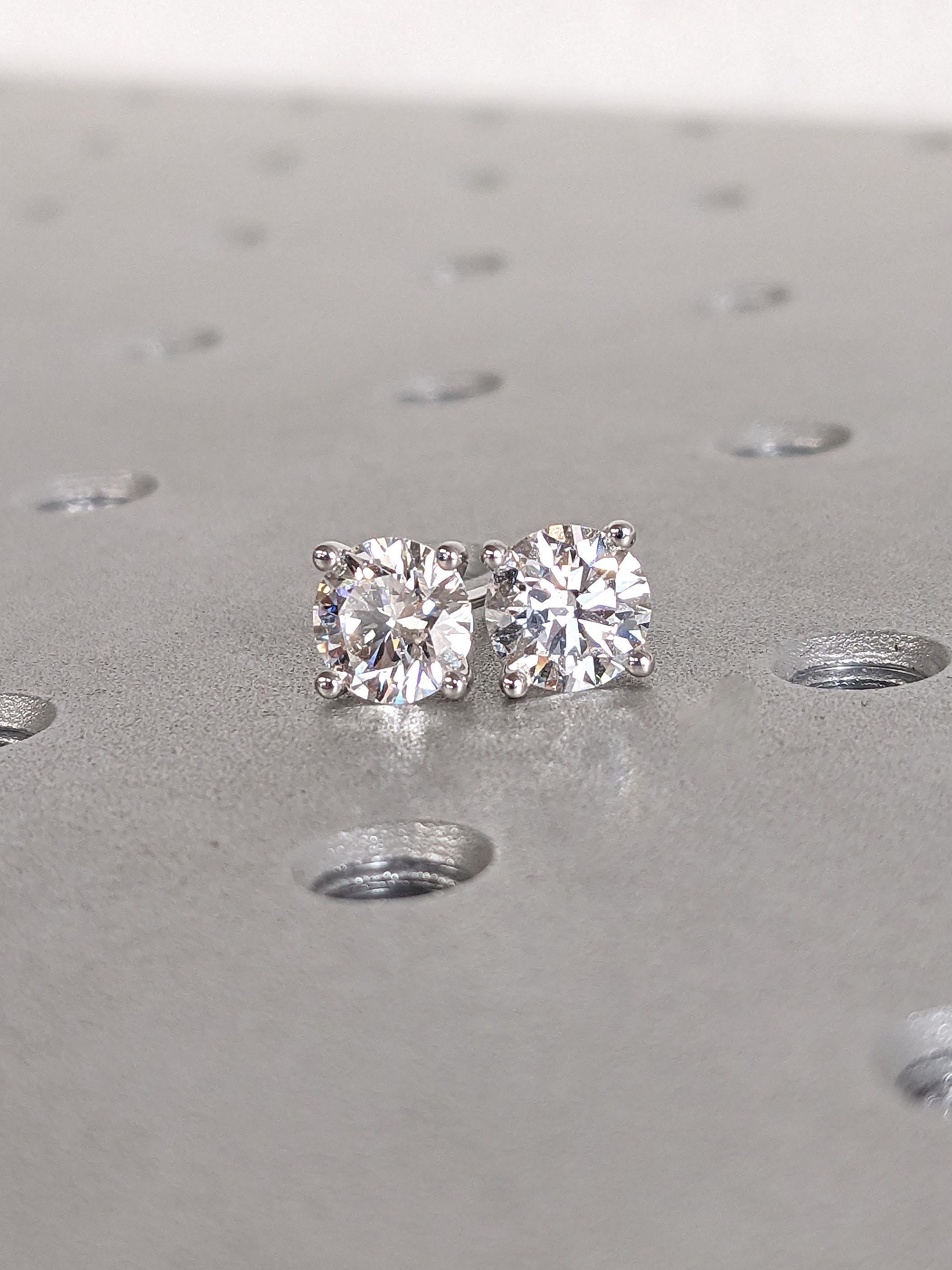 These classic stud earrings feature round cut Lab Diamond set in a sleek four-prong martini basket, offering maximum light entry and brilliant sparkle. Finished with secure push-back closures, they’re a timeless everyday essential—minimal, elegant, and effortlessly luminous.