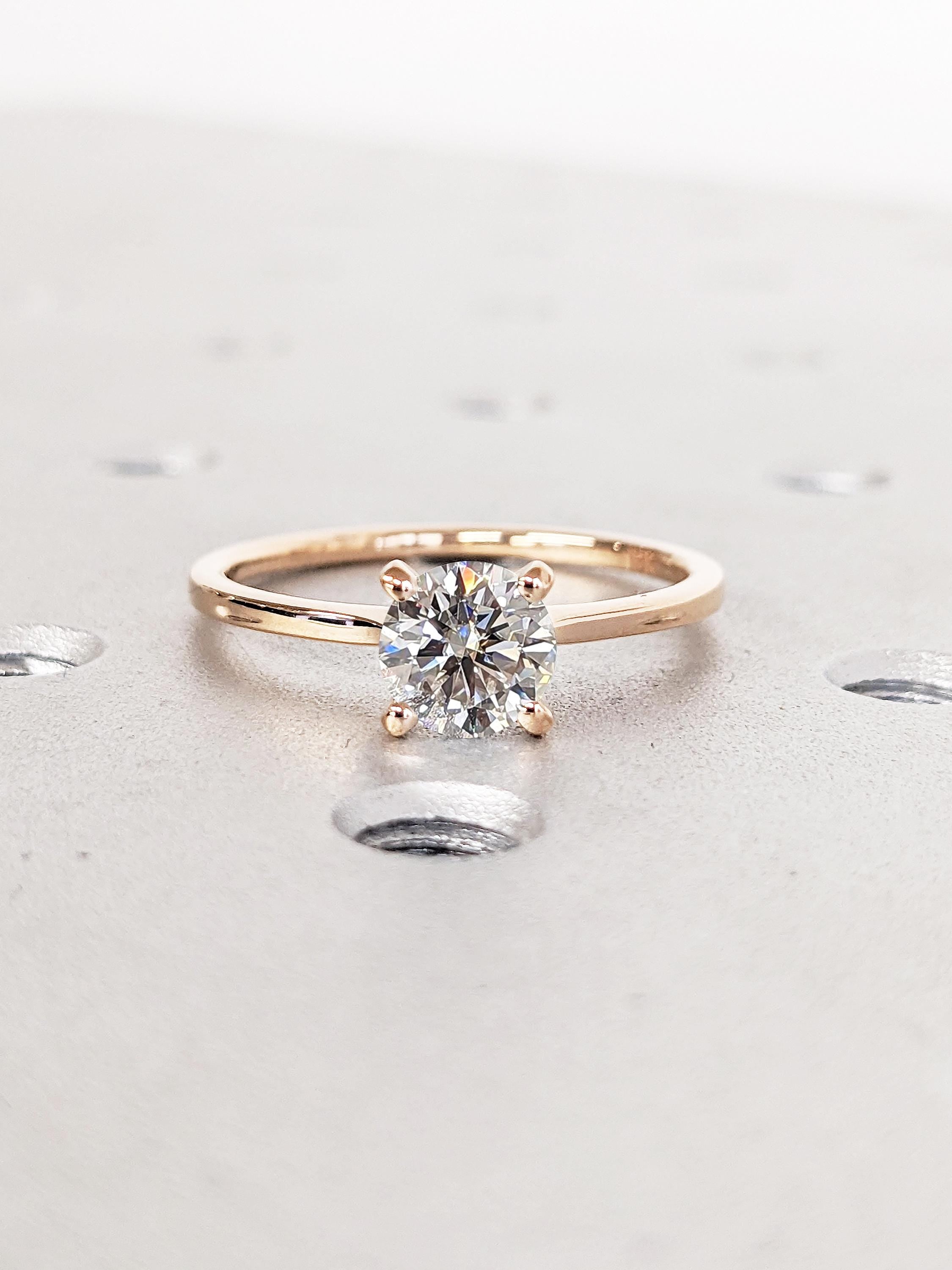 Round Cut Lab Diamond Ring, 14k/18k Rose Gold Engagement Ring, Solitaire Ring