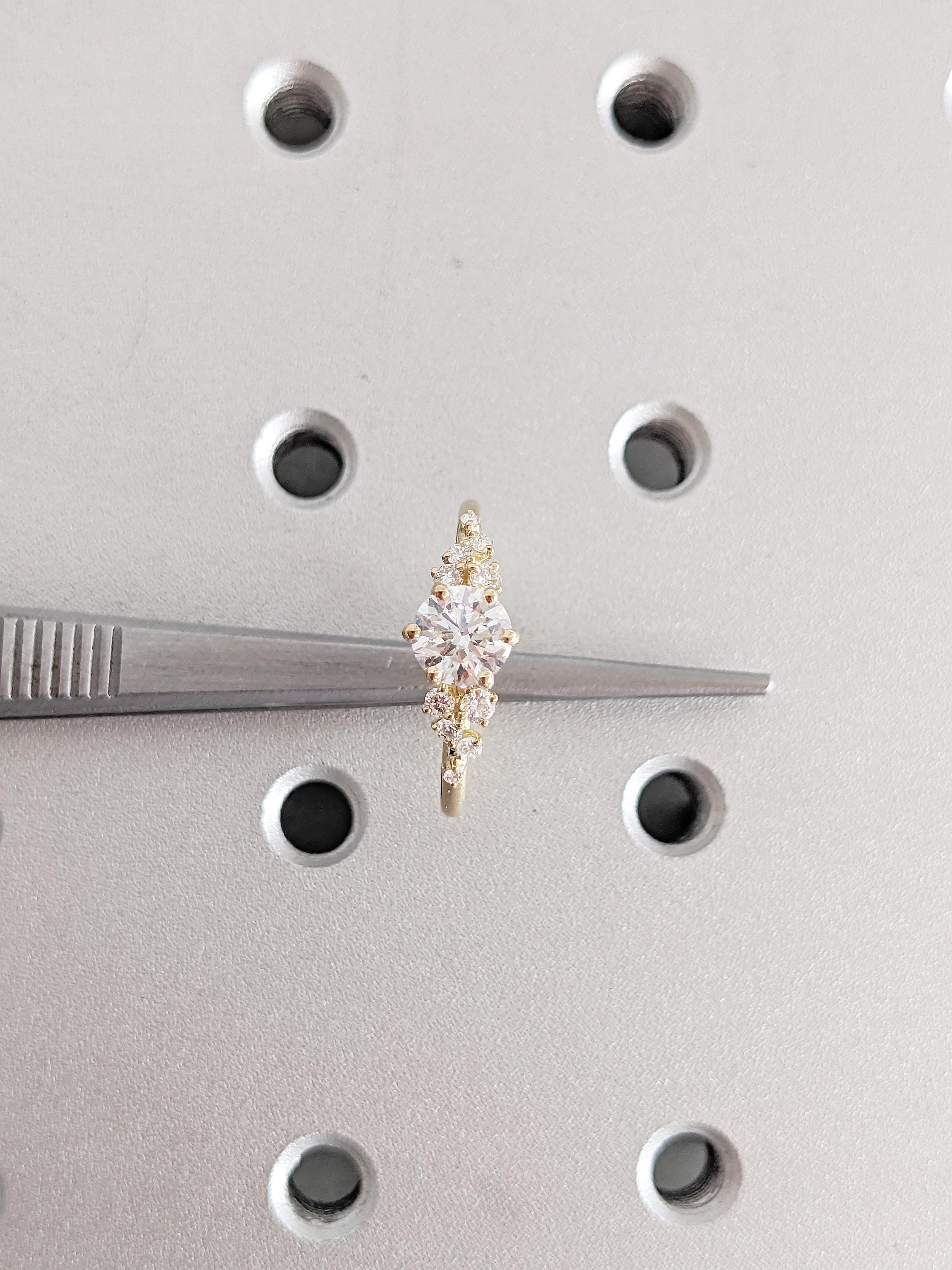 Round Cut Lab Grown Diamond Ring, Gold Engagement Ring, Art Deco Lab Diamond Ring, Diamond Cluster Ring, Raw Diamond Ring, Vintage Gold Ring