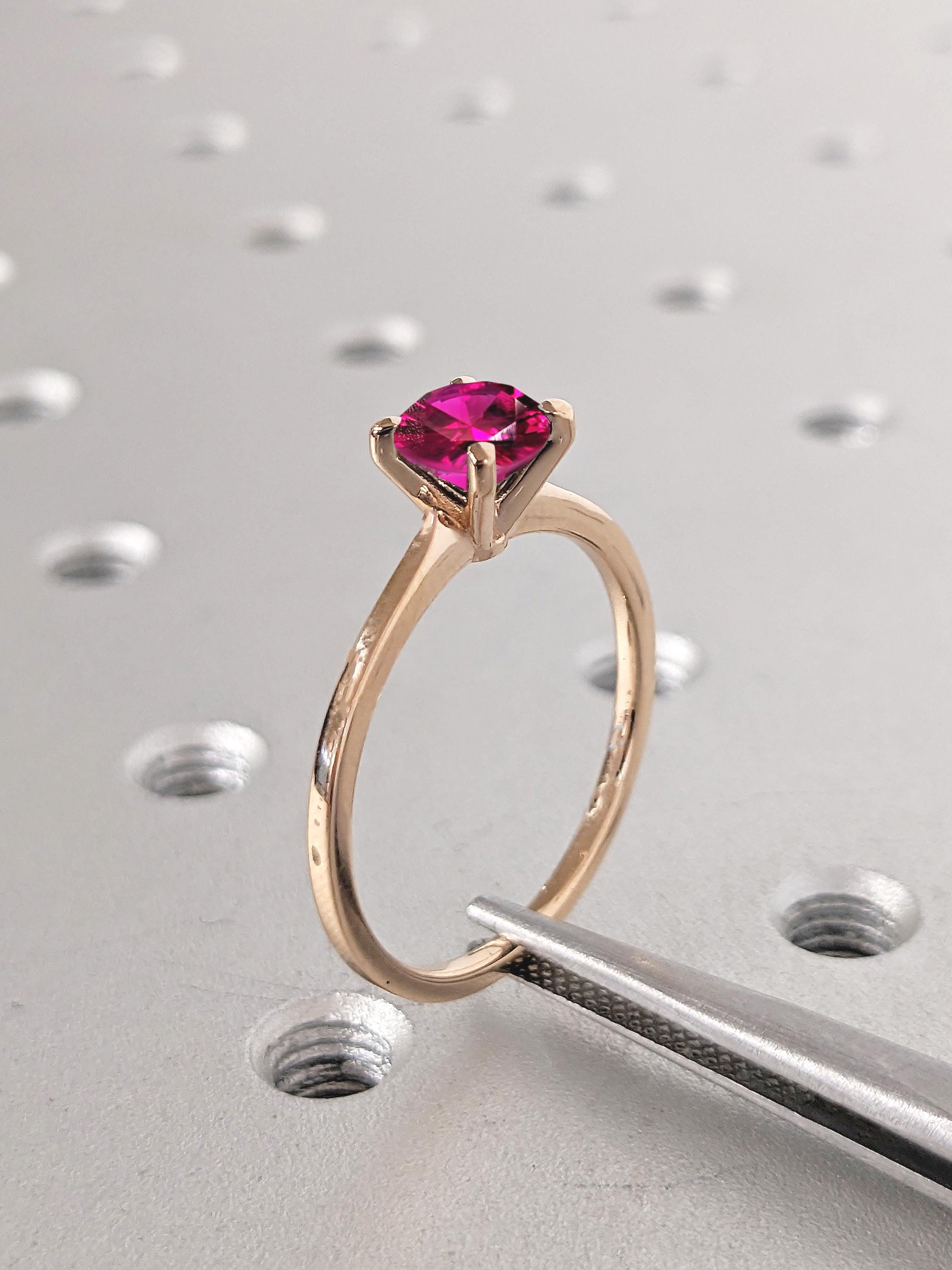 Round Cut Lab Ruby Engagement Ring, Vintage Ruby Rings, 18k Rose Gold Ring, Solitaire Wedding Ring for Women, July Birthstone Ring, Red Ring
