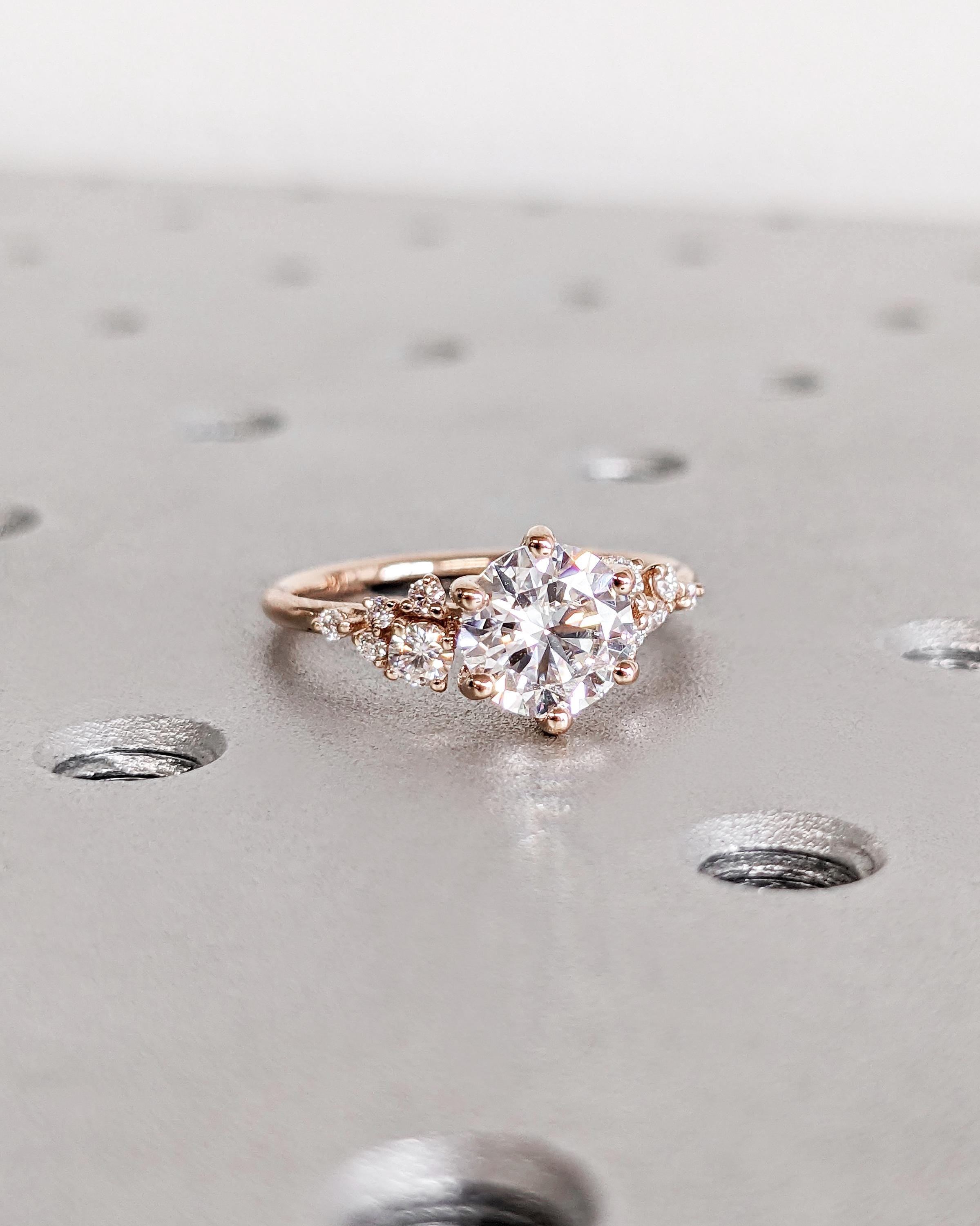 Round Cut Moissanite Engagement Ring, Dainty Rose Gold Ring, Snowdrift Diamond Cluster Ring, Moissanite Promise Rings for Women, Bridal Gift