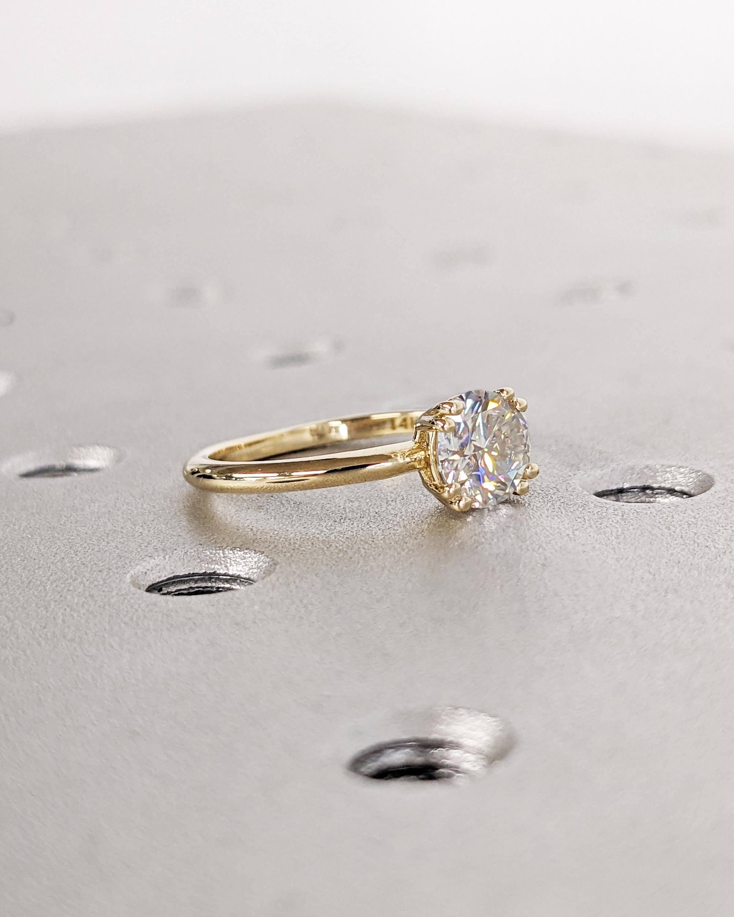 Round Cut Moissanite Engagement Ring / Solitaire Moissanite Ring / Double Prong Engagement Ring / 14K Gold Classic Round Cut Moissanite Ring