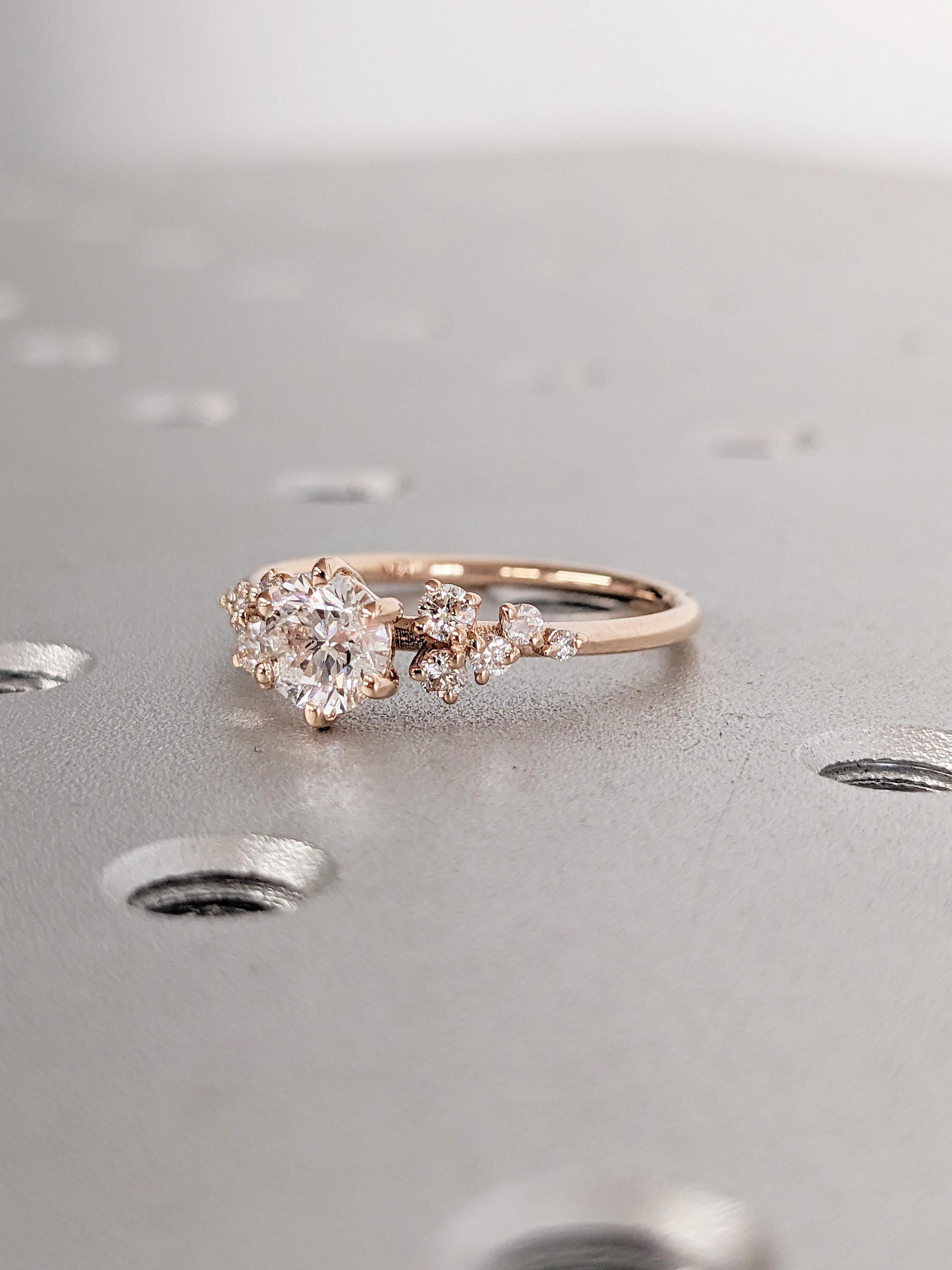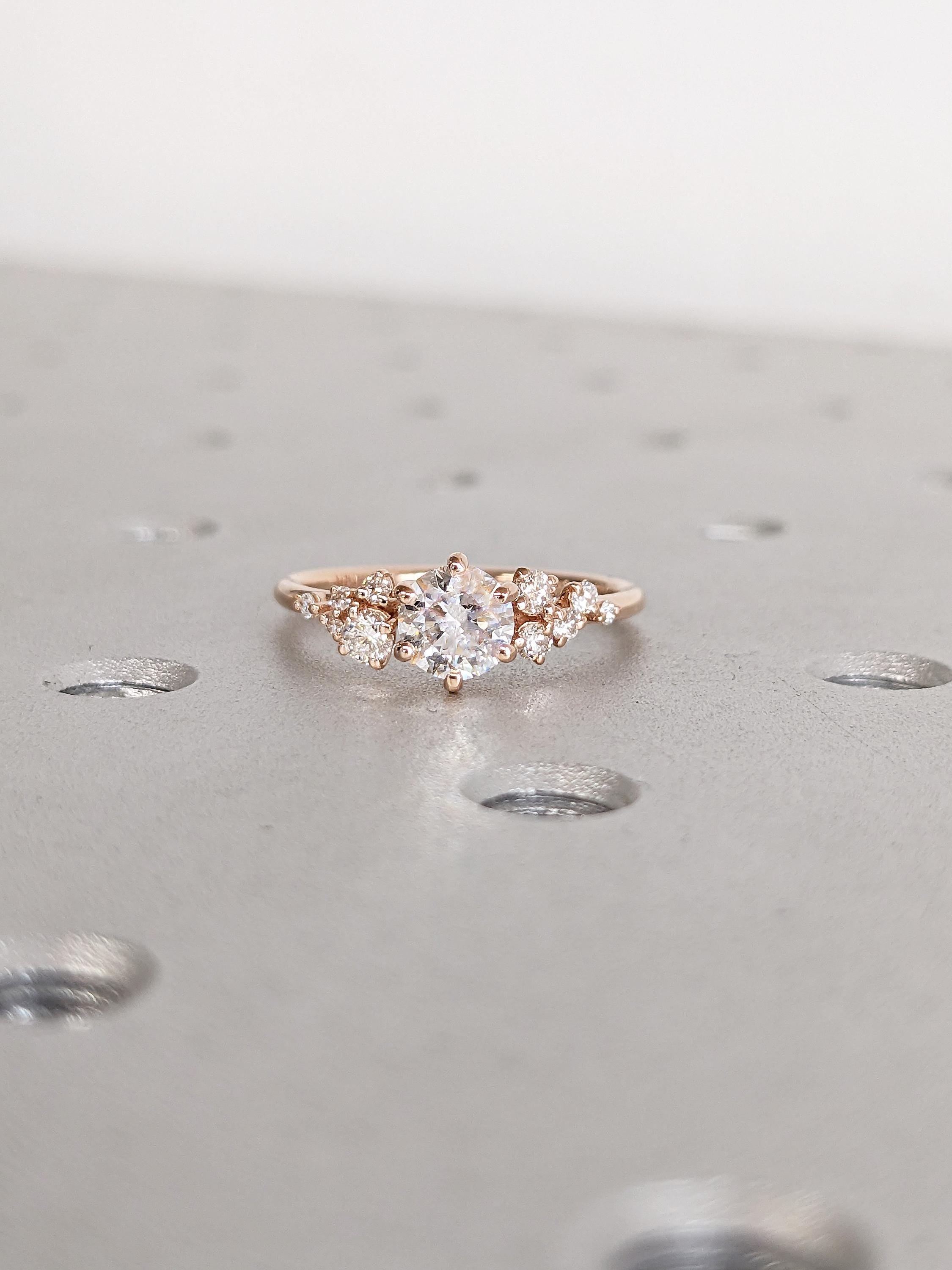 Round Cut Moissanite Engagement Ring, Dainty Rose Gold Ring, Snowdrift Diamond Cluster Ring, Moissanite Promise Rings for Women, Bridal Gift