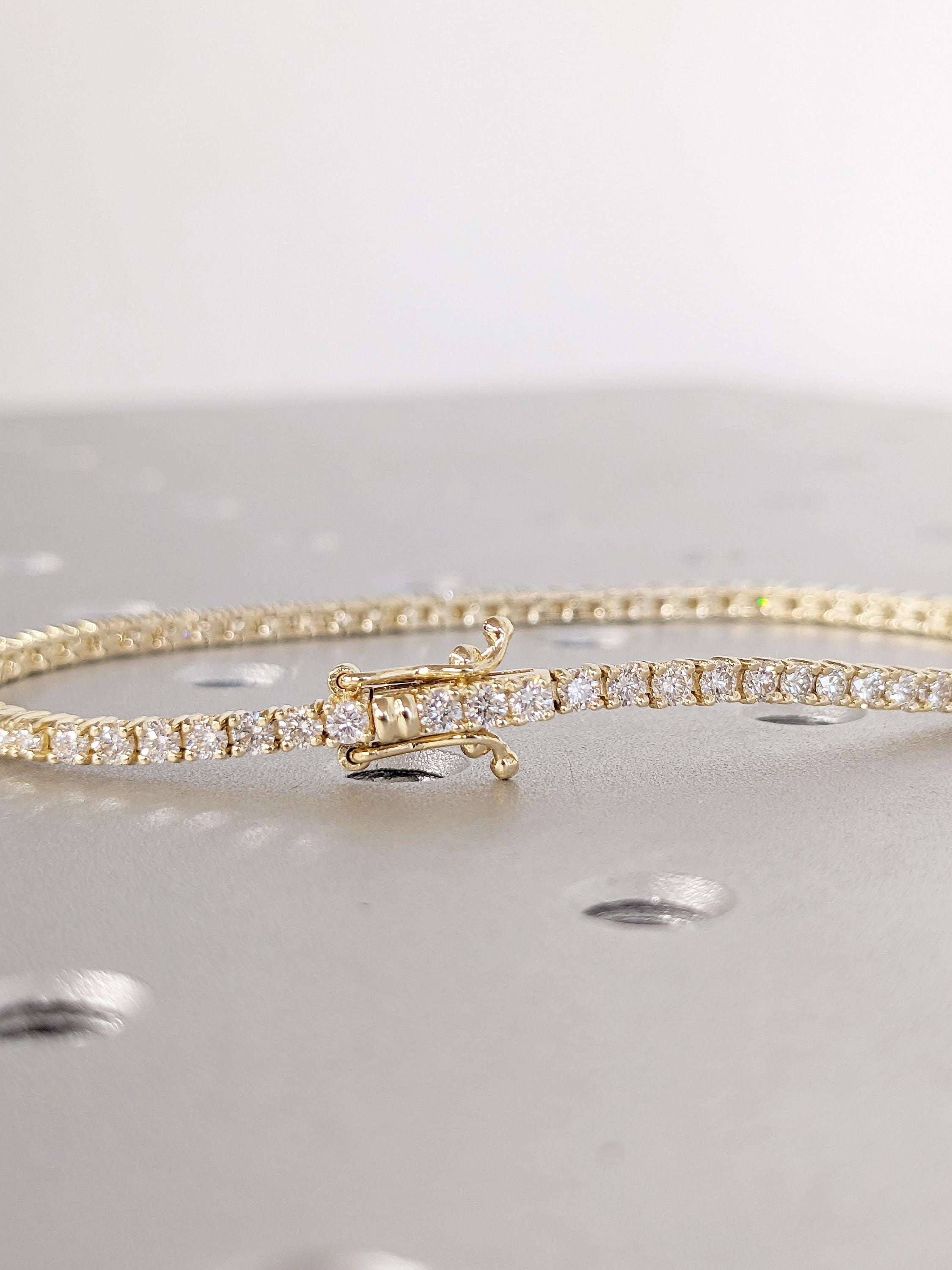 Round Cut Moissanite Tennis Bracelet, Stackable 14k Solid Gold VVS Moissanite Eternity Minimalist Bracelet, Dainty Anniversary Jewelry