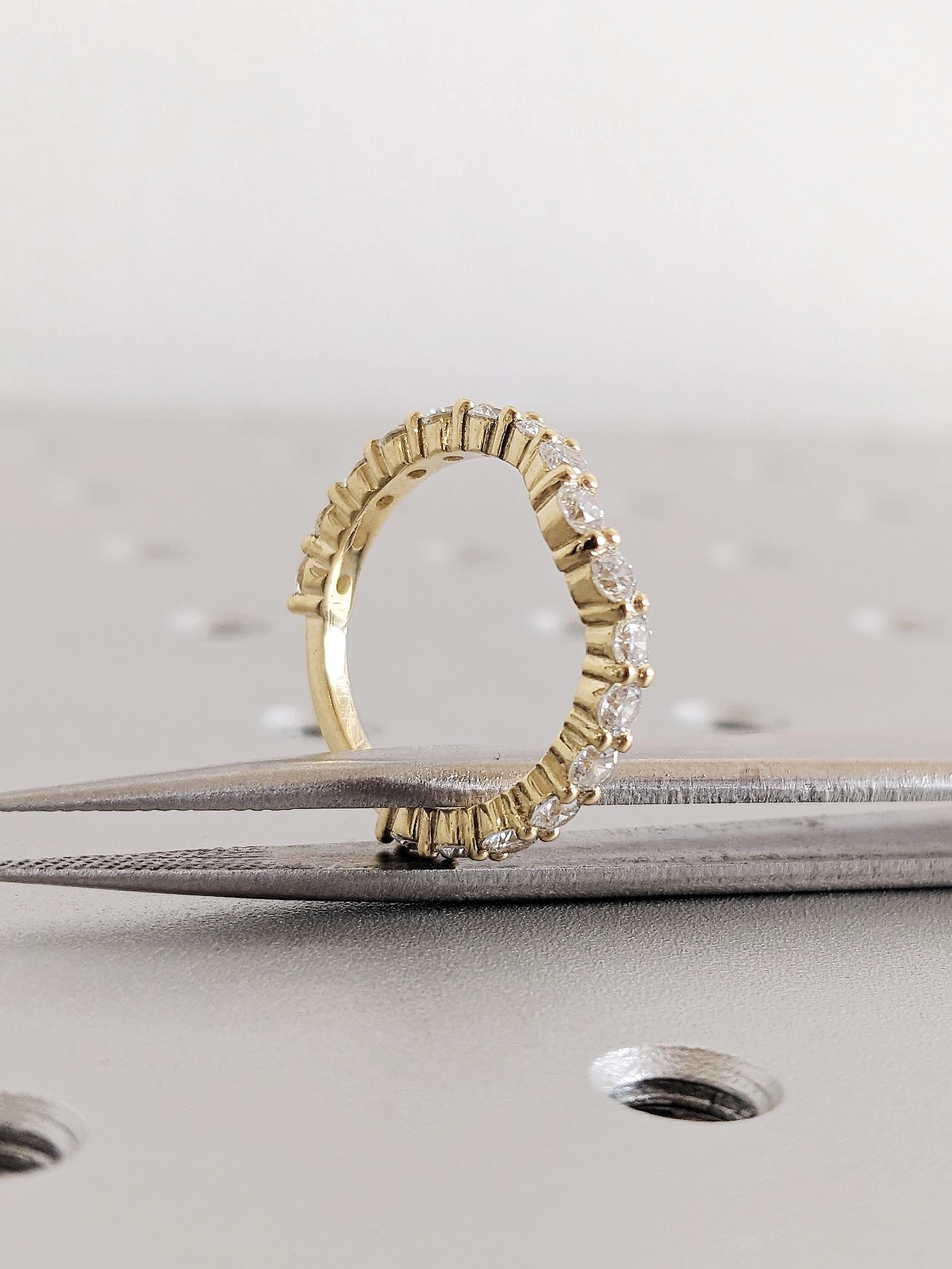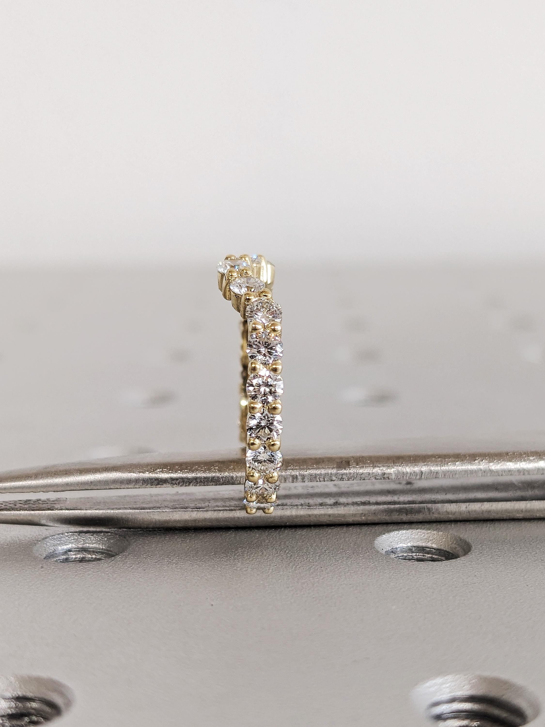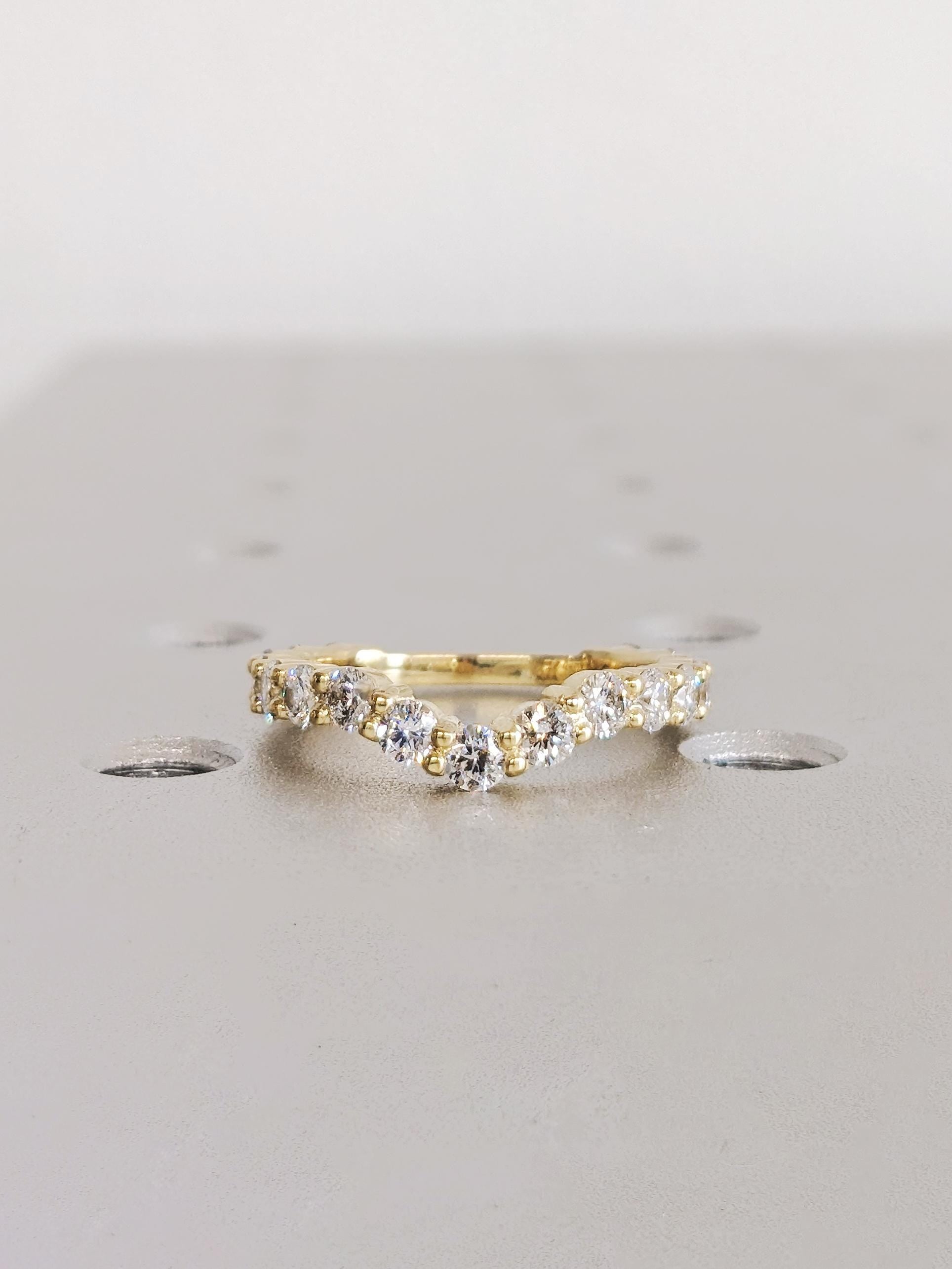 This graceful half eternity band shines with delicate side stones, offered in Natural Diamonds, Lab Diamonds or Moissanite. A classic piece to wear on its own or layered with your favorite rings.