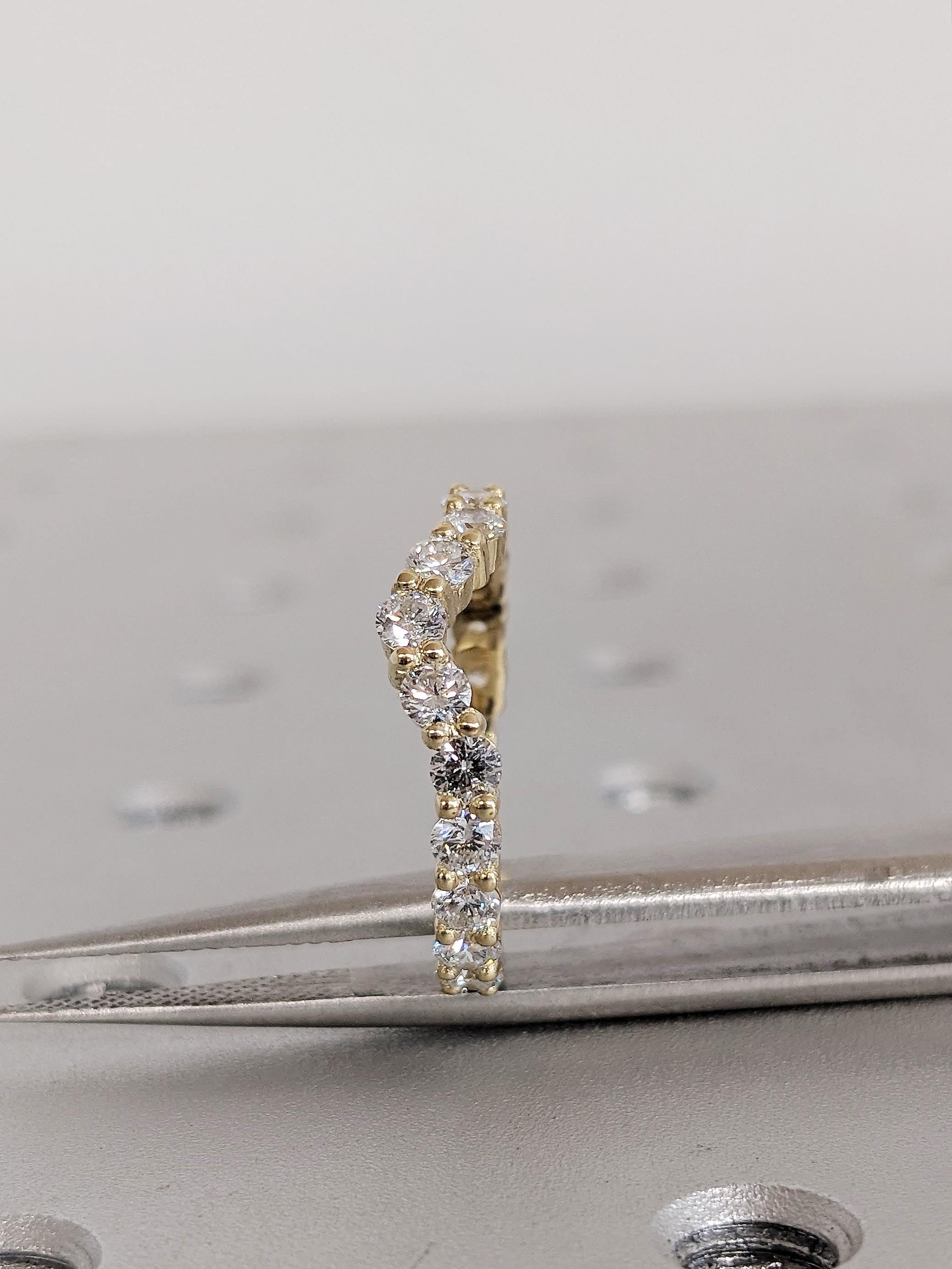 Round Diamond Half Eternity Wedding Ring, 14K Yellow Gold Curved Matching Band, Engagement Stacking Ring