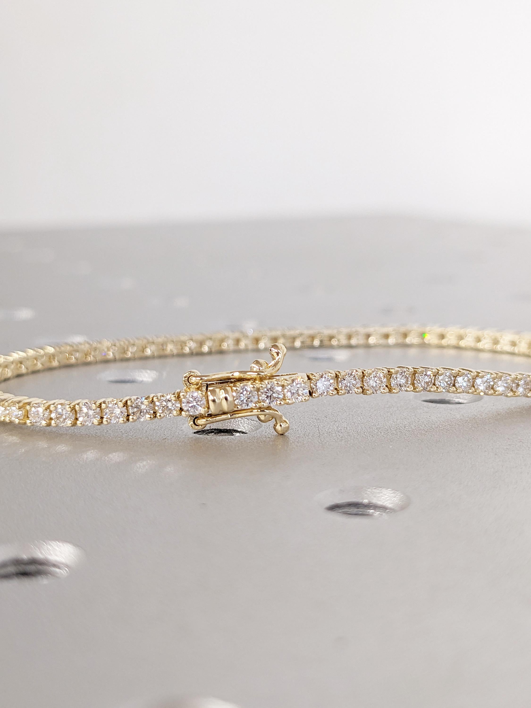 Round Diamond Tennis Bracelet for Women, Dainty 18k/14k Yellow Gold Eternity Diamond Jewelry, Minimalist 2.15ct Natural Diamond Bracelet