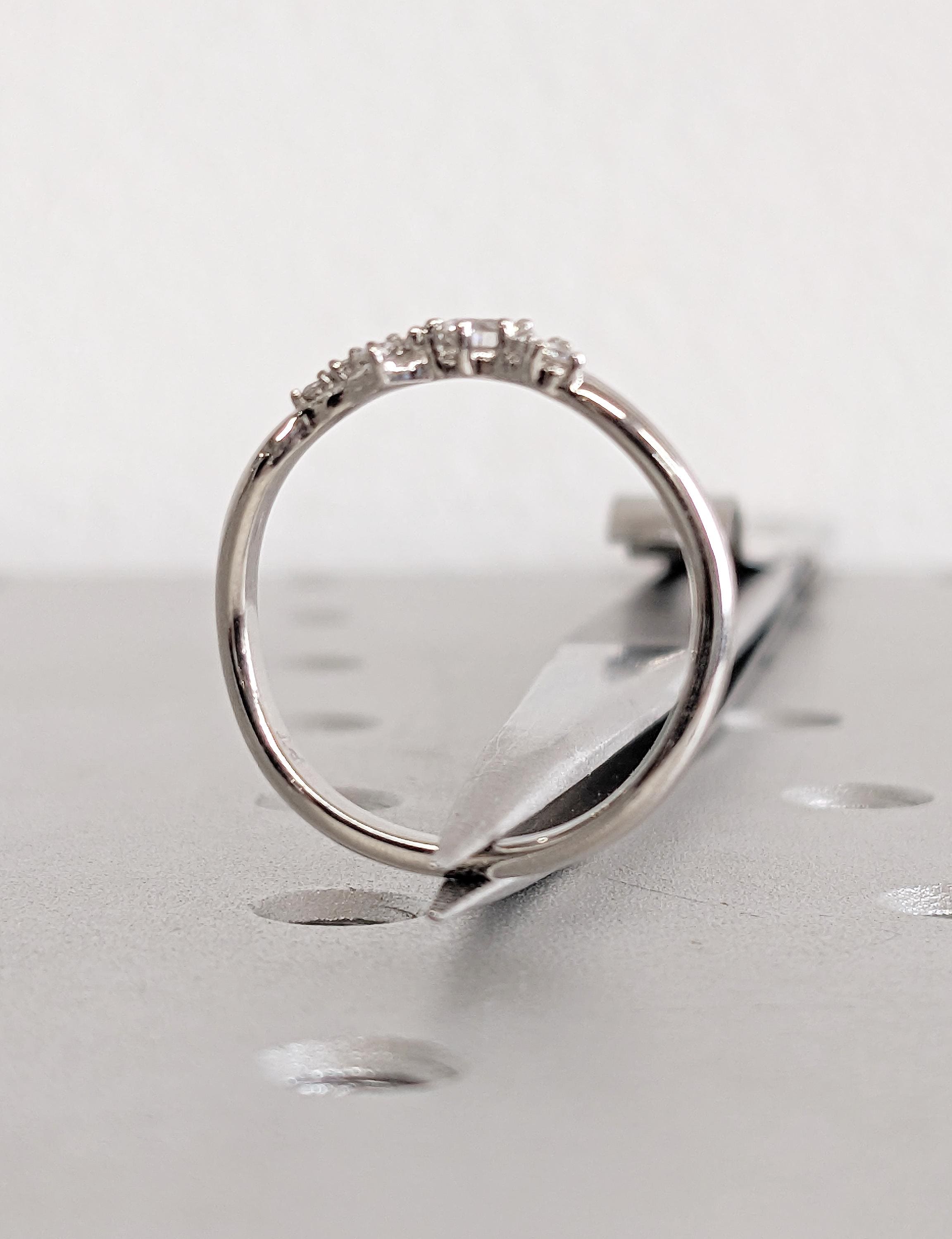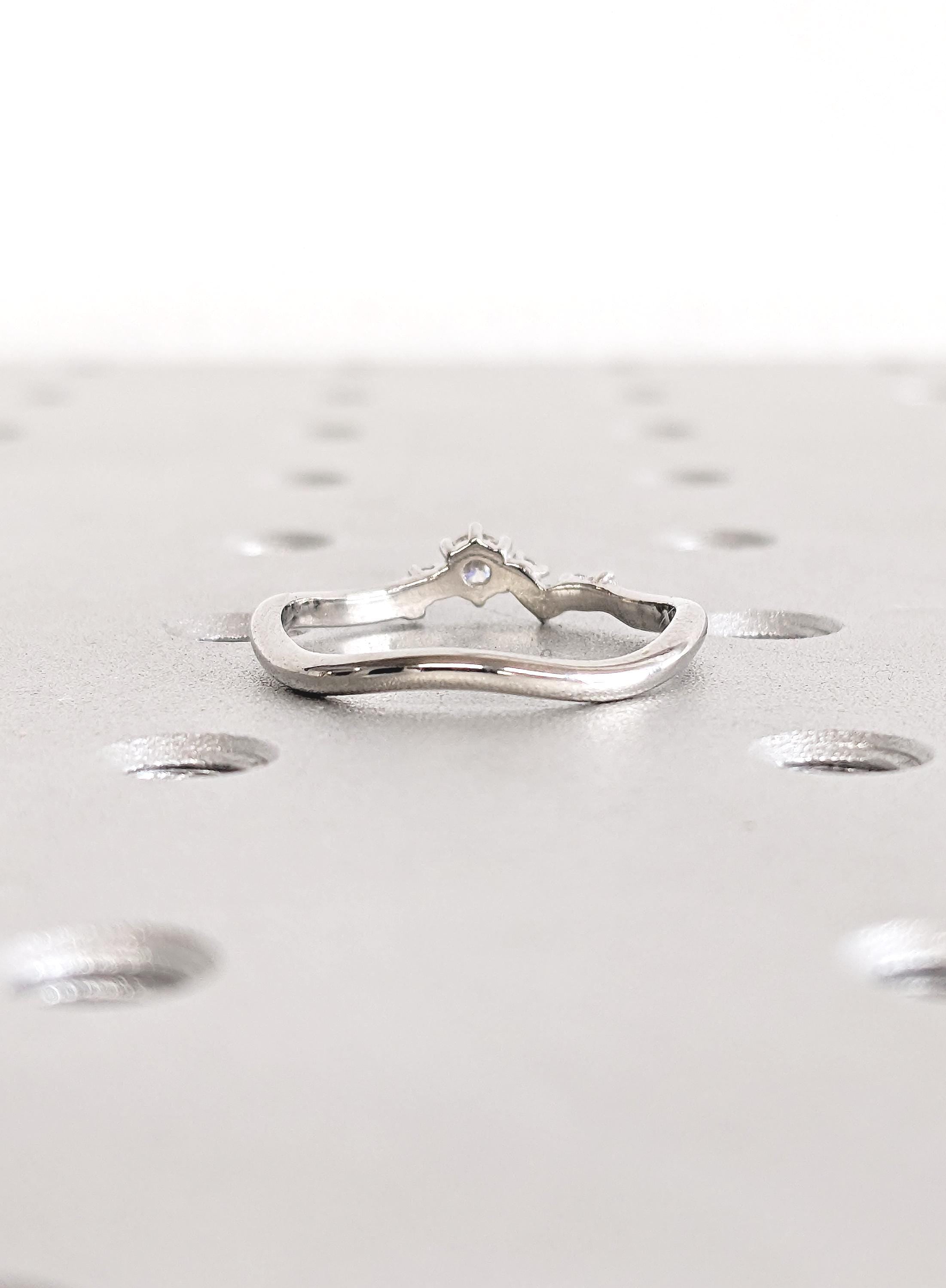 This matching ring features a graceful curve adorned with round accent stones, available in your choice of Natural Diamonds, Lab Grown Diamonds, or Moissanite. Its delicate sparkle and refined design make it a perfect complement to your engagement ring or a stunning standalone piece.