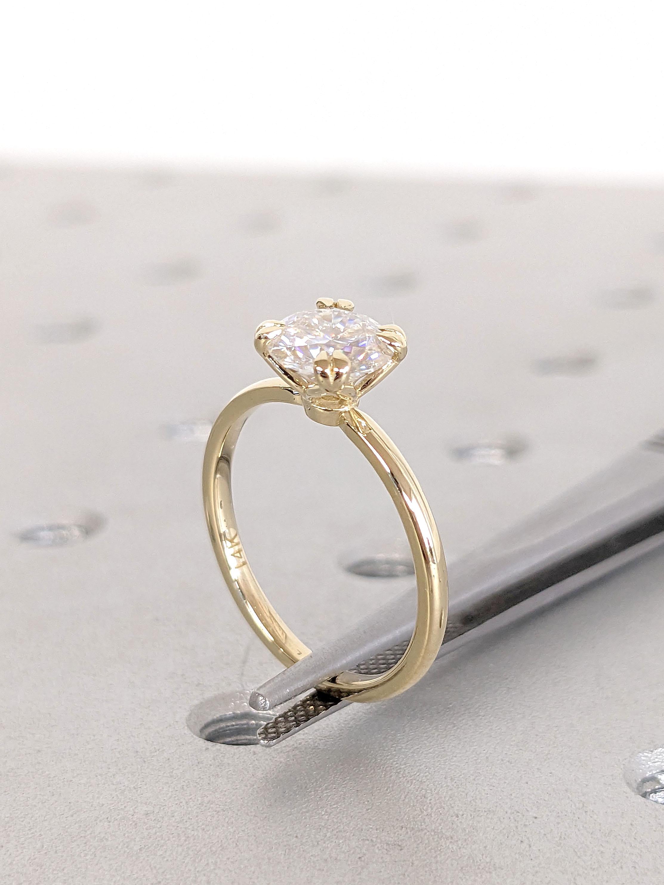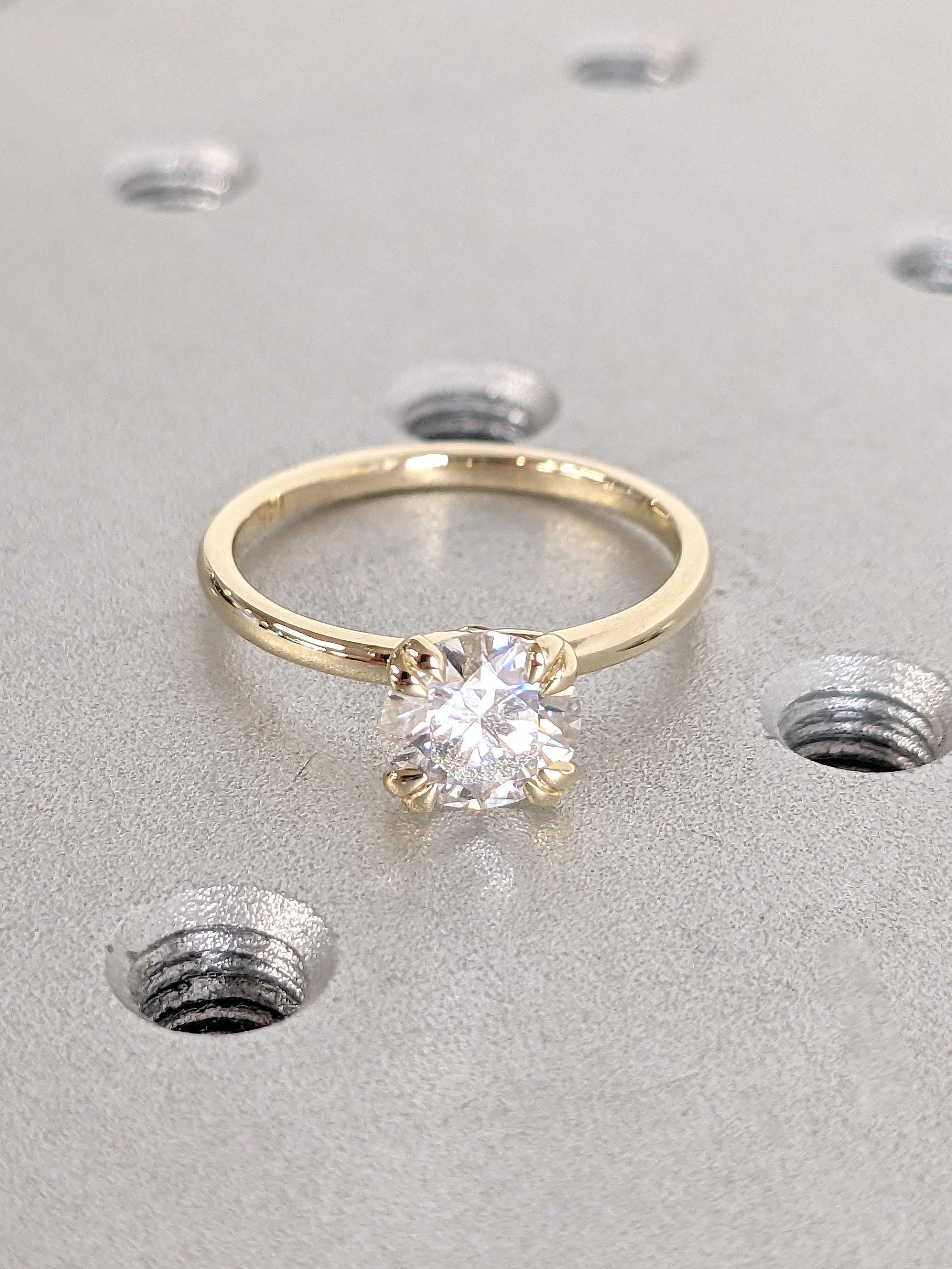 Round Engagement Ring 14k Solid Gold | 1, 1.5, 2 CT Moissanite Engagement Rings | Double Prong Solitaire Moissanite Ring | Gold Promise Ring