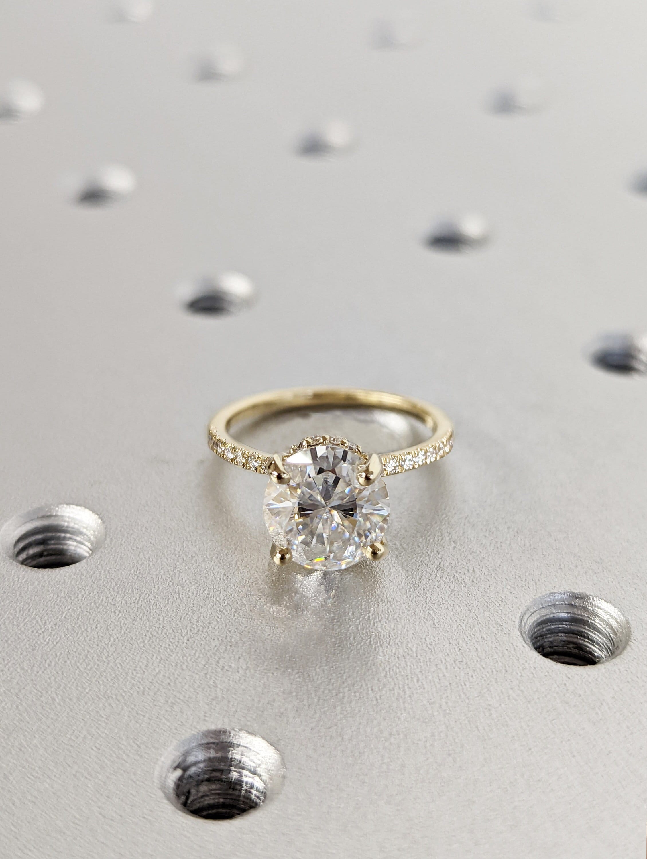 Round Engagement Ring, Round cut Moissanite engagement ring, moissanite hidden halo ring, Round Moissanite Ring, Hidden Halo Ring