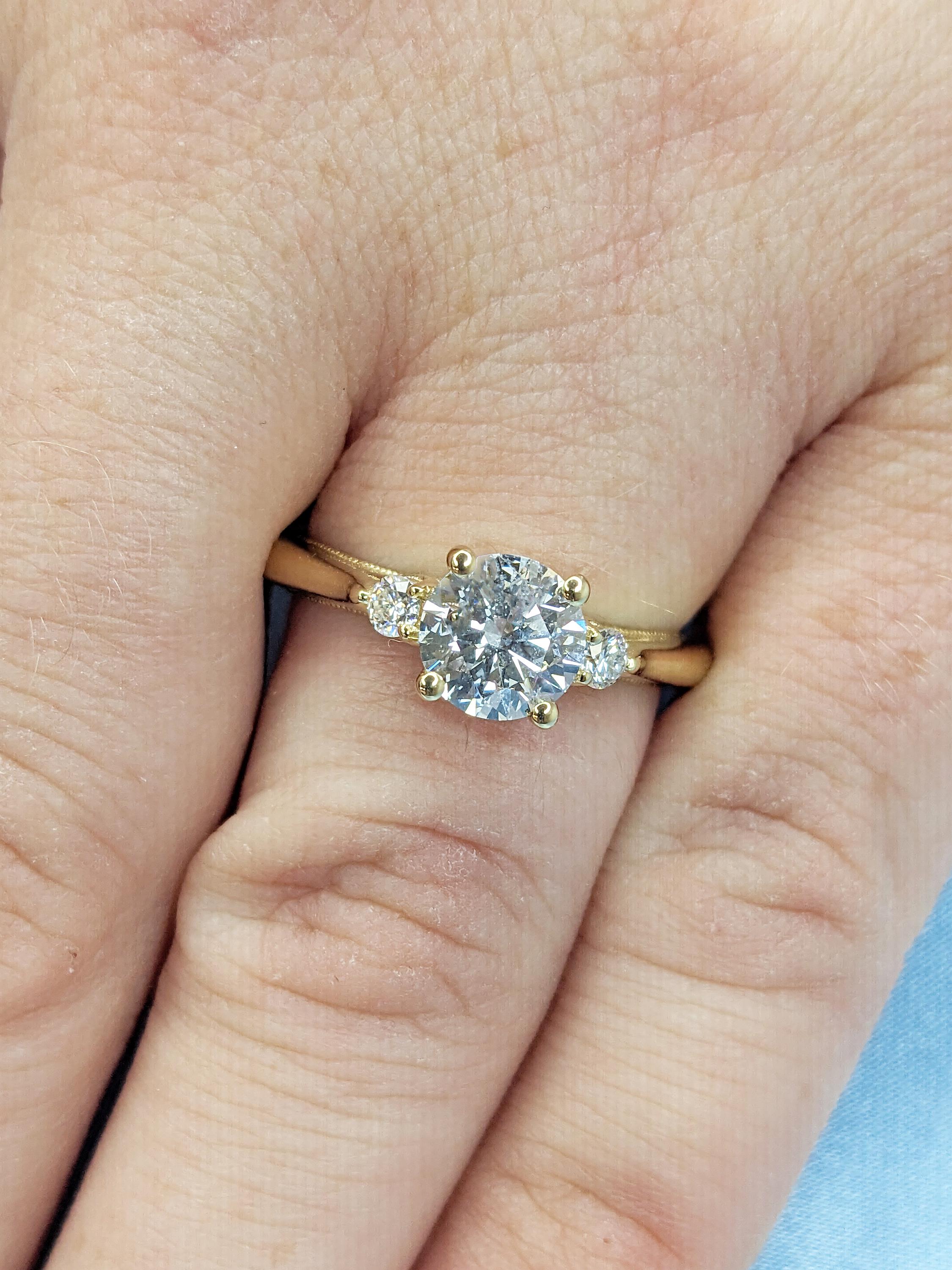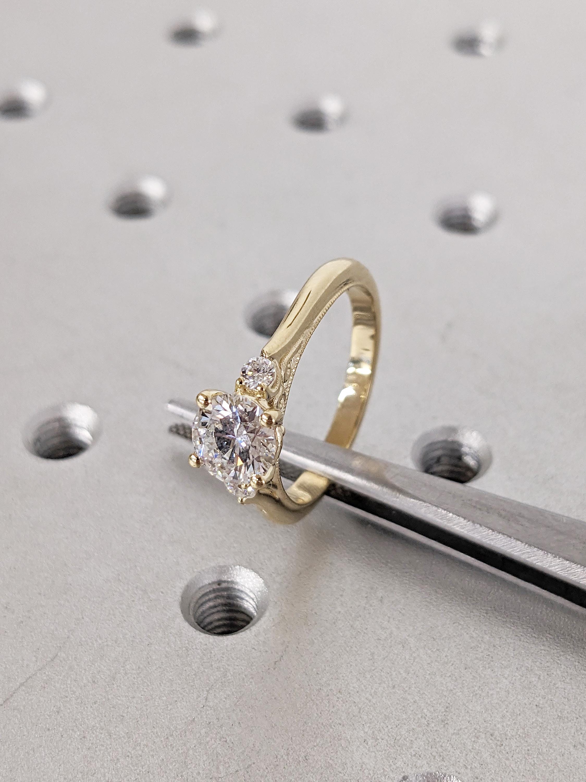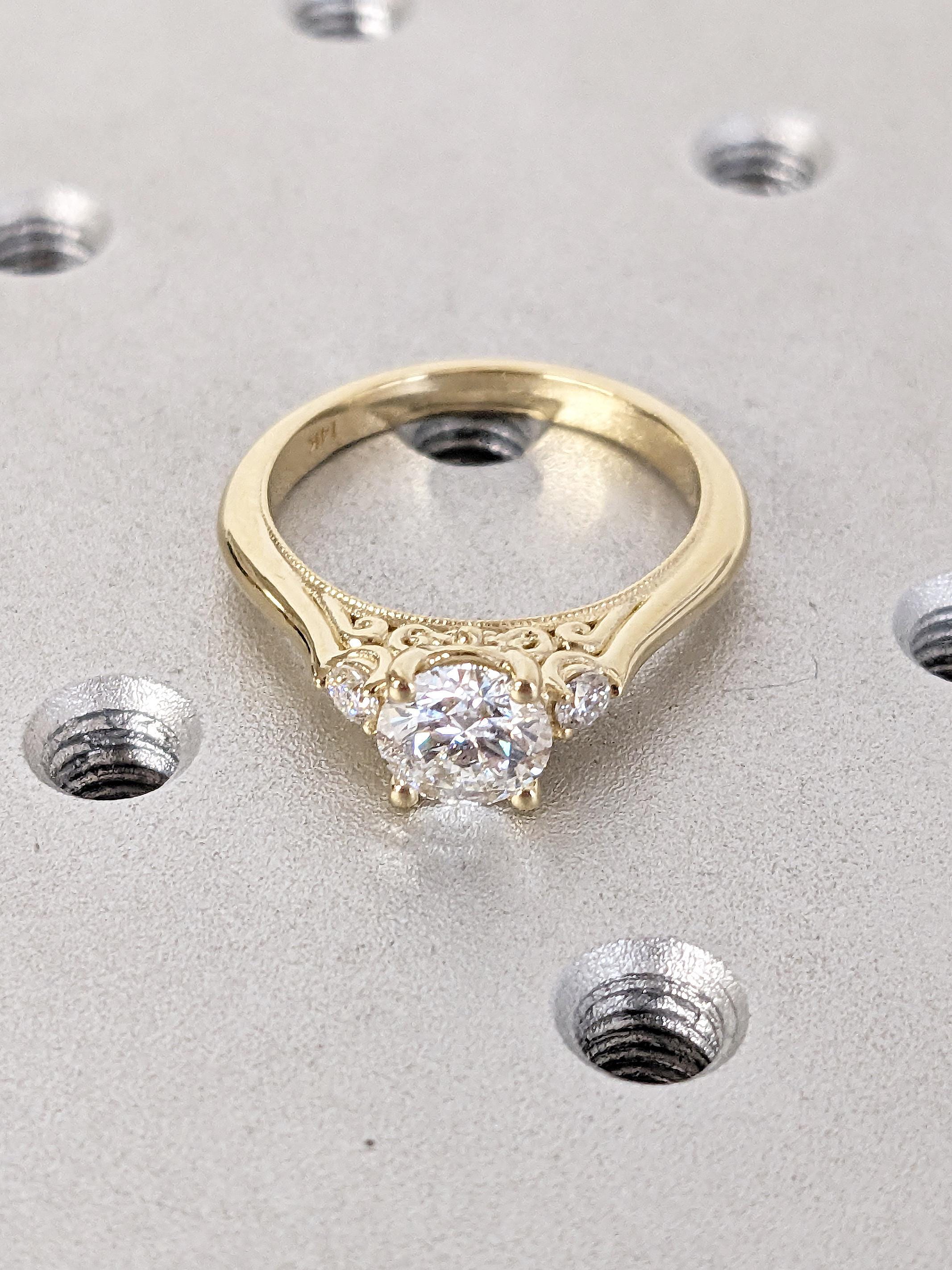 Round Lab Grown Diamond Engagement Ring, 14k Yellow Gold Diamond Ring, Unique Gift for Women, Filigree Two Tone Ring, Milgrain Proposal Ring