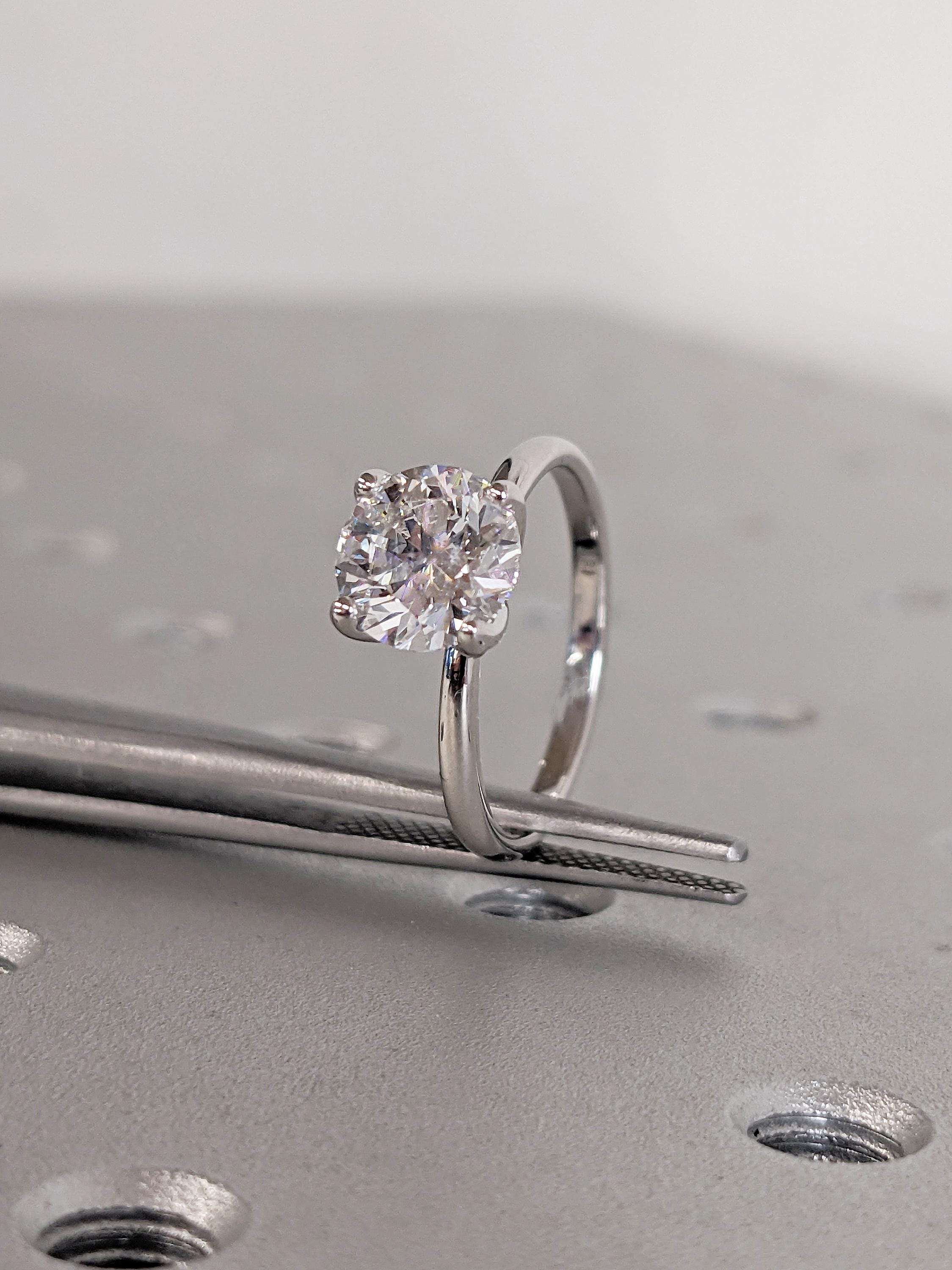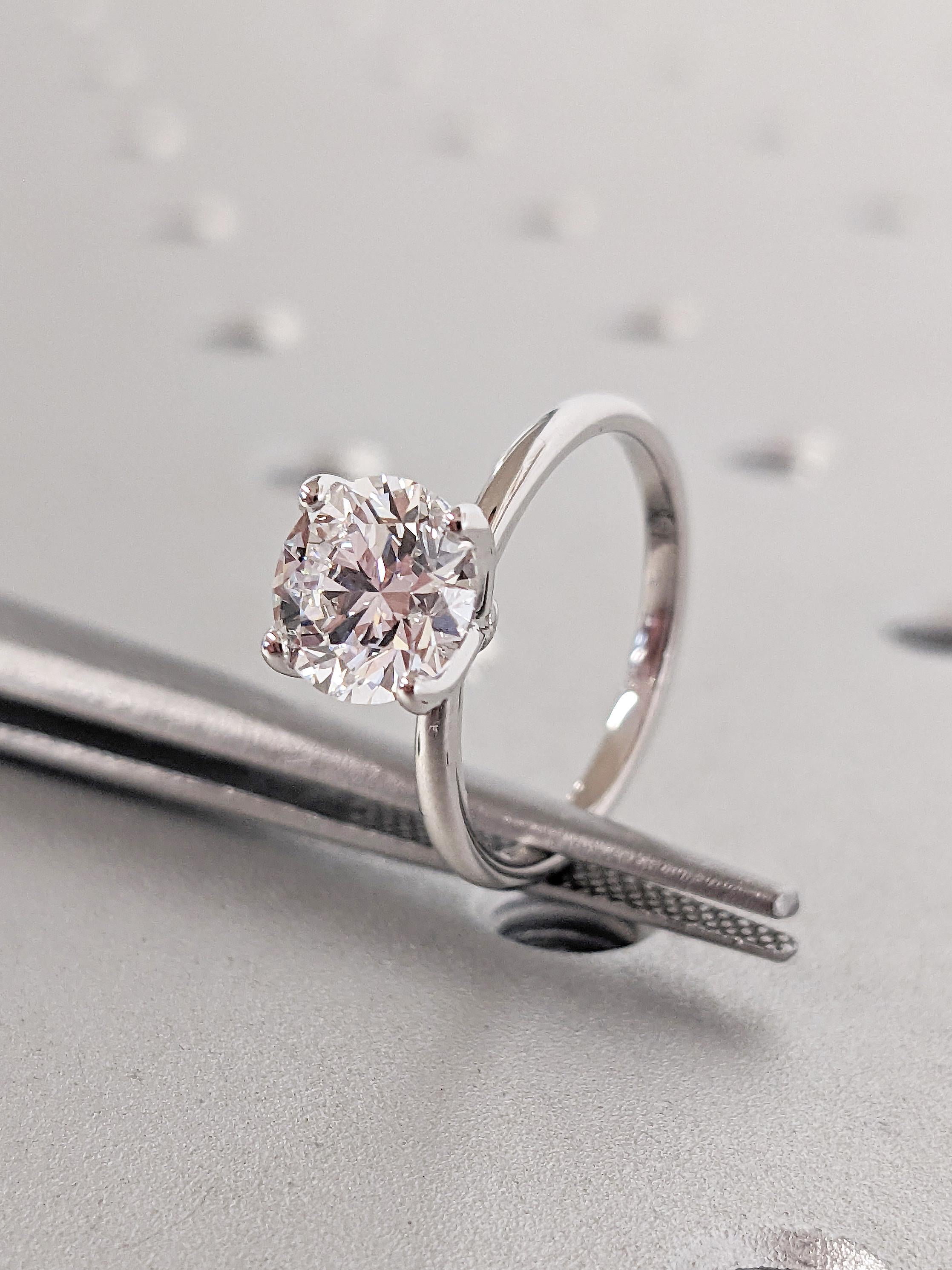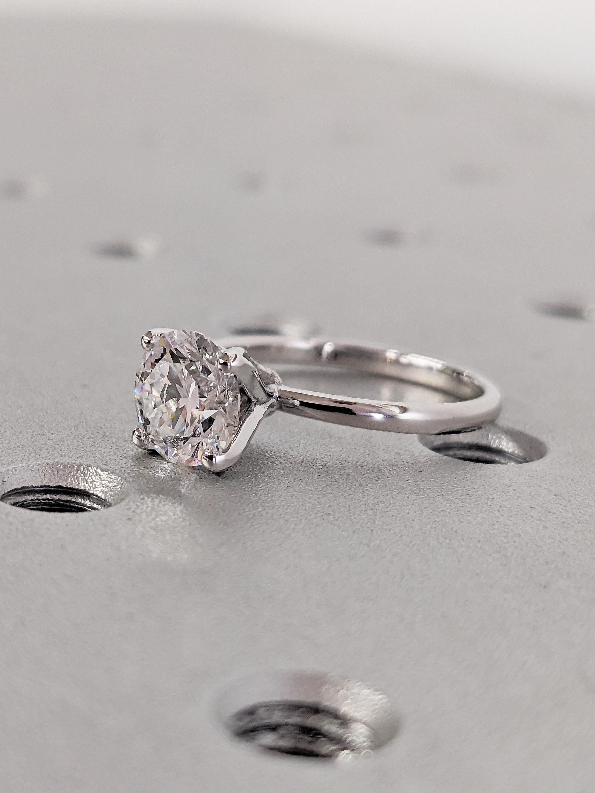 This elegant solitaire engagement ring features a round cut Lab Grown Diamond in a classic prong setting. Set on a sleek band, it offers timeless beauty and modern sophistication, perfect for a love that lasts forever.