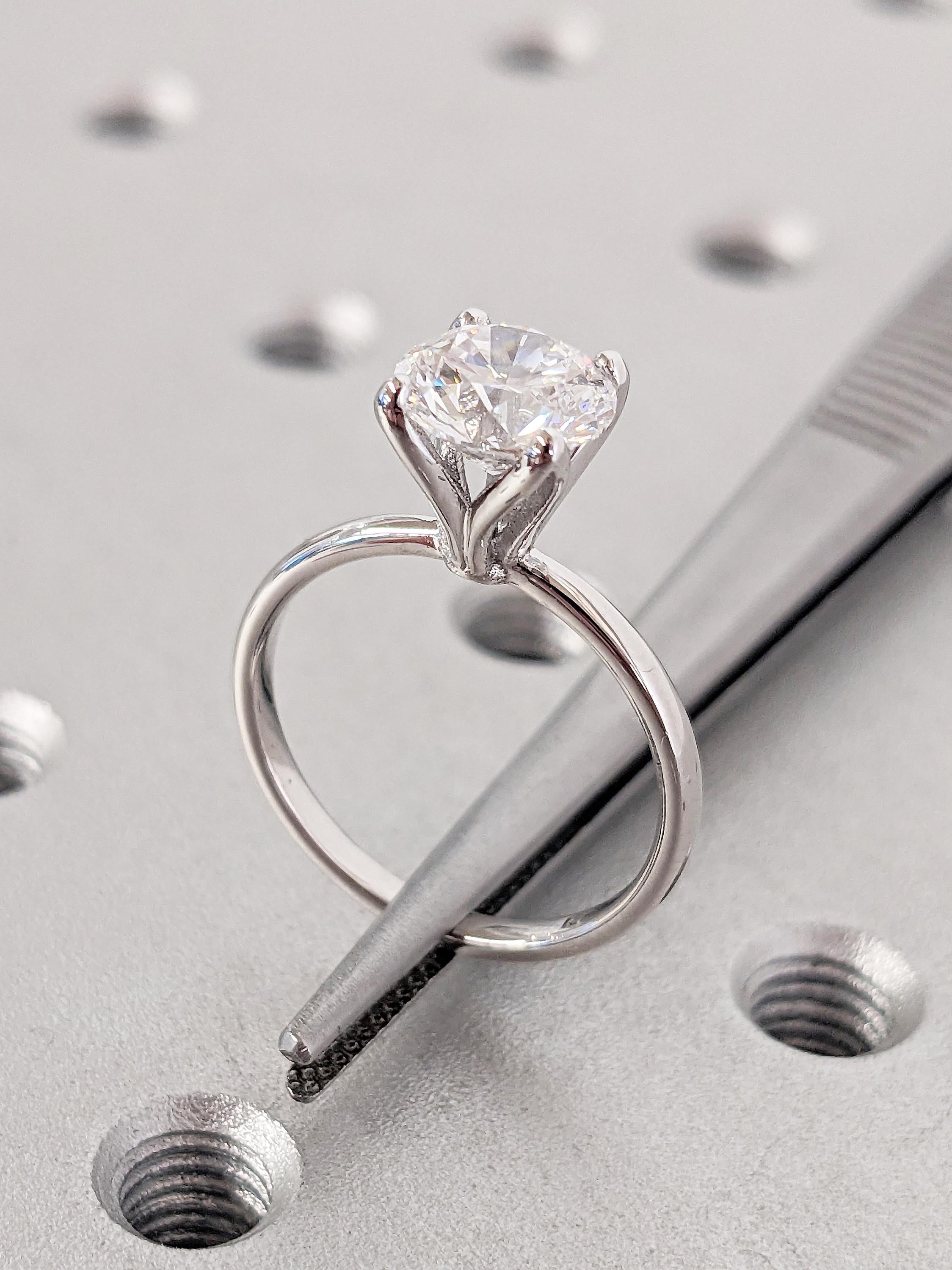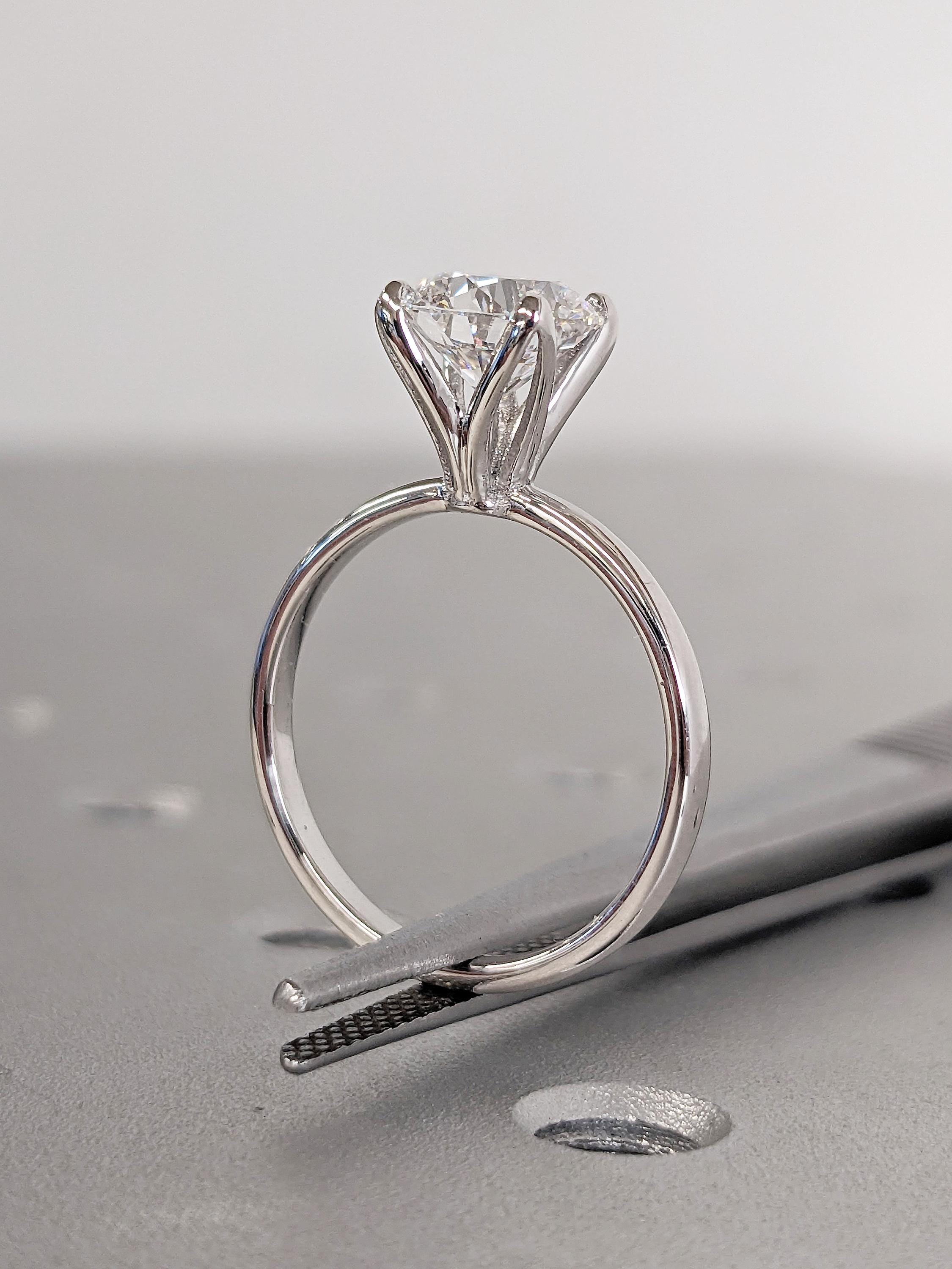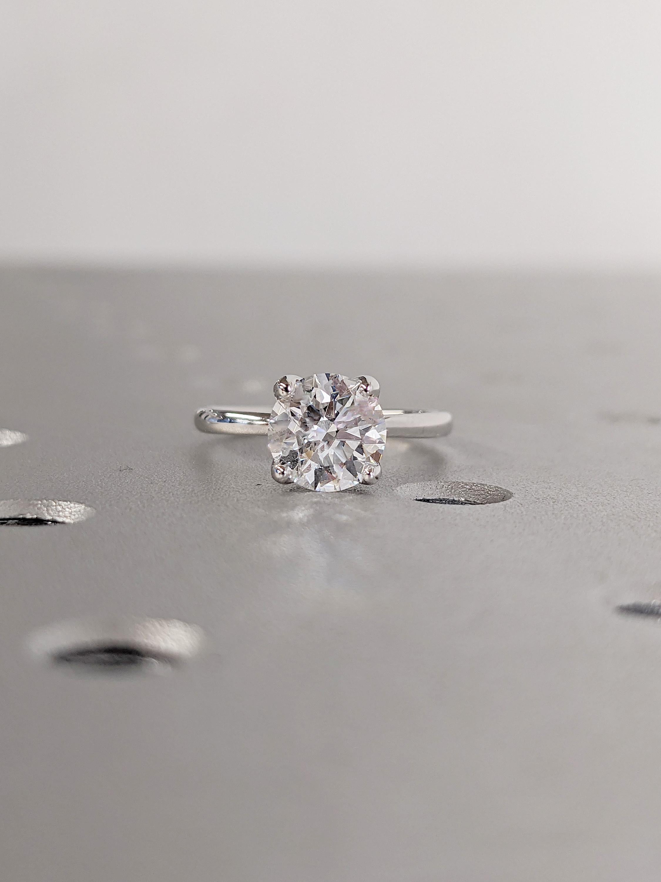 This elegant solitaire engagement ring features a round cut Lab Grown Diamond in a classic prong setting. Set on a sleek band, it offers timeless beauty and modern sophistication, perfect for a love that lasts forever.