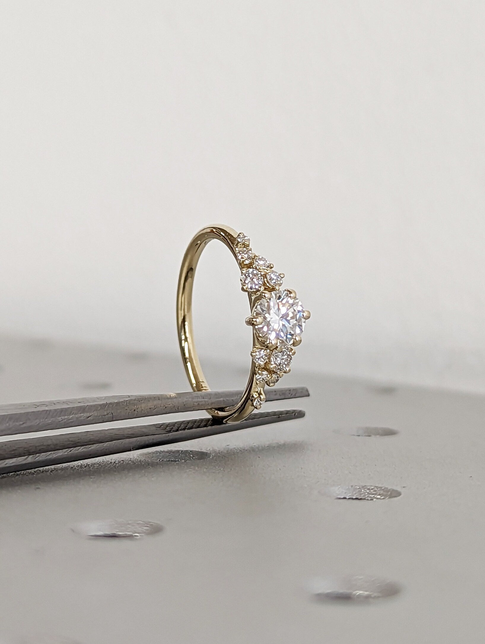 Round moissanite ring vintage moissanite engagement ring white gold unique snowdrift 6 prong engagement ring diamond wedding ring for women