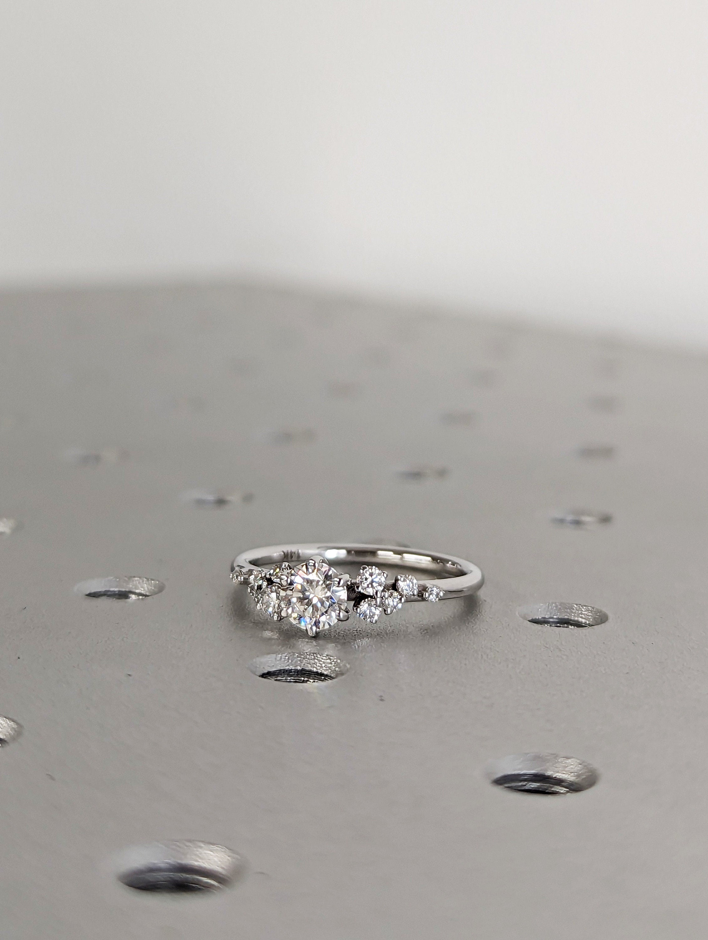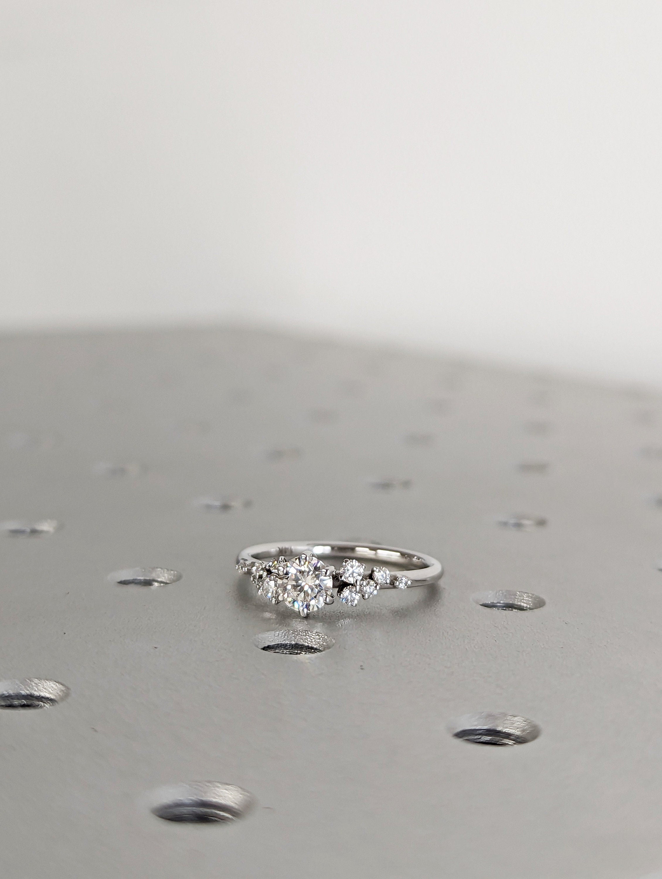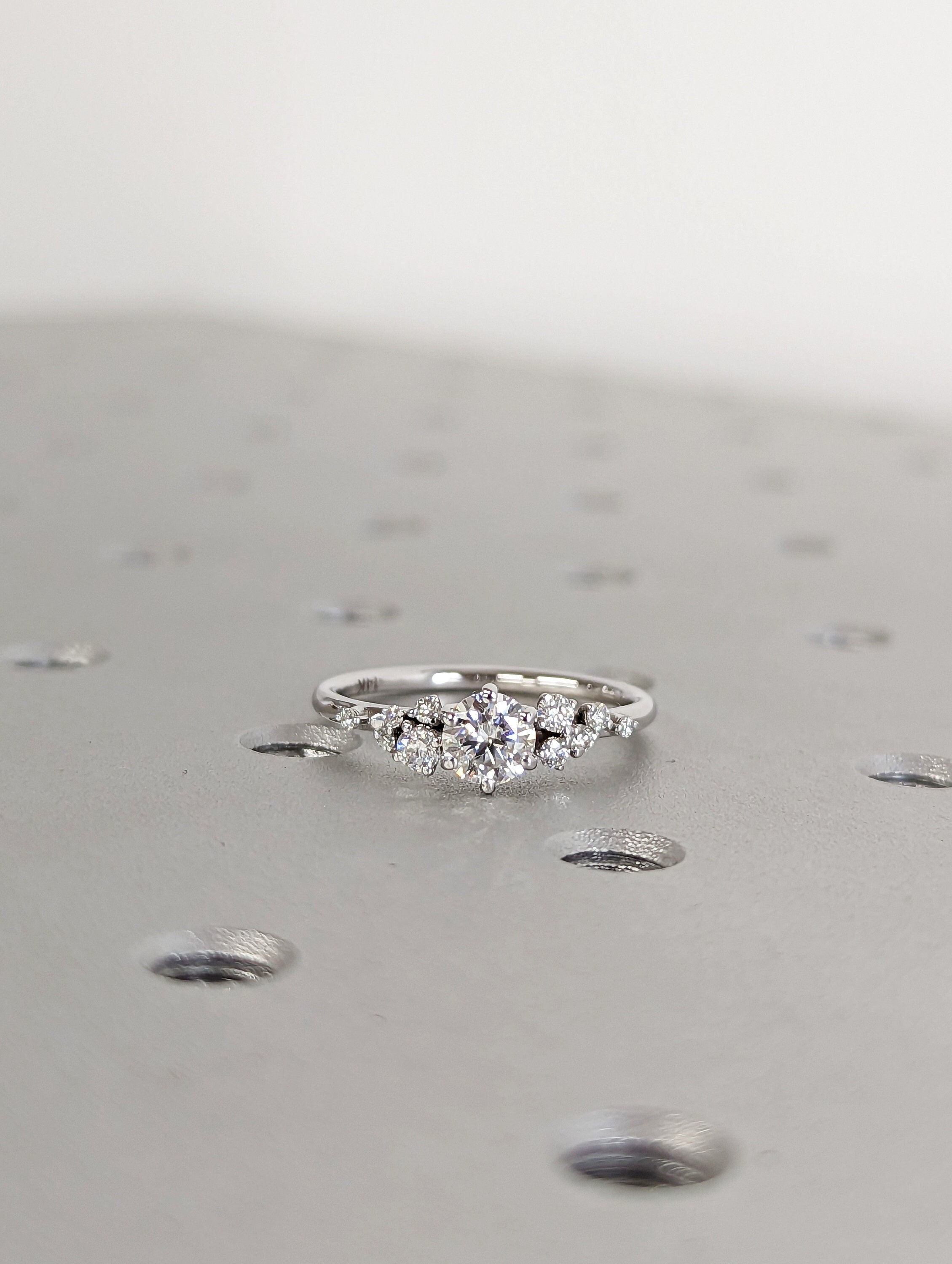 Round moissanite ring vintage moissanite engagement ring white gold unique snowdrift 6 prong engagement ring diamond wedding ring for women