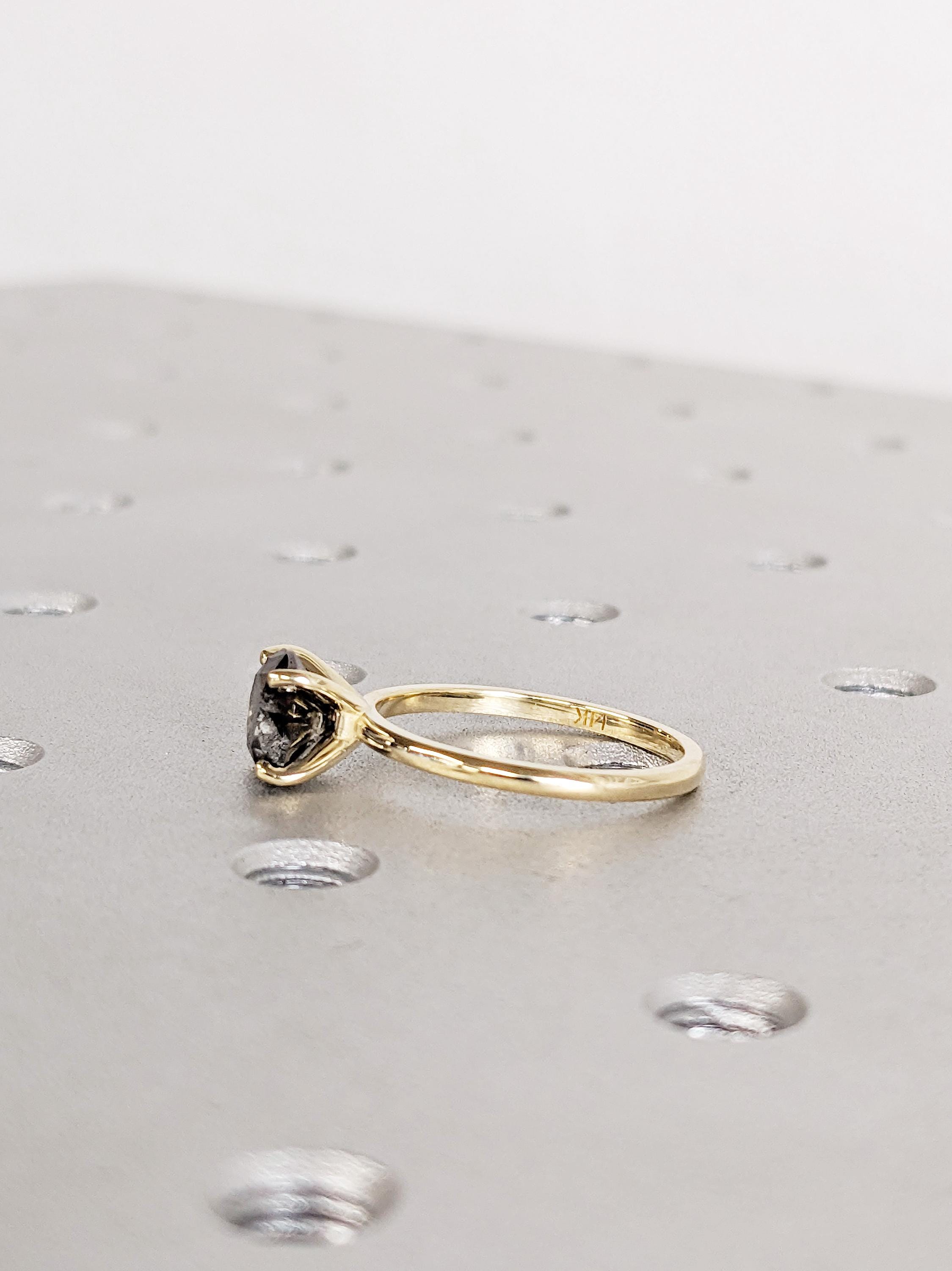 Round Salt and Pepper Diamond Engagement Ring, 14K Yellow Gold Solitaire Ring, Unique Diamond Wedding Ring, Minimalist Ring, Promise Ring