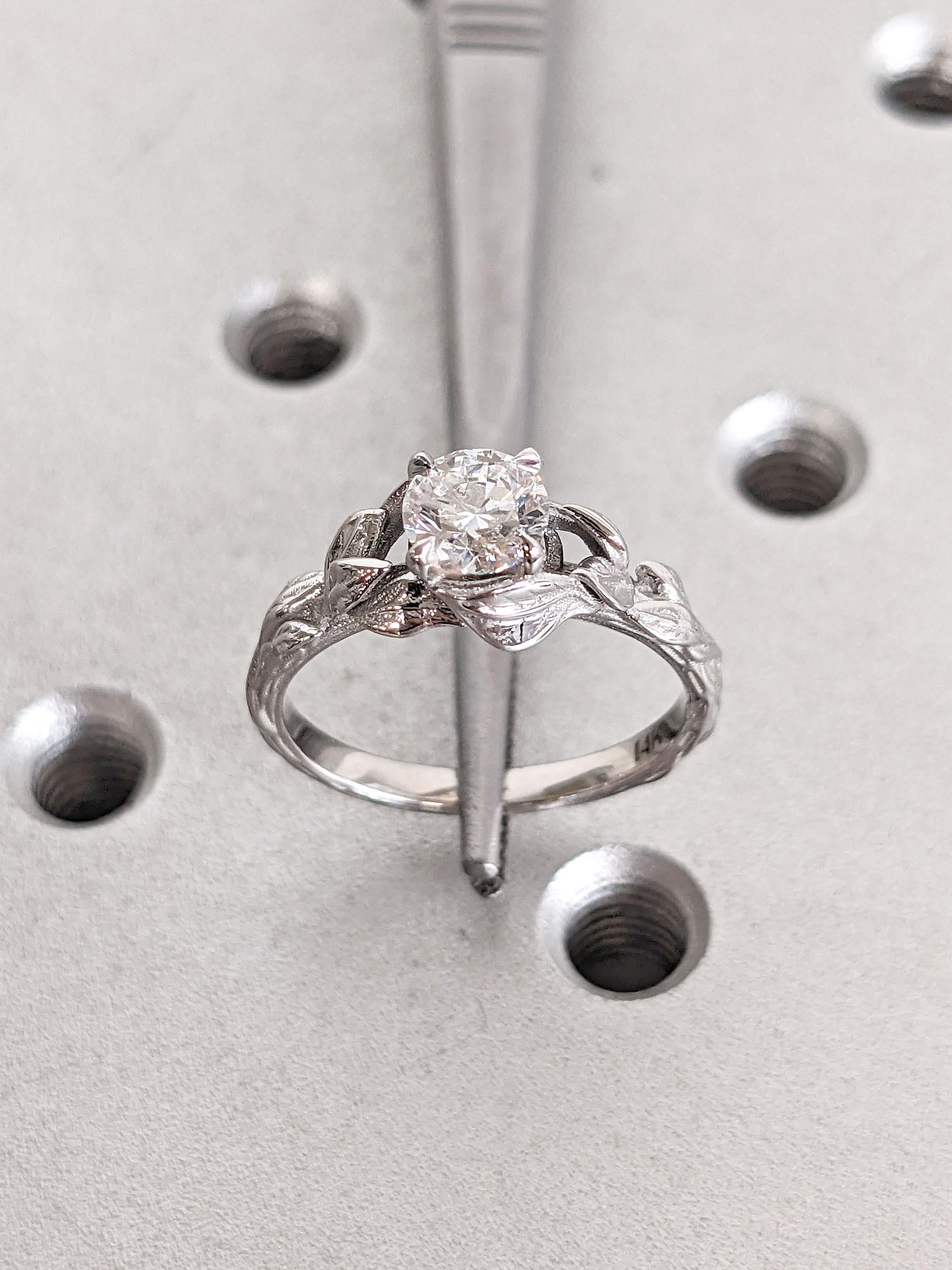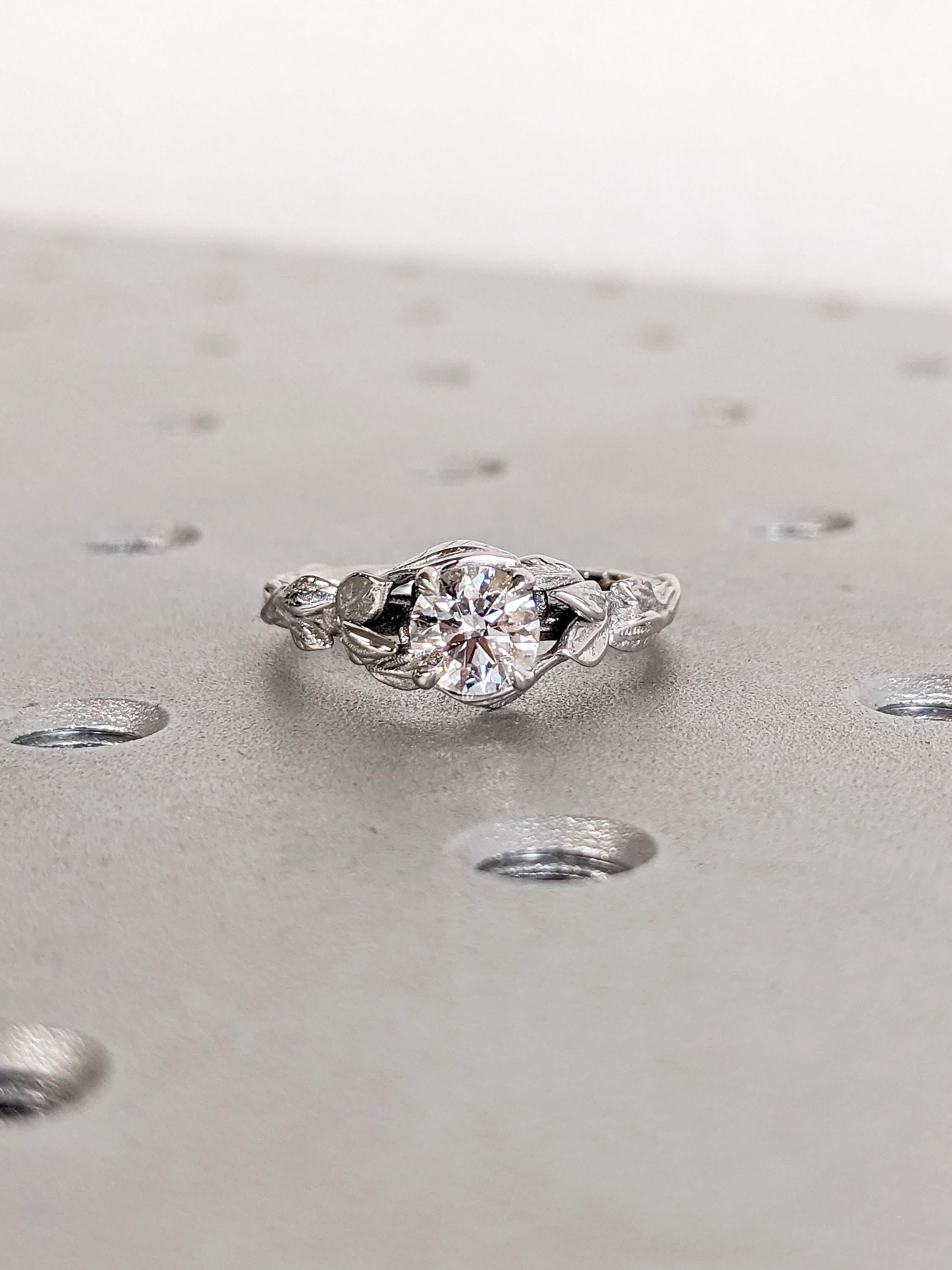 Rustic Engagement Leaf Ring | 0.5ct, 1CT, 2 Carat D/F Color VS1 Round Lab Created Diamond Ring | 14k White Yellow Rose Gold Rings for Women