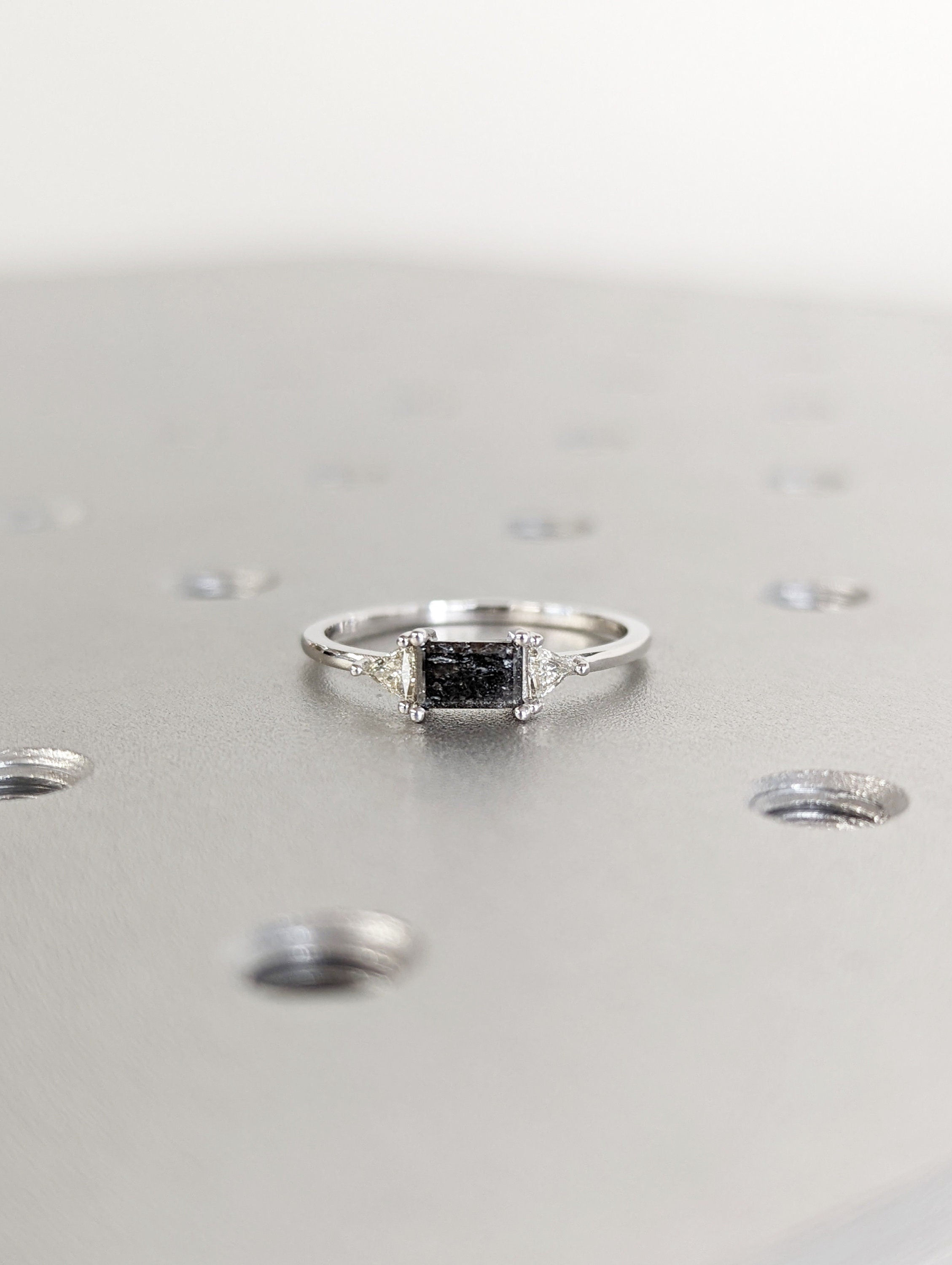Salt And Pepper Diamond Emerald Triangle Ring, Salt And Pepper Diamond Vintage Engagement Ring, Vintage Baguette Ring, Raw Diamond Ring