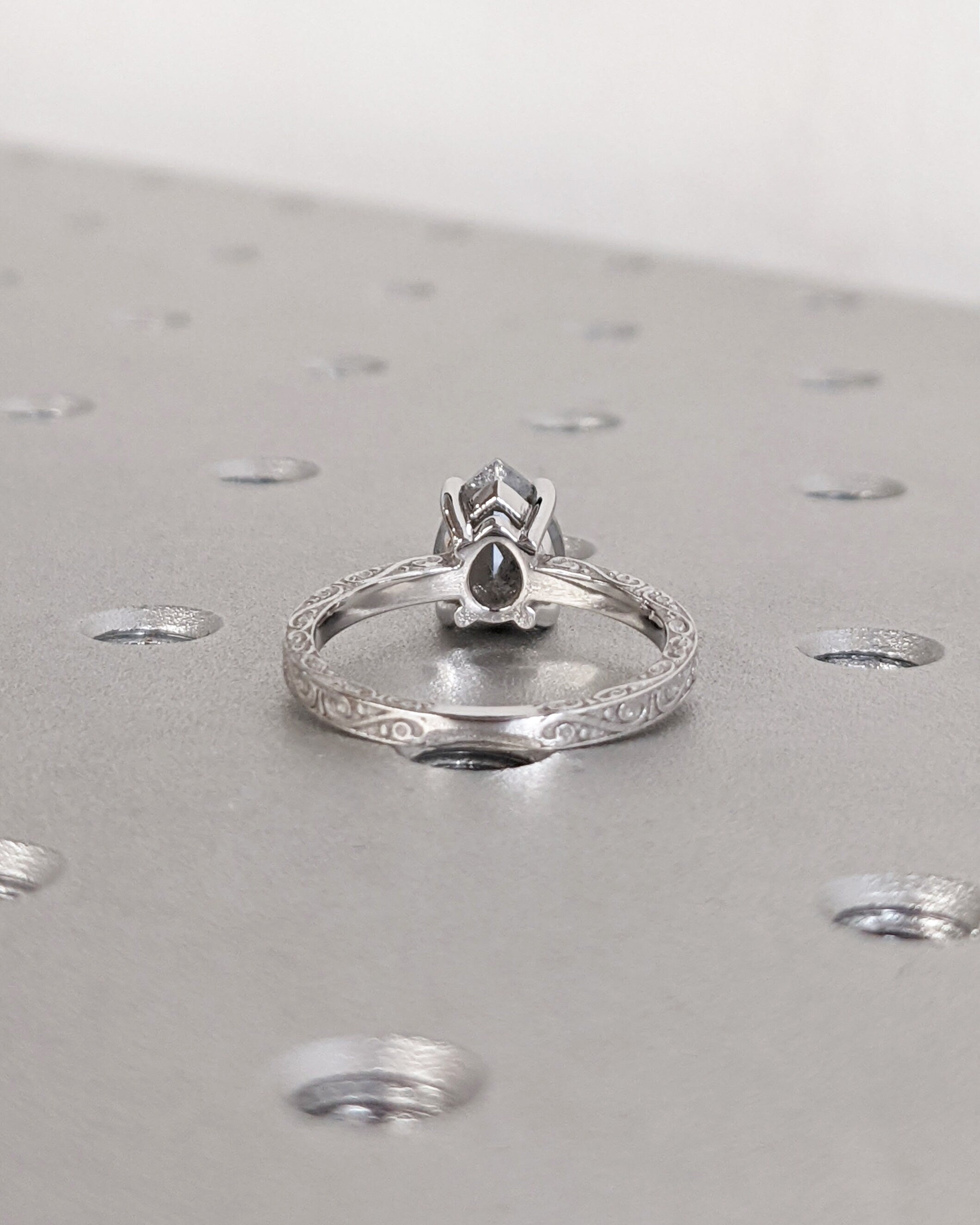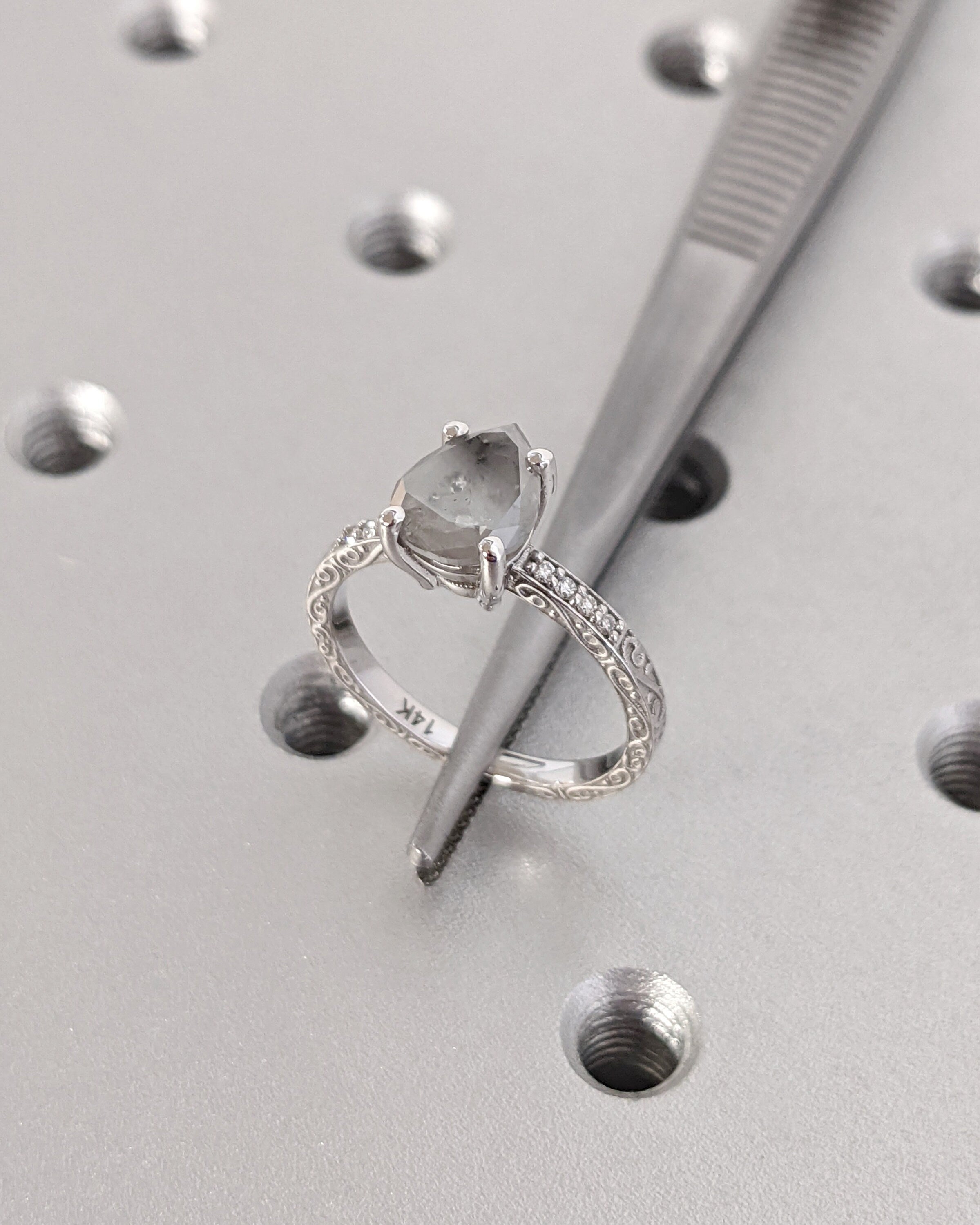 Salt and Pepper Diamond Engagement Ring Vintage Wedding Ring Engraved Ring Unique Rose Gold Filigree Ring Art Deco Wedding Anniversary Ring