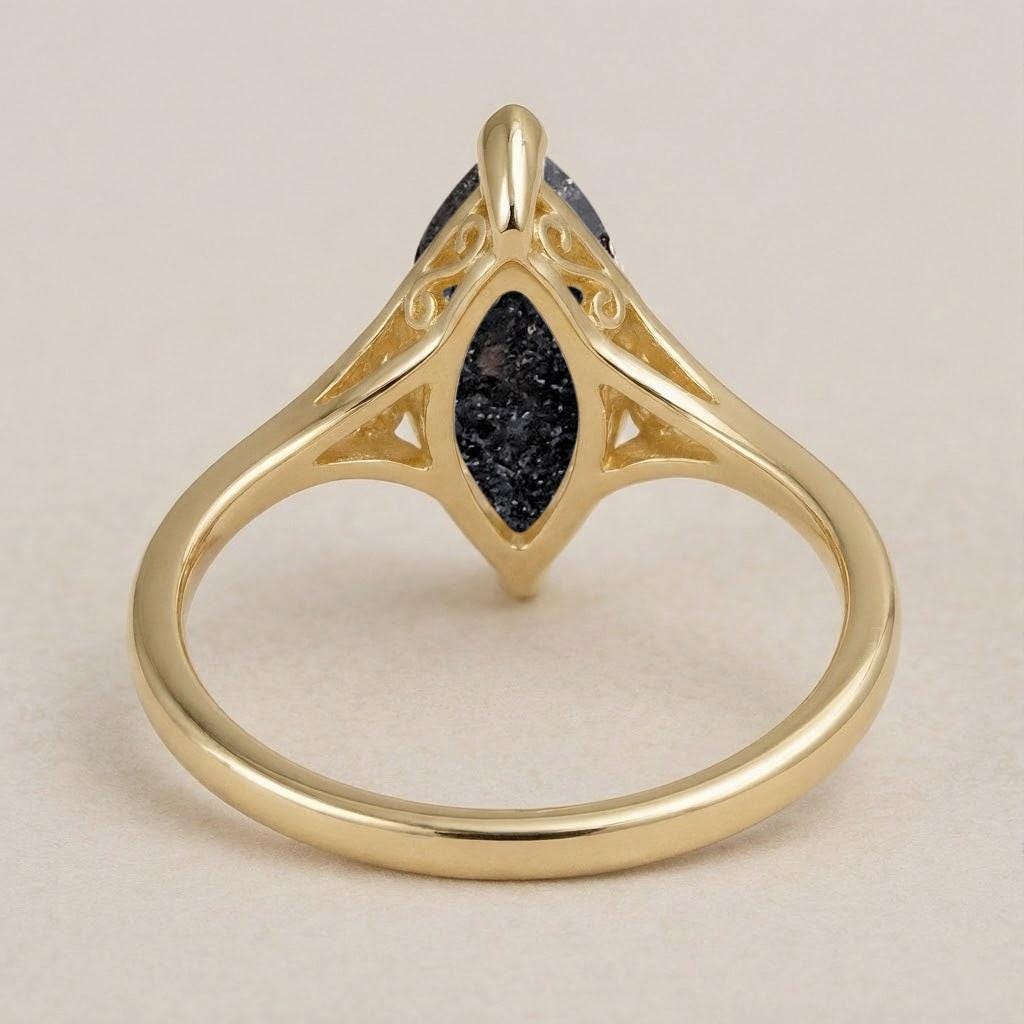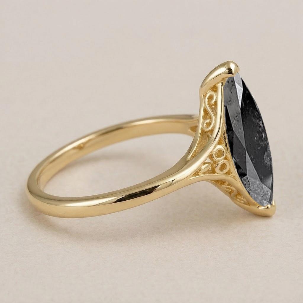 Salt and Pepper Diamond Engagement Ring, Minimalist Marquise 14k Yellow Gold Filigree Ring