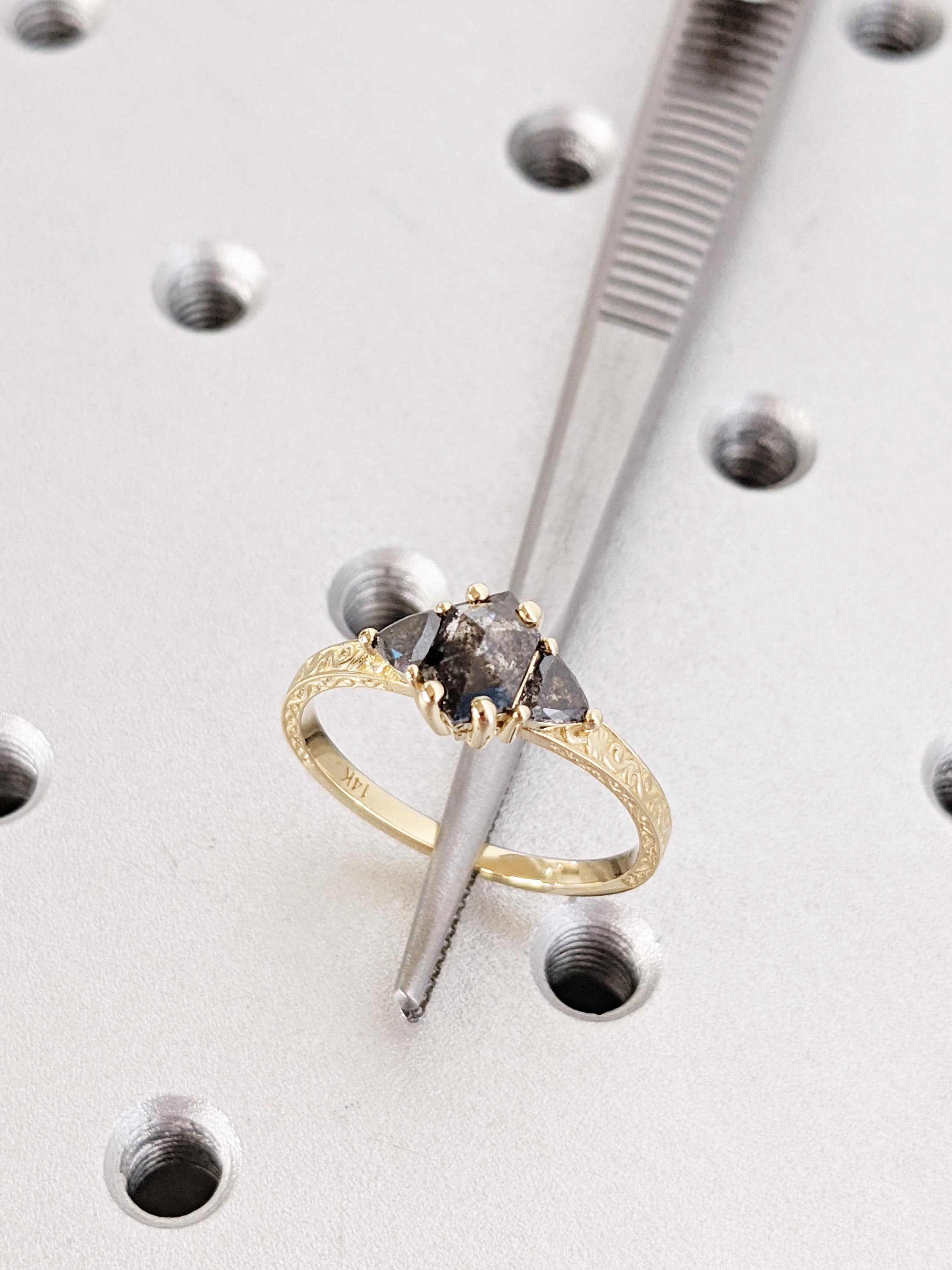 Salt And Pepper Diamond Engagement Ring, 14K Yellow Solid Gold Ring, Wedding Ring, Bridal Jewelry