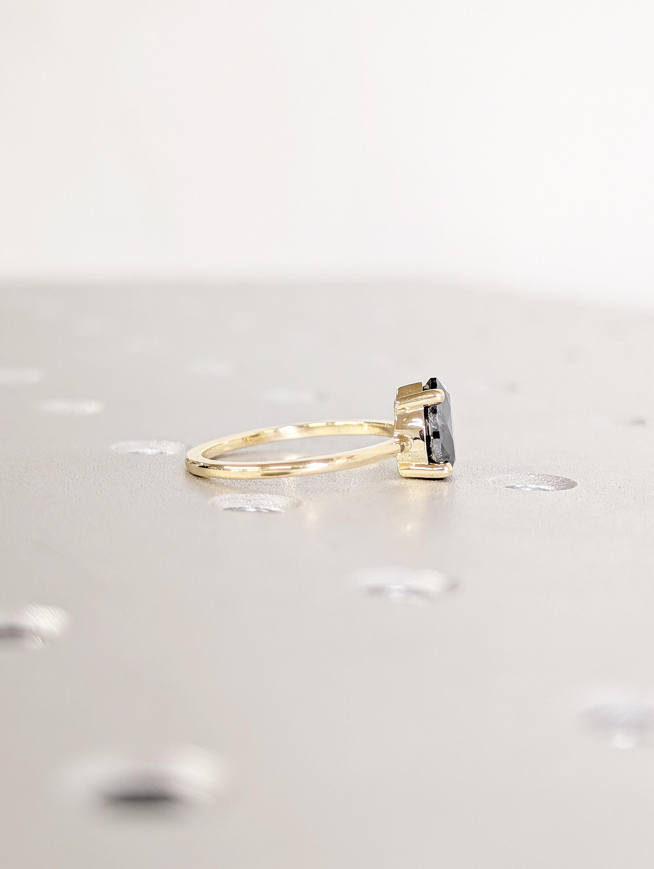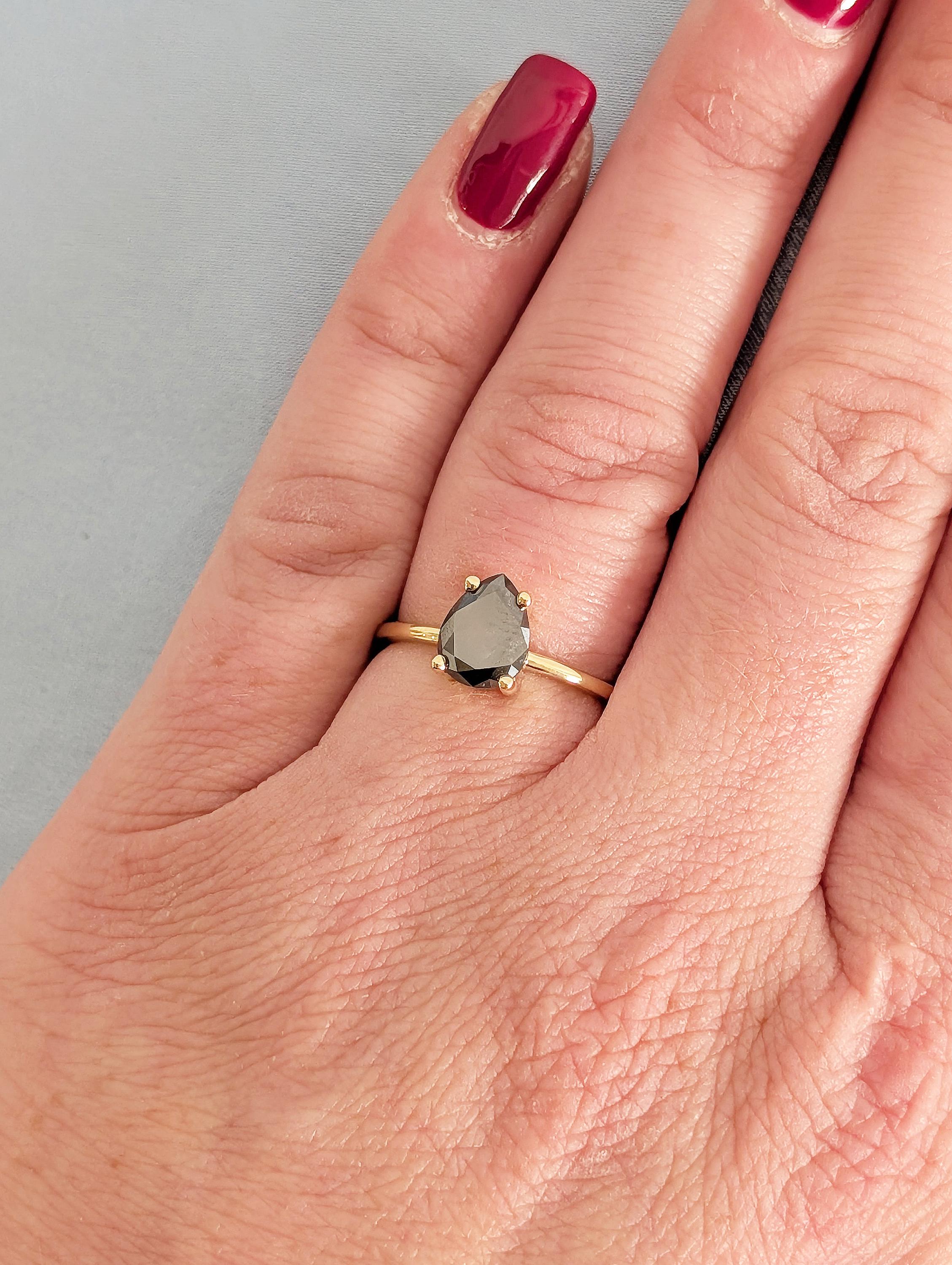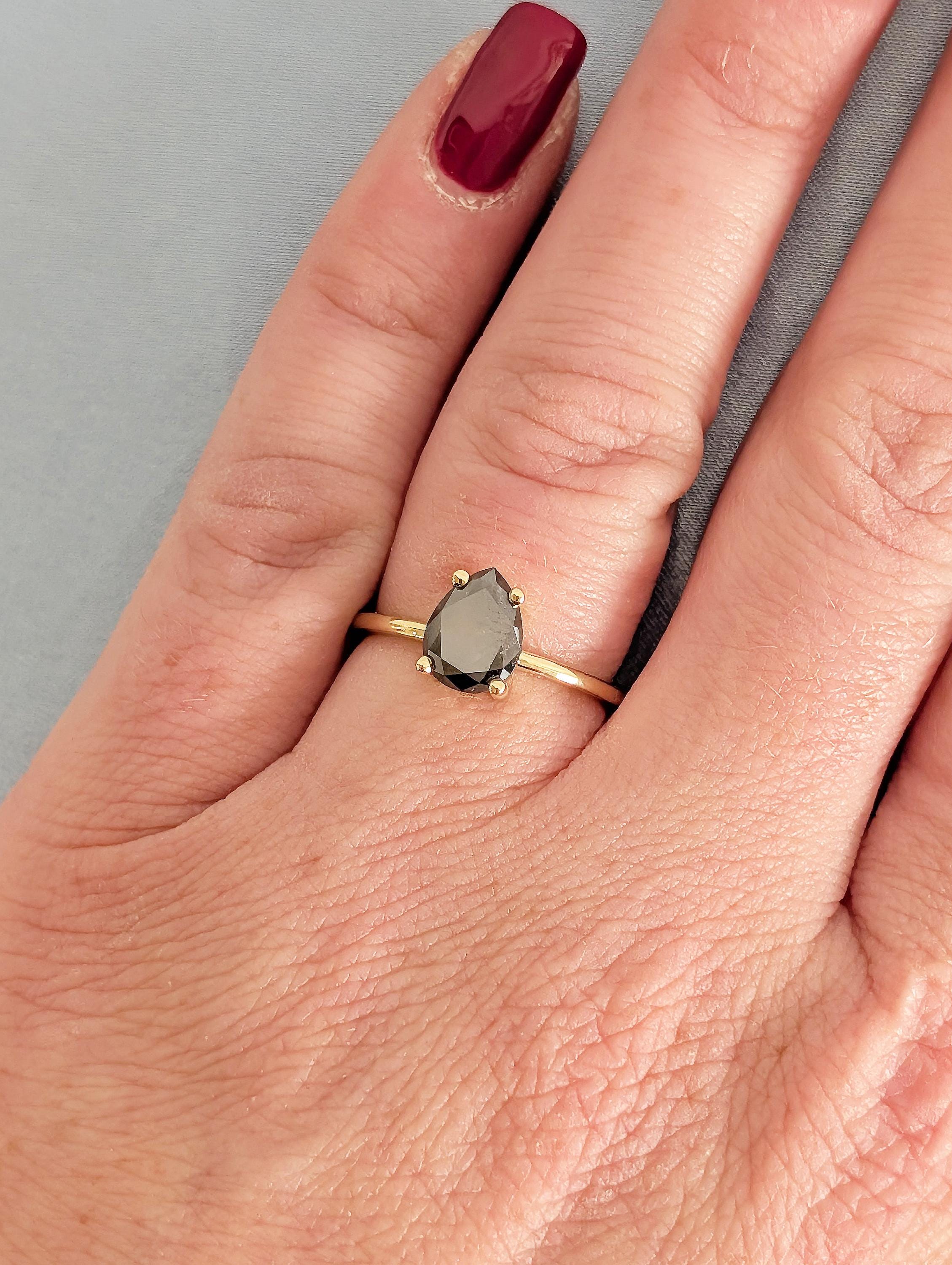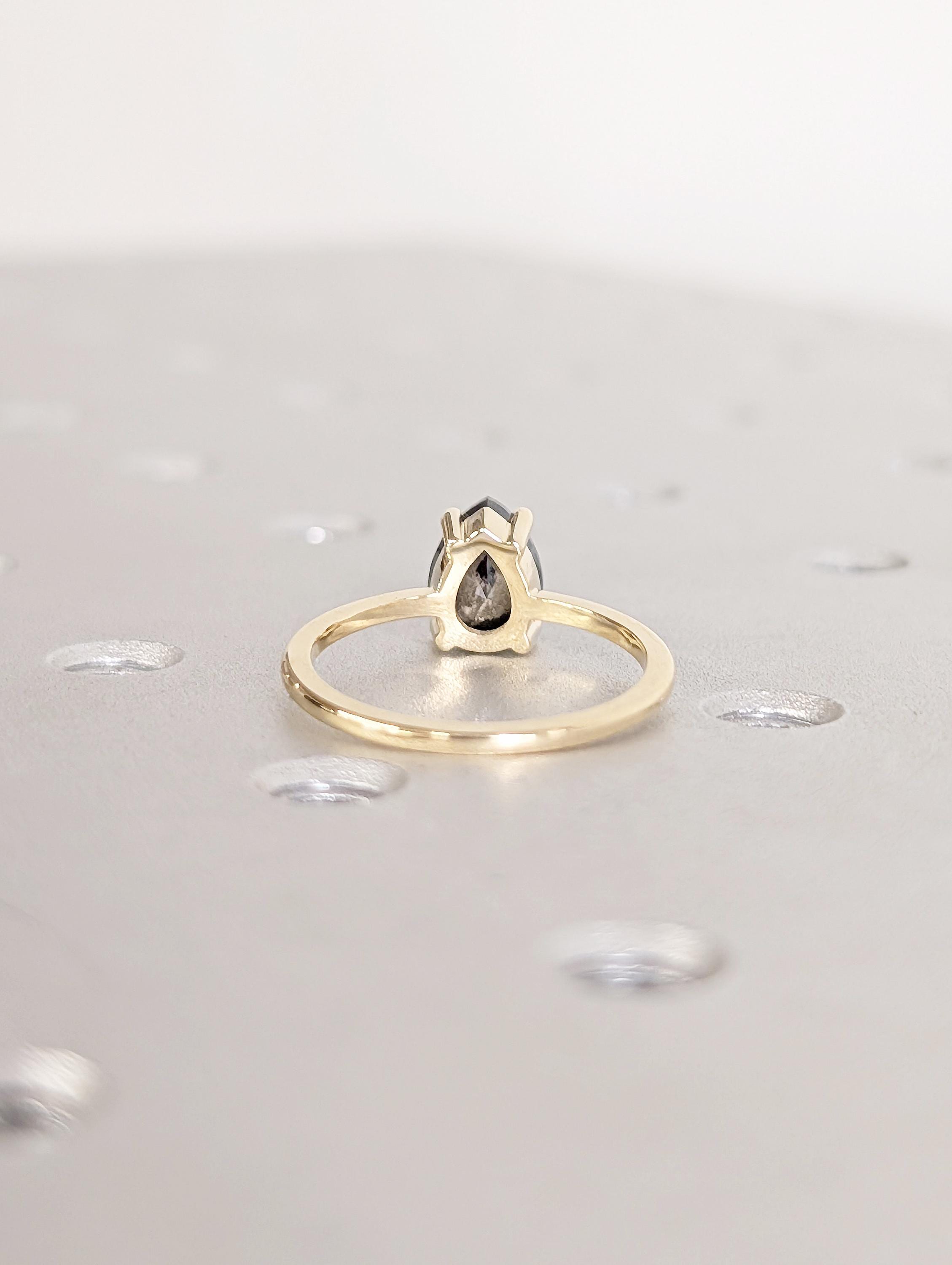 Salt and Pepper Diamond Engagement Ring, Pear Cut 14k Solid Gold Wedding Ring
