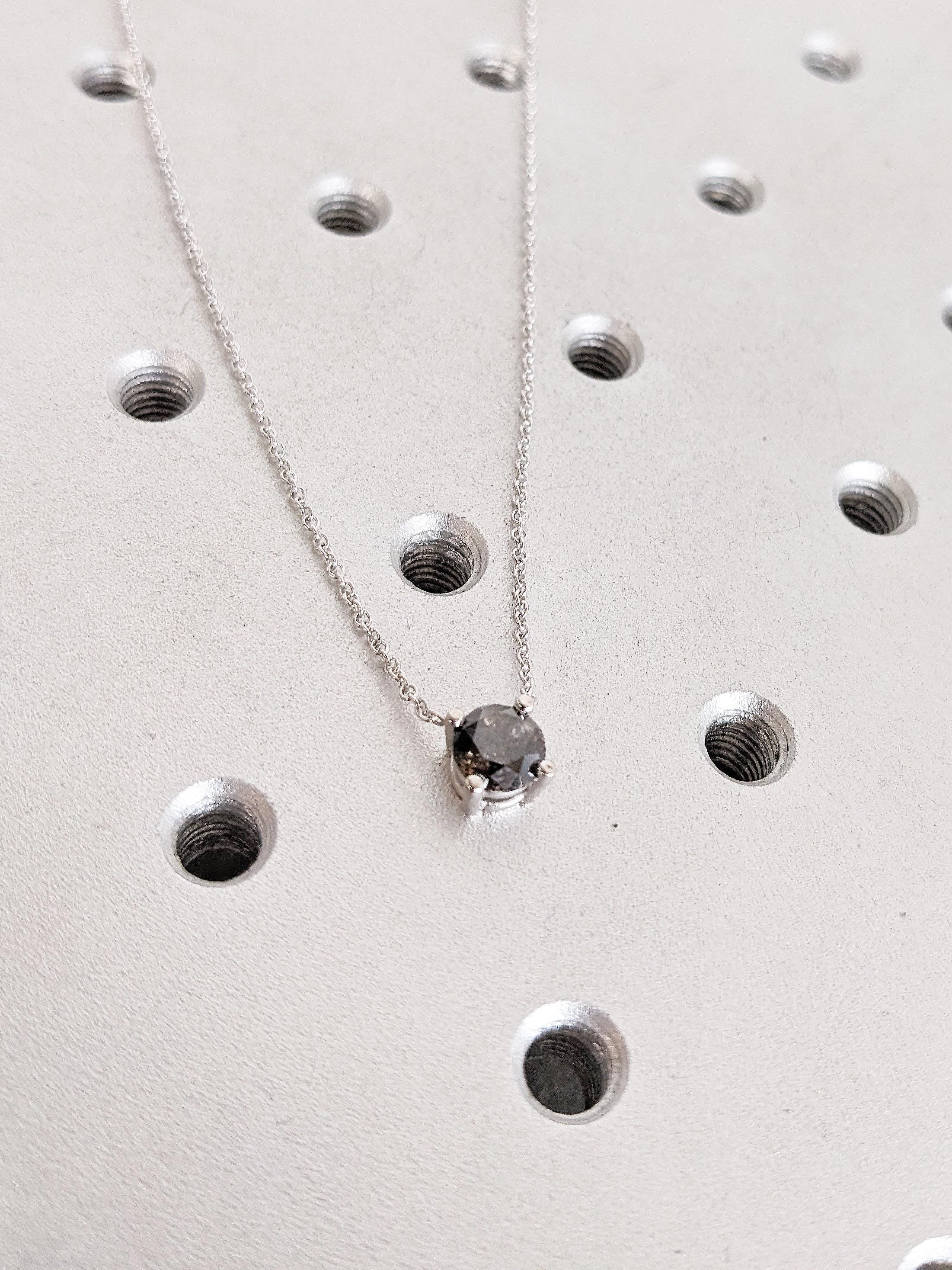 Salt and Pepper Diamond Necklace Pendant, Personalized Necklace, 14k White Gold Minimalist Necklace, Vintage Necklace, Everyday Necklace