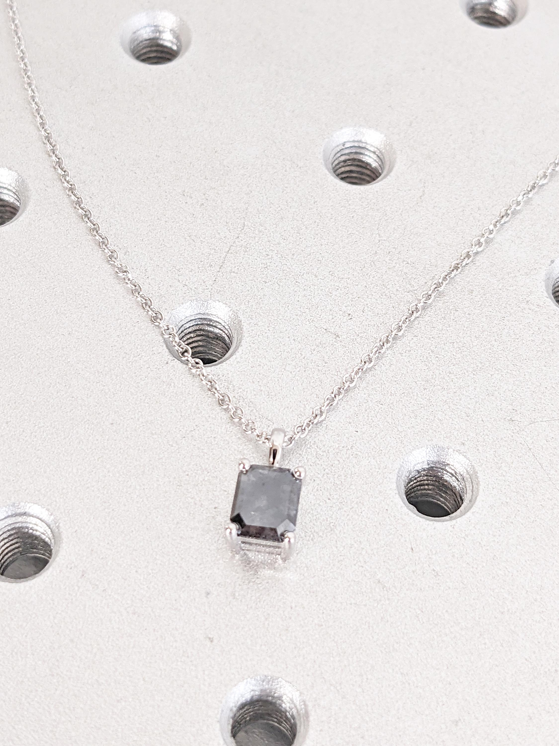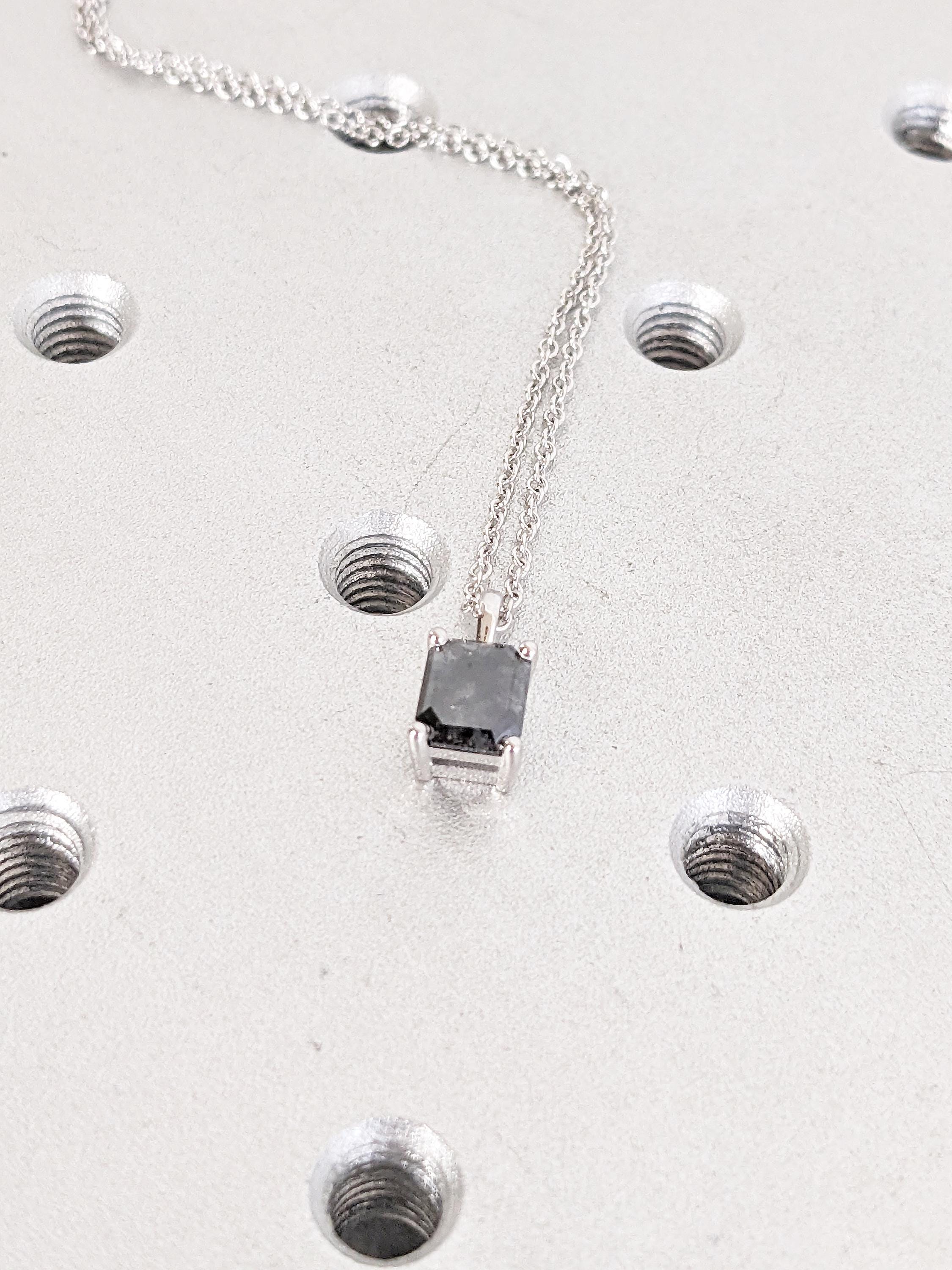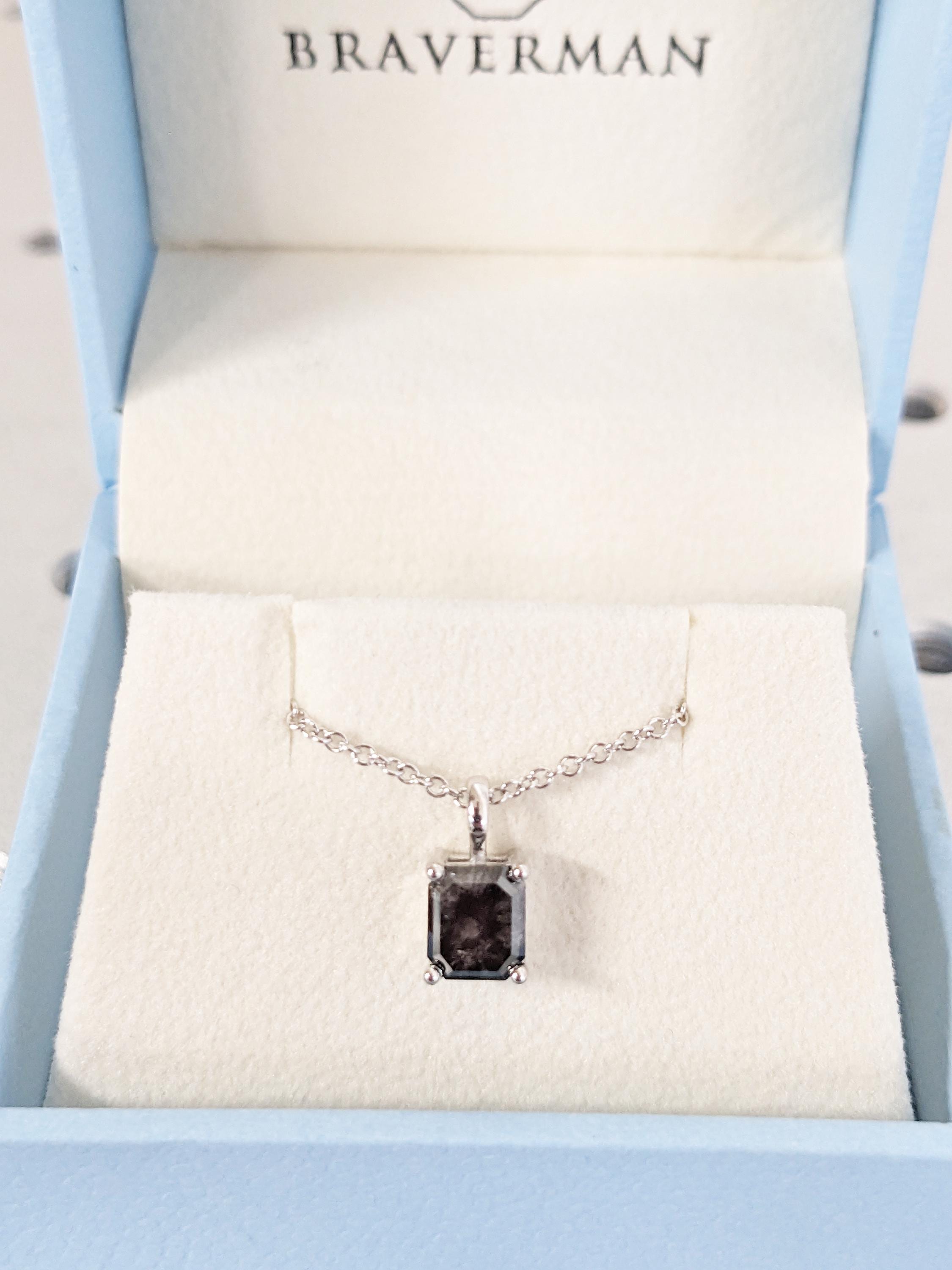 Effortlessly elegant and timelessly striking, this solitaire Salt and Pepper Diamond pendant features a four-prong setting that lets the stone dangle with captivating charm.