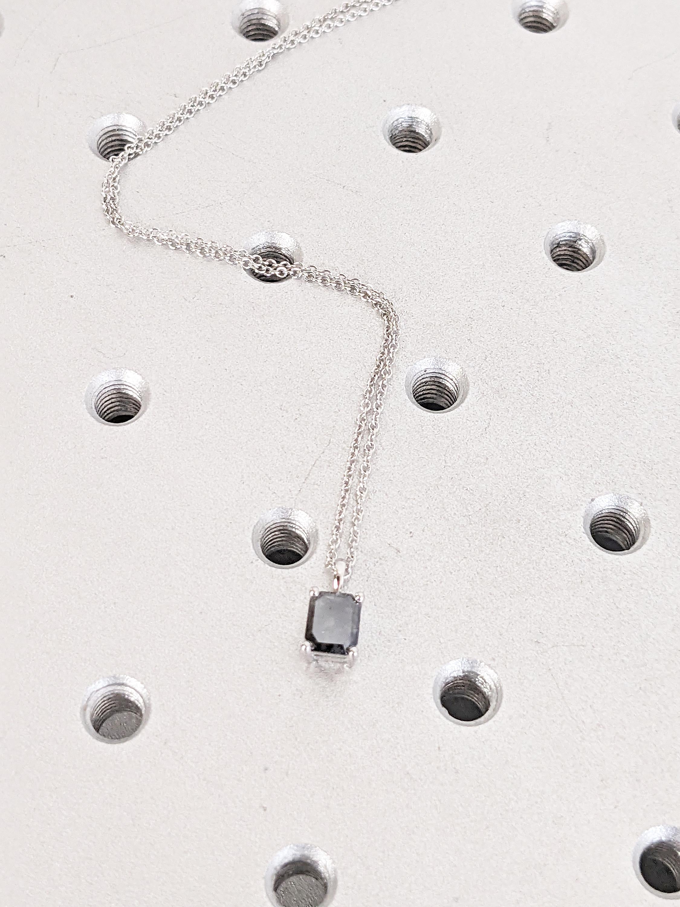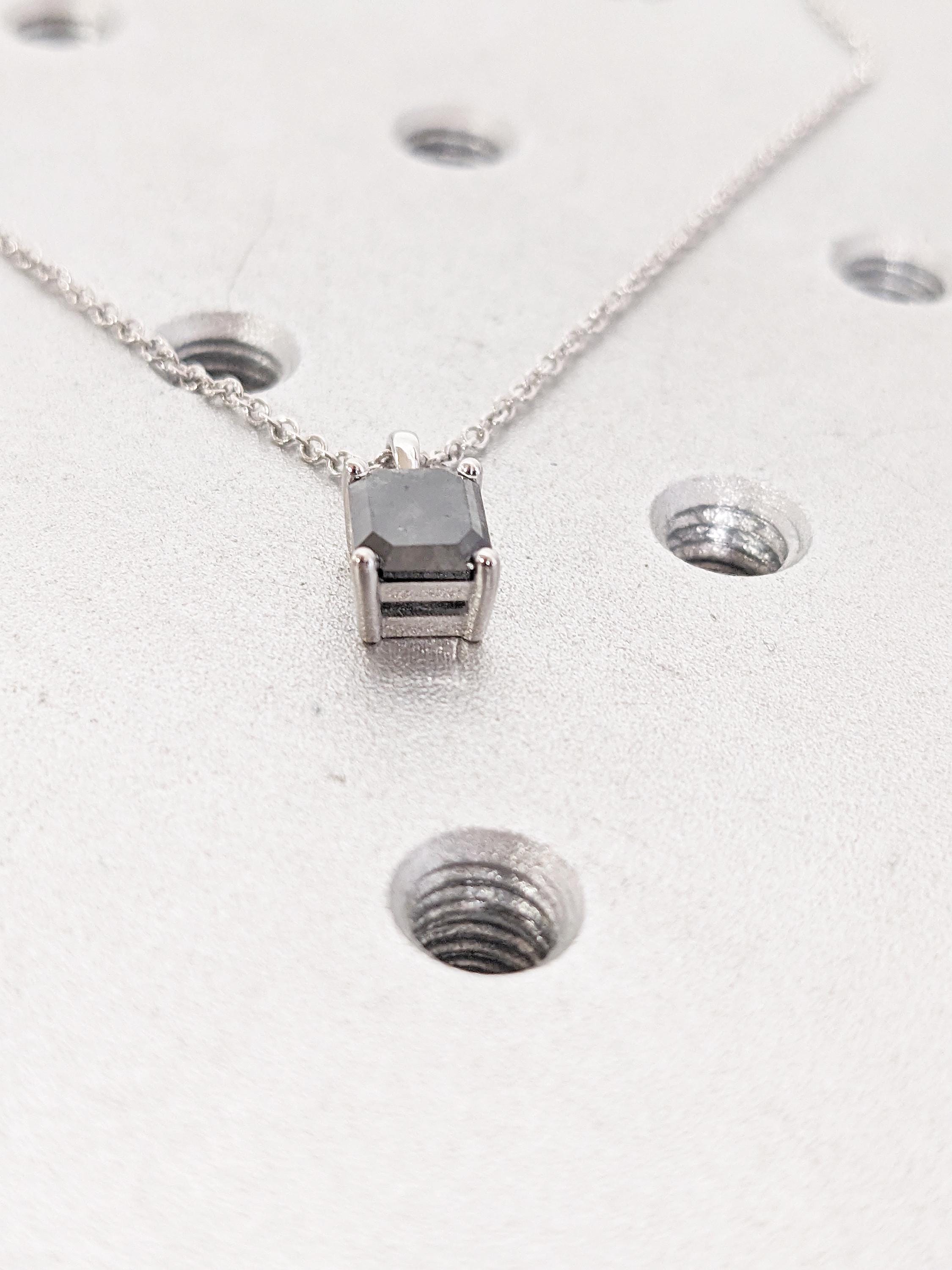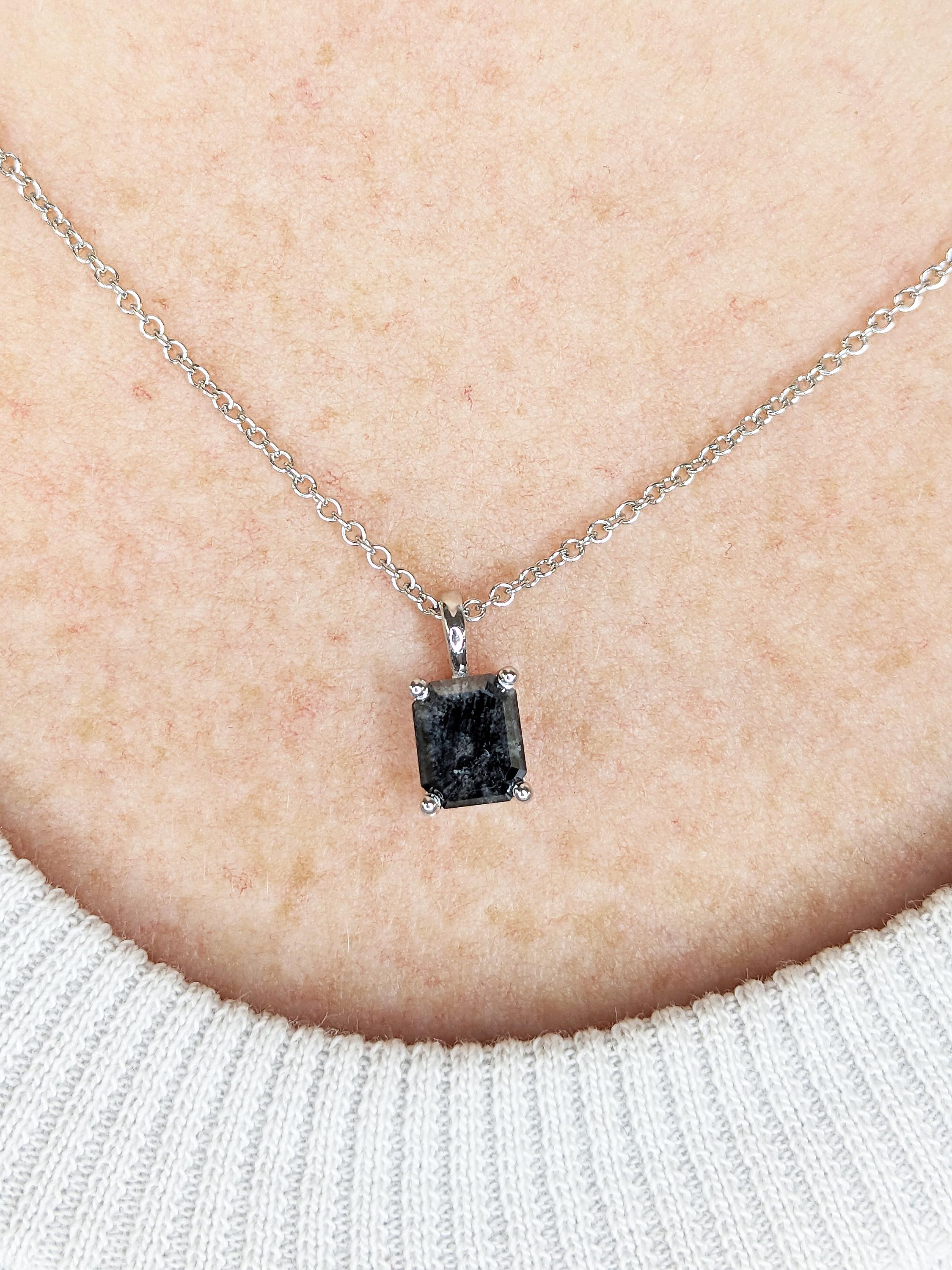 Effortlessly elegant and timelessly striking, this solitaire Salt and Pepper Diamond pendant features a four-prong setting that lets the stone dangle with captivating charm.