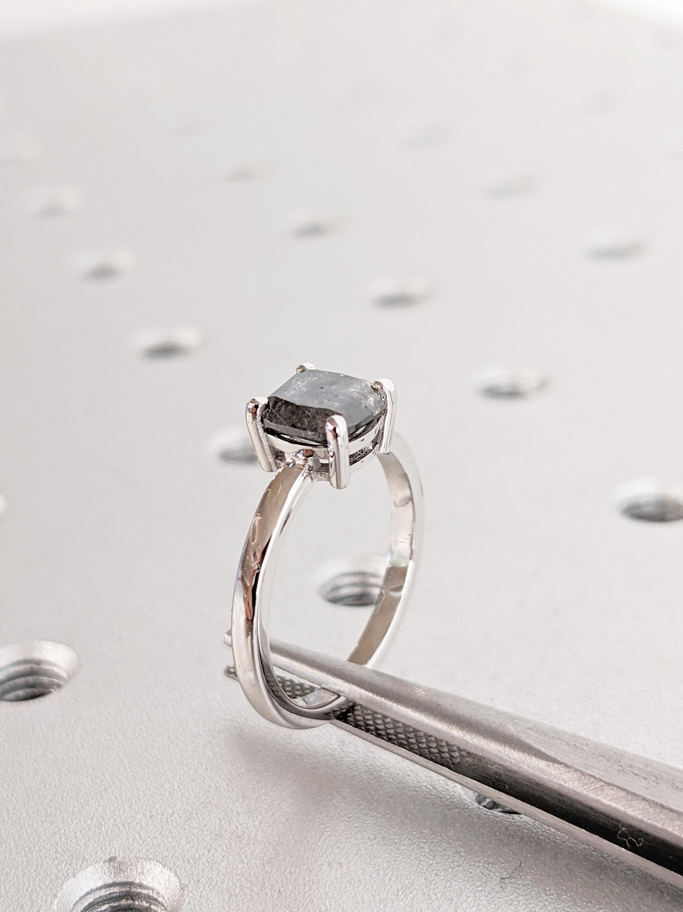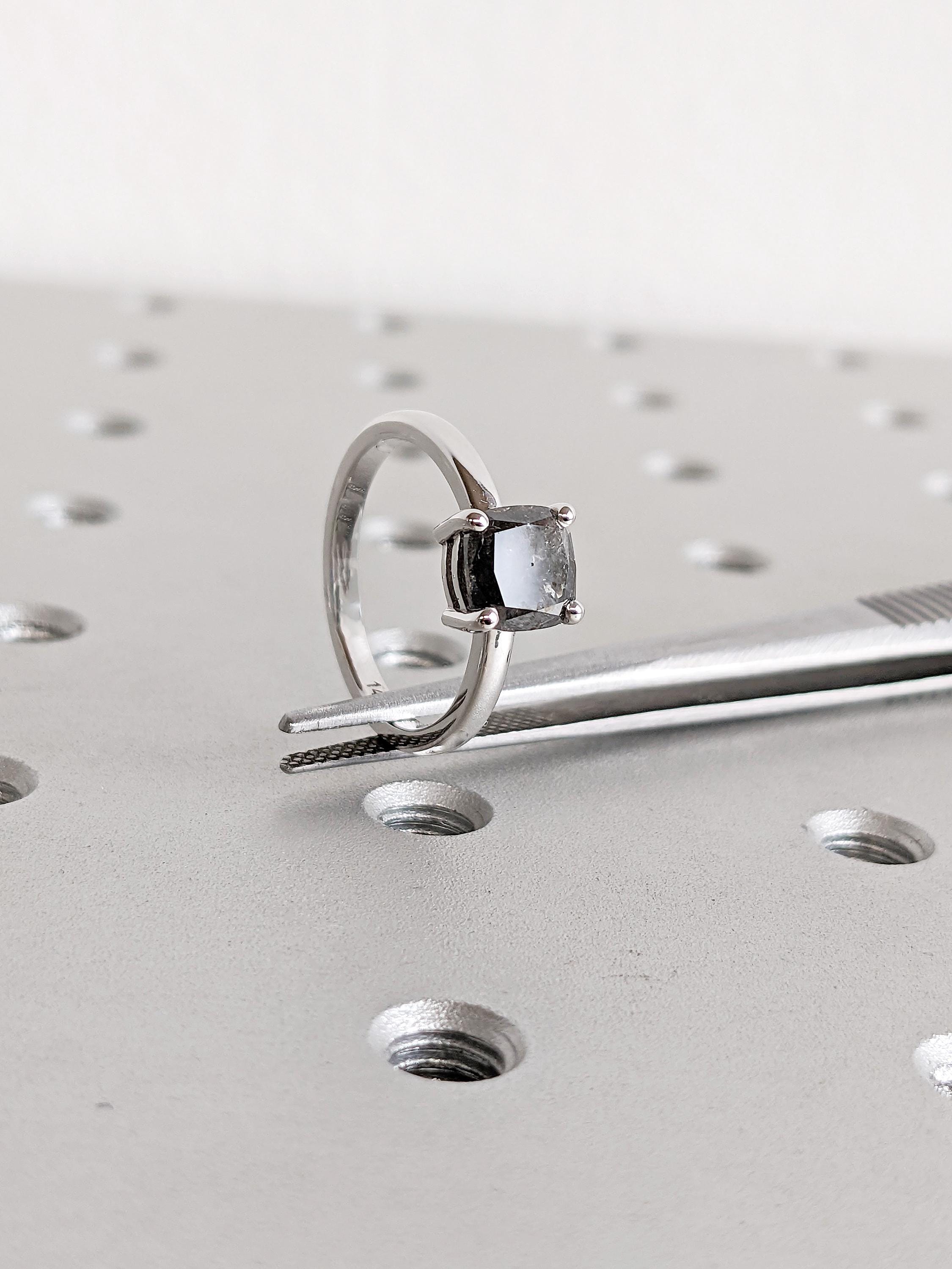 Salt and Pepper Diamond Ring, 14K White Gold Solitaire Engagement Ring, Cushion Cut Ring, Modern Minimalist Ring, Bridal Jewelry for Women