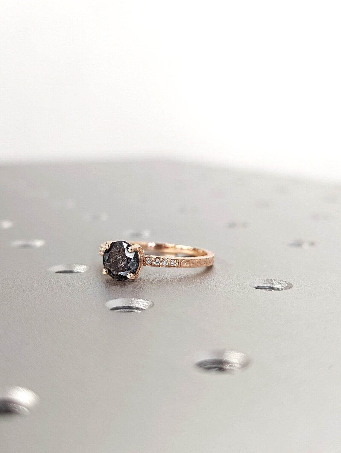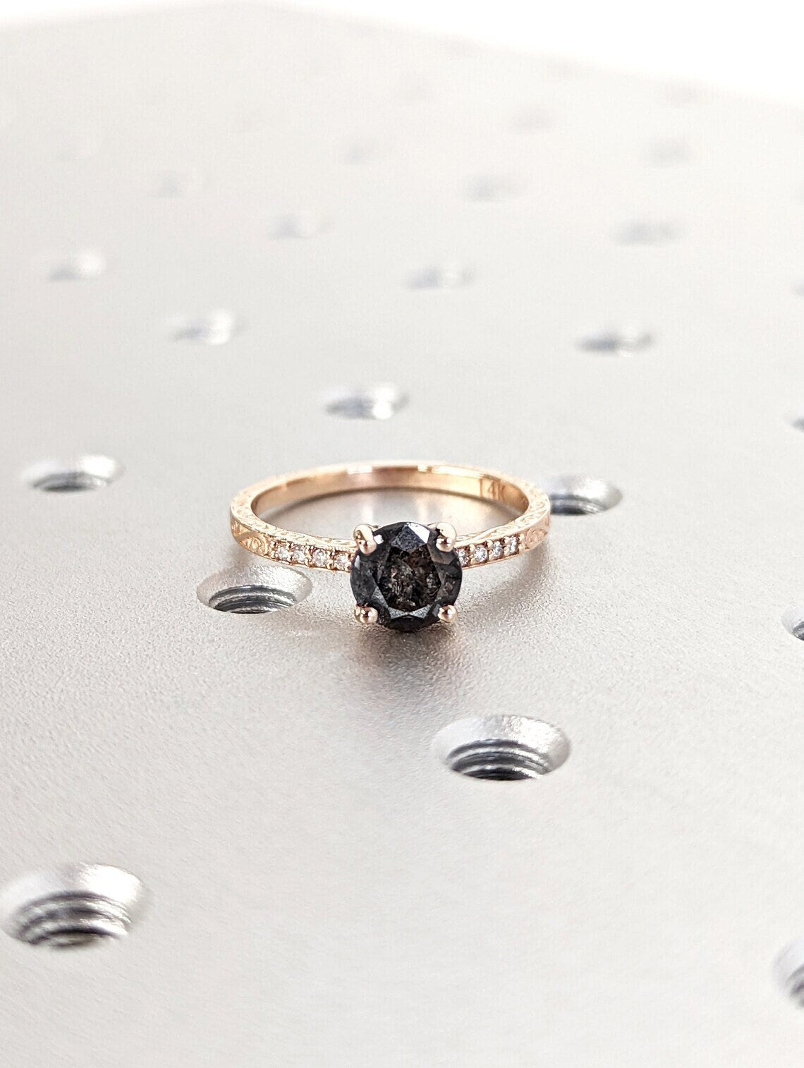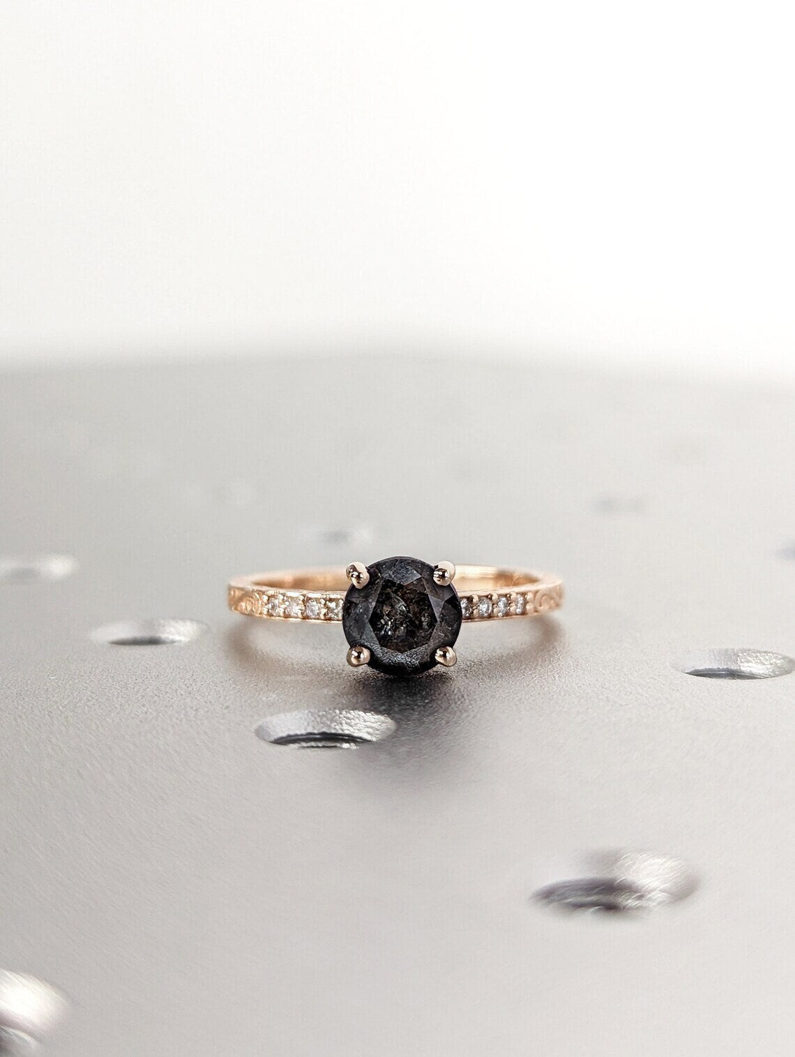 Salt and Pepper Diamond Ring | Handmade Engagement Ring | Round Diamond Ring | Art Deco Ring | Natural Diamond Ring | Gift for loved one