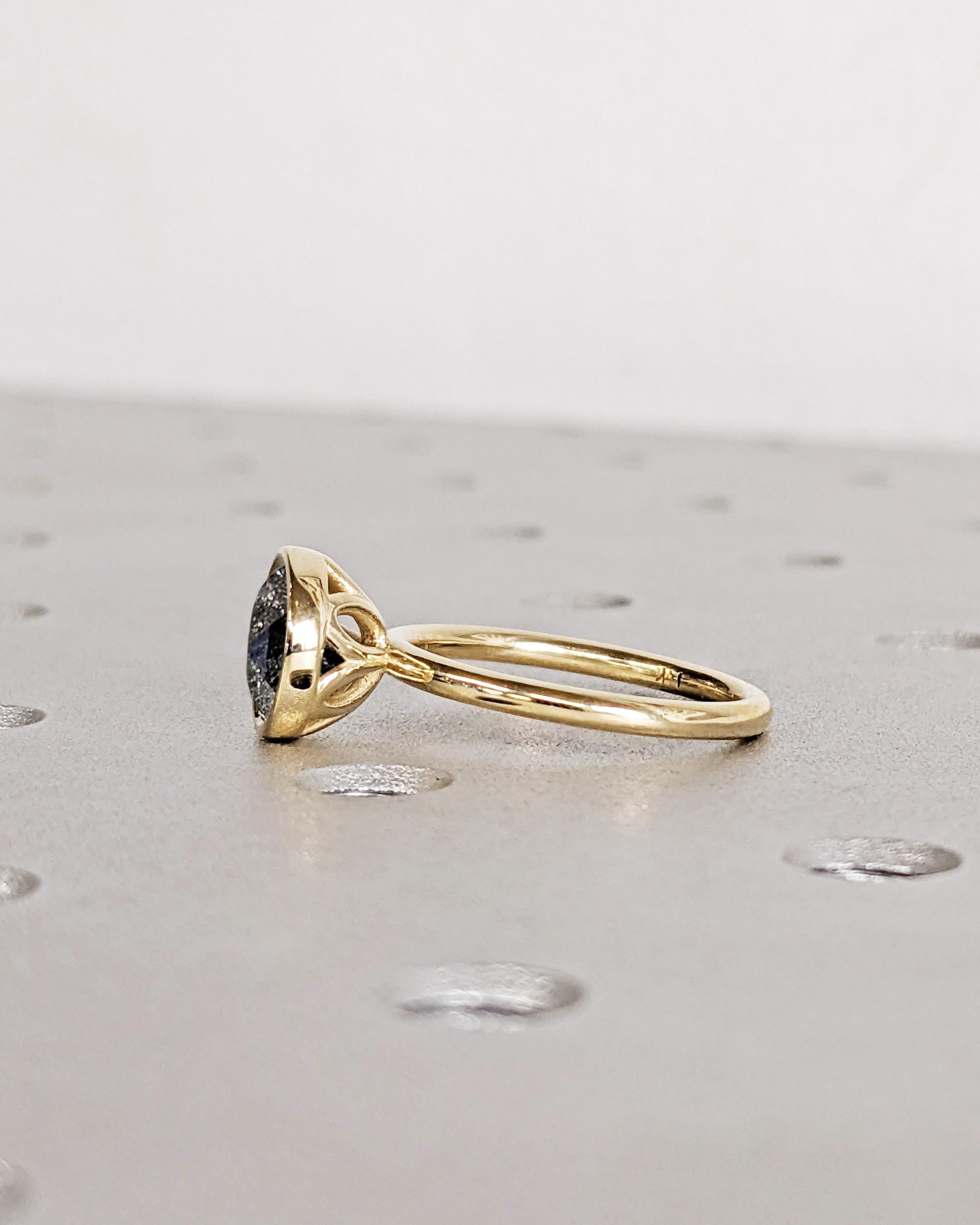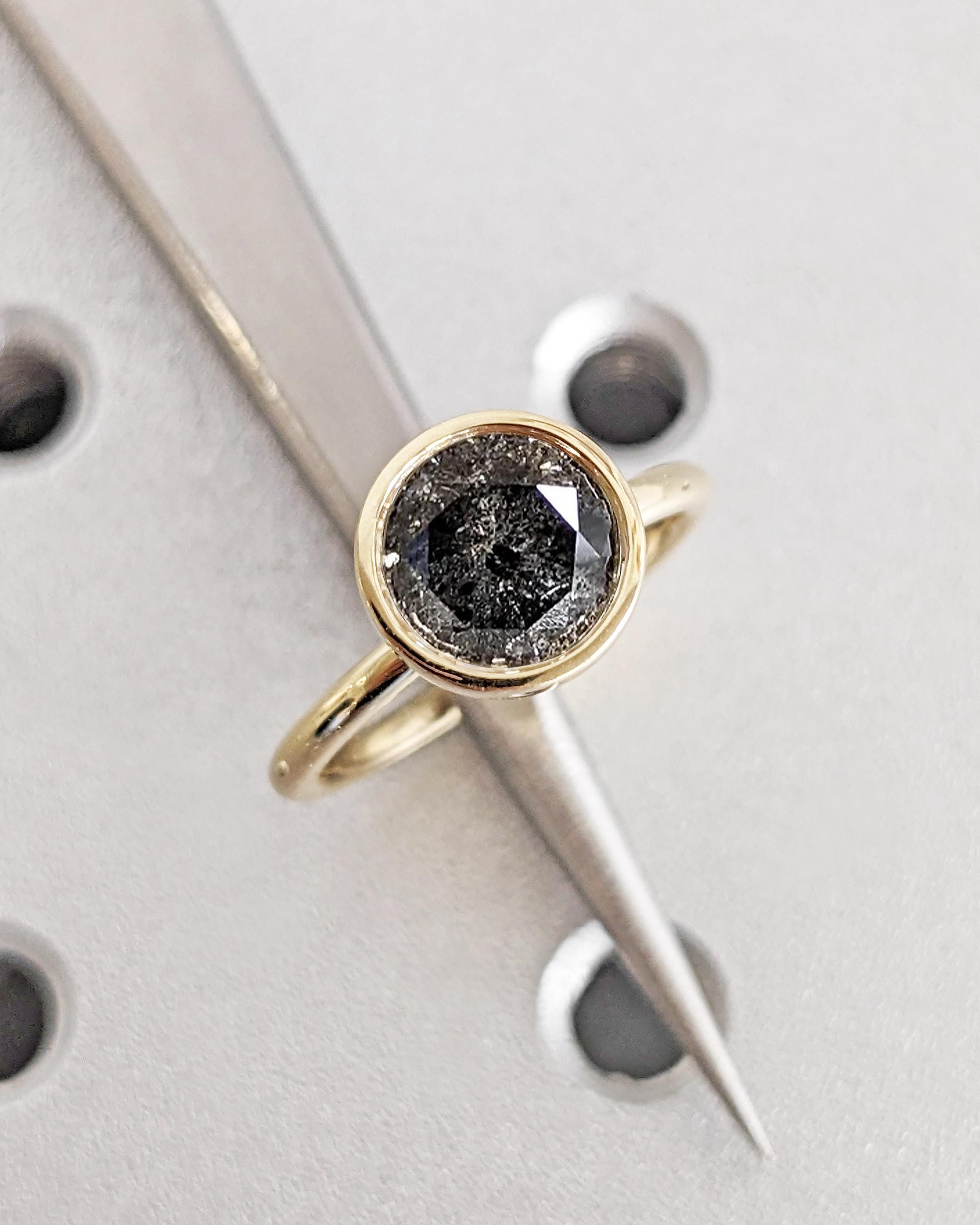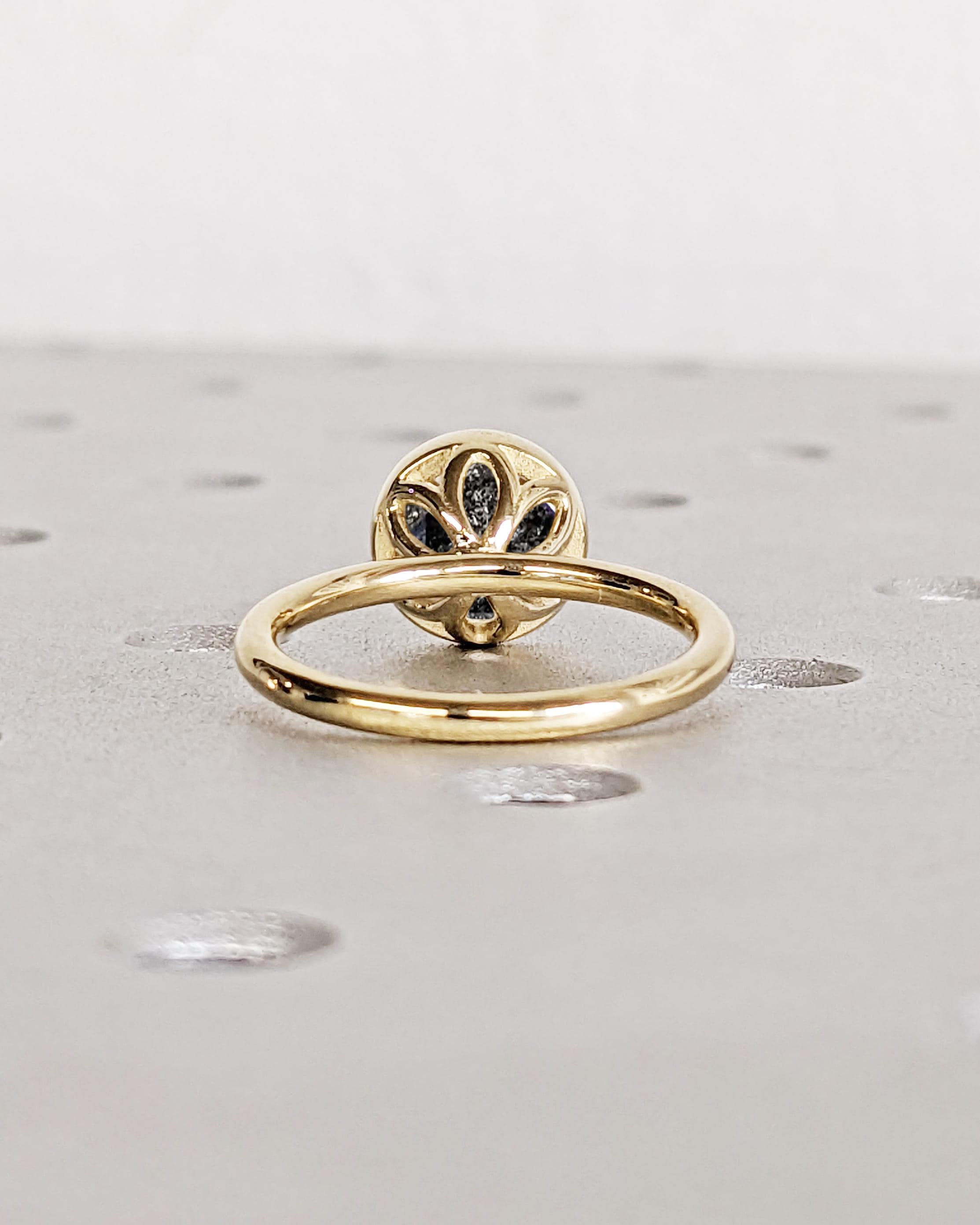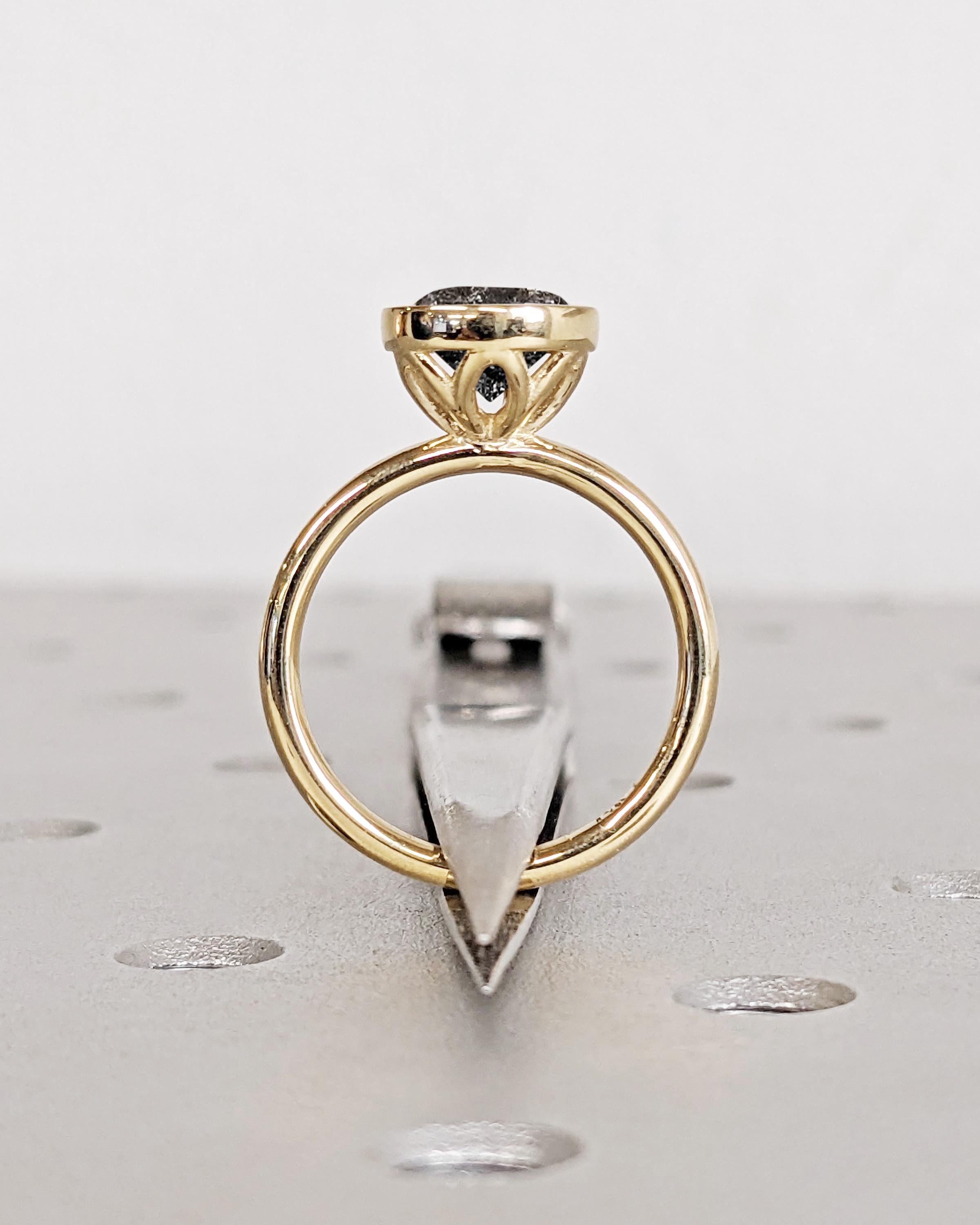 Salt and Pepper Diamond Ring: Petal Prongs, Tulip Petal Lotus Basket, Bezel Ring, Solid Gold