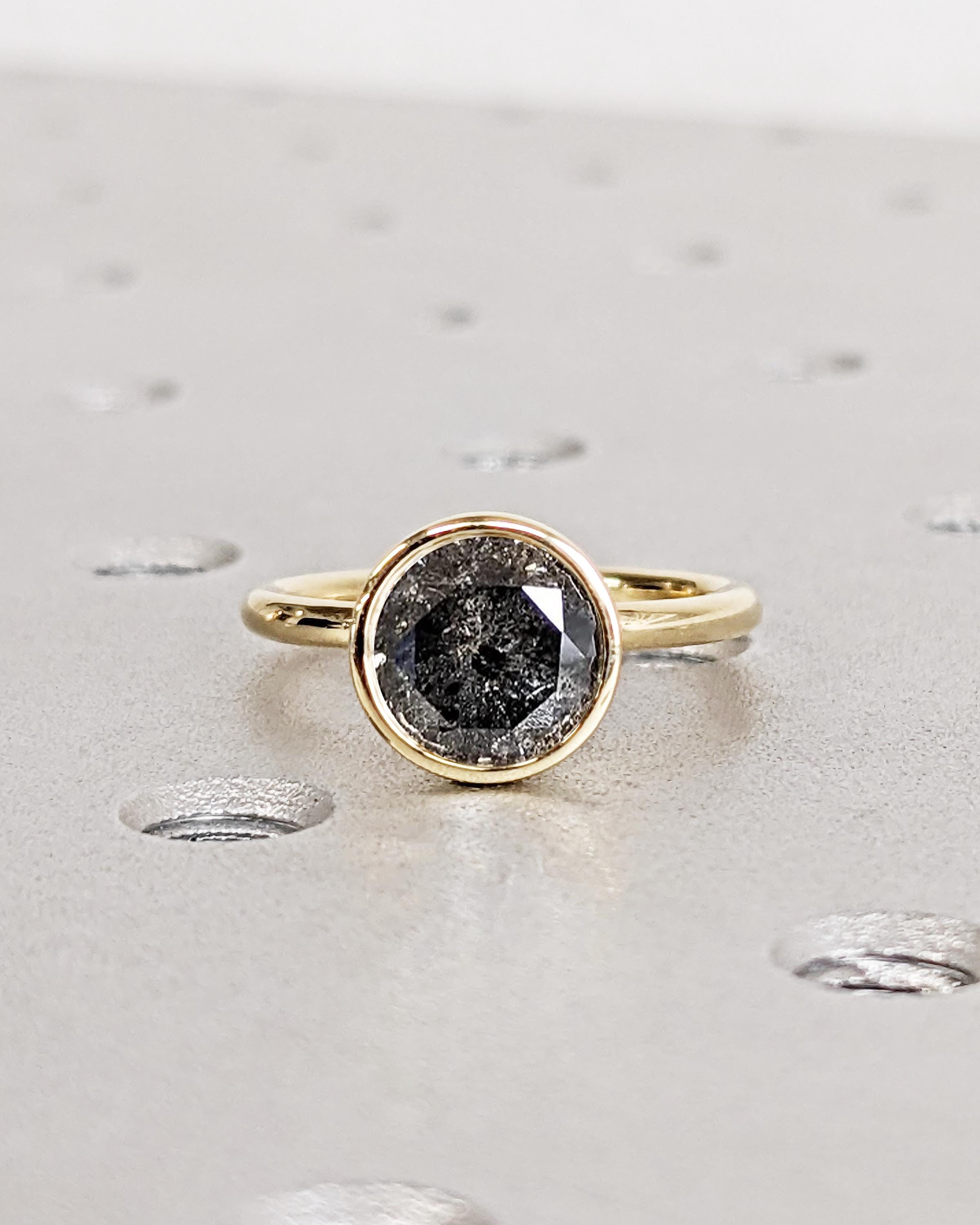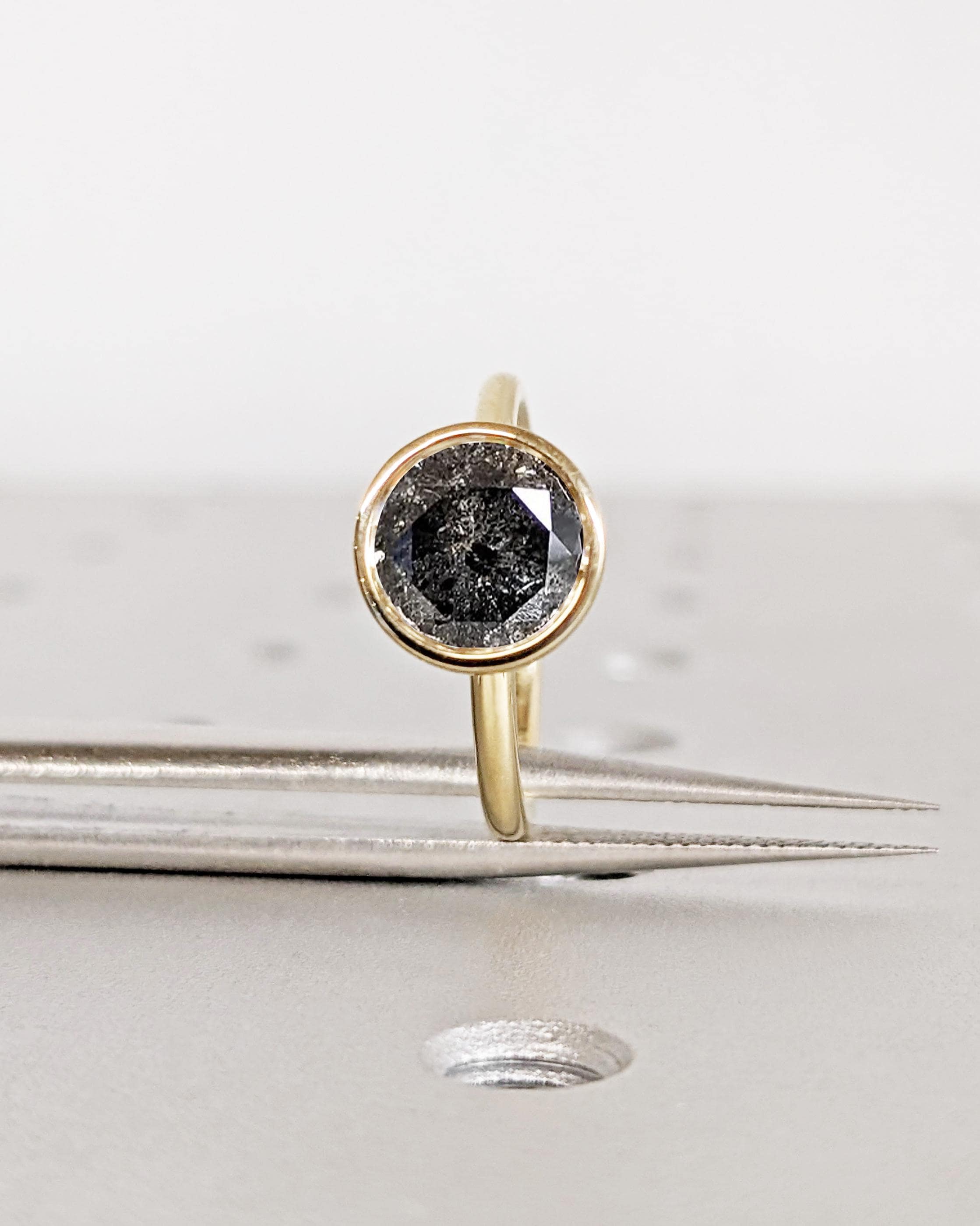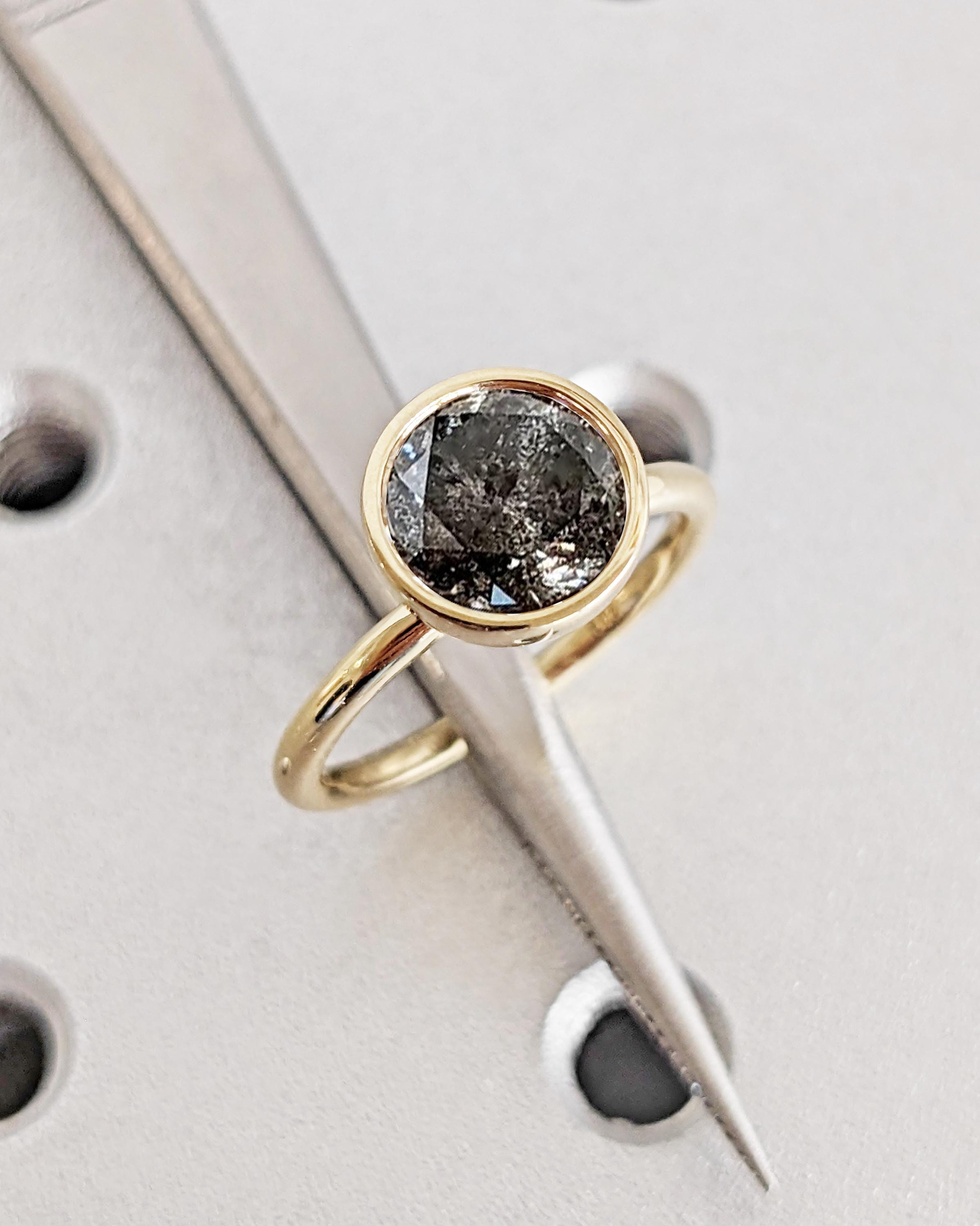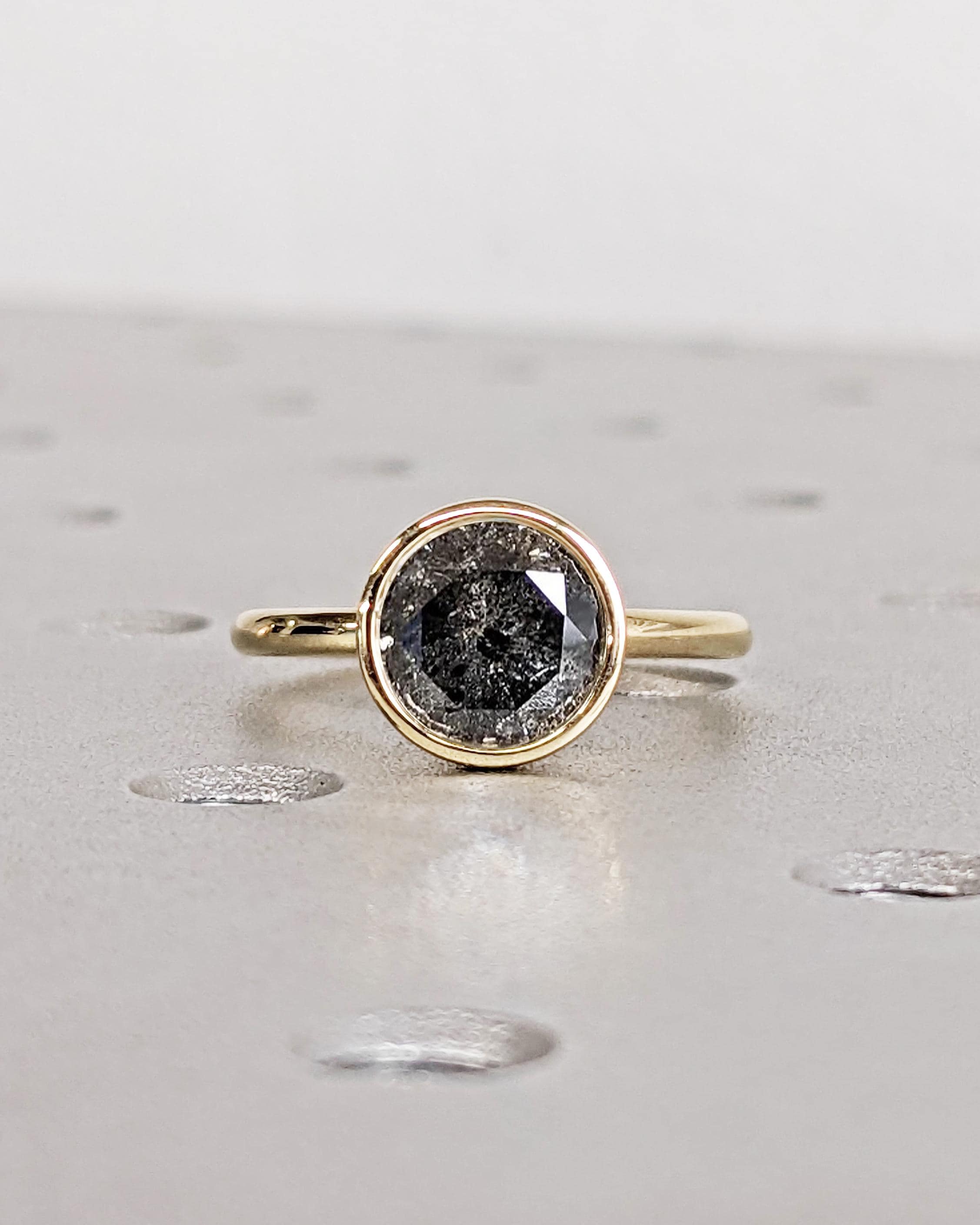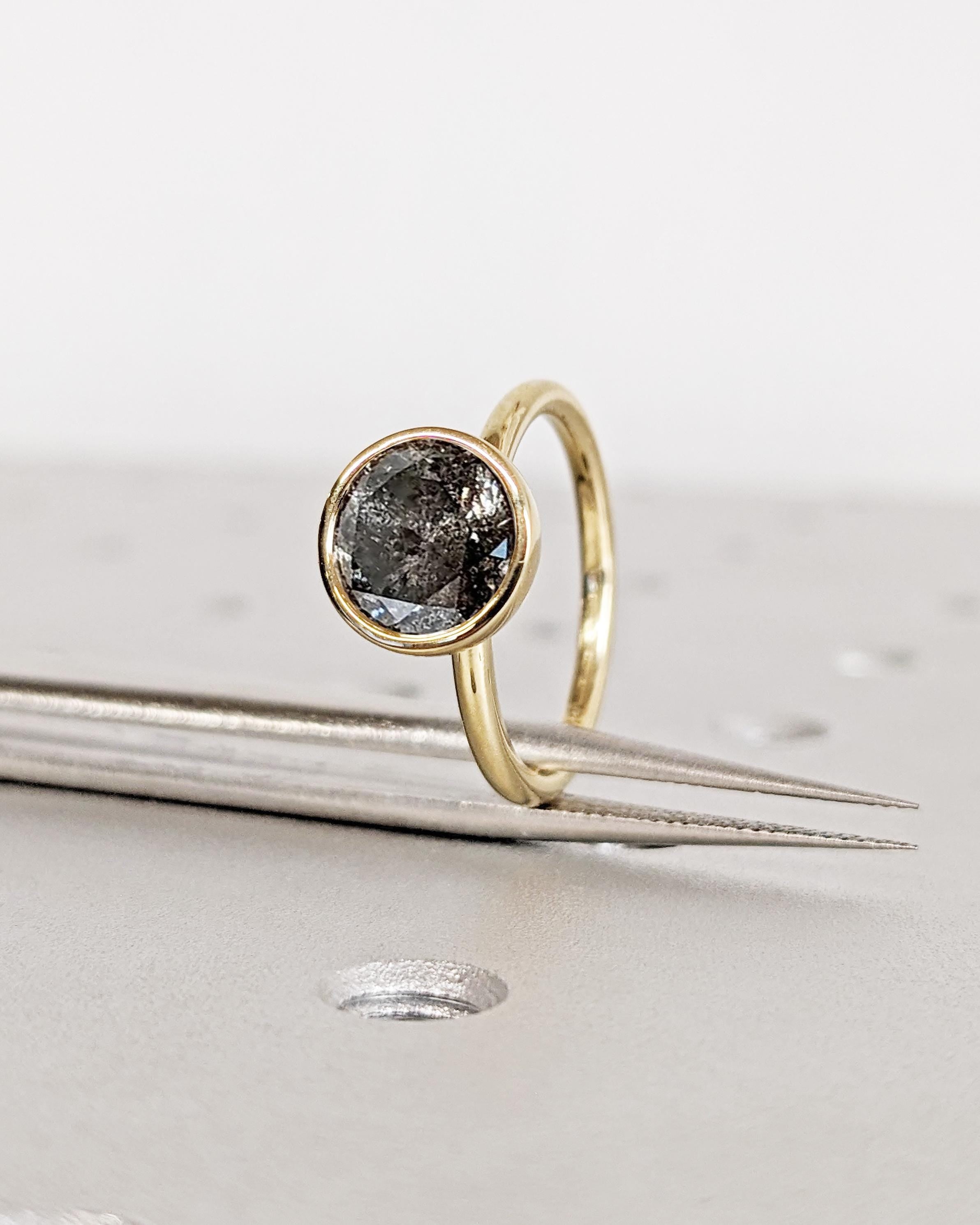 Salt and Pepper Diamond Ring: Petal Prongs, Tulip Petal Lotus Basket, Bezel Ring, Solid Gold