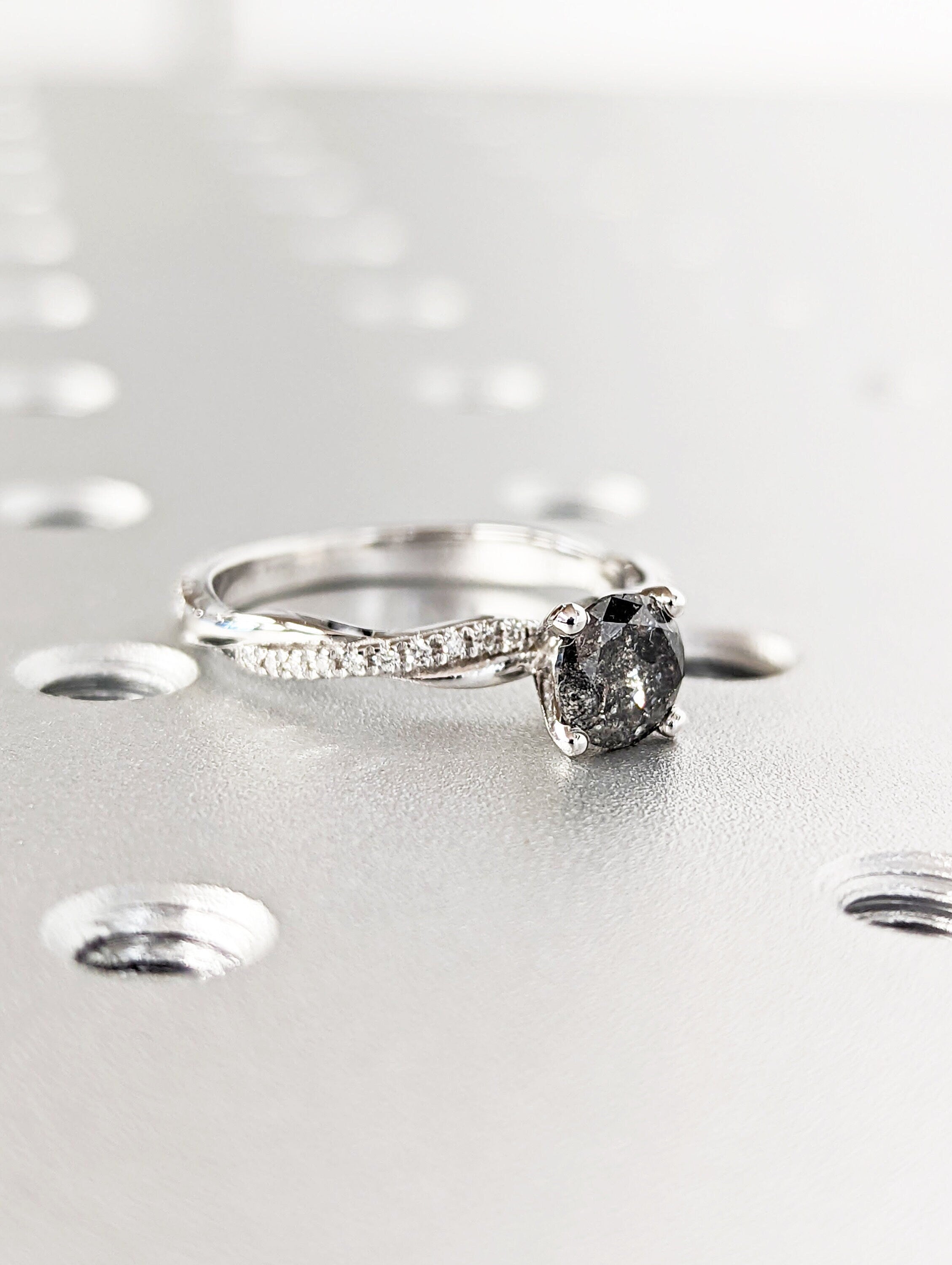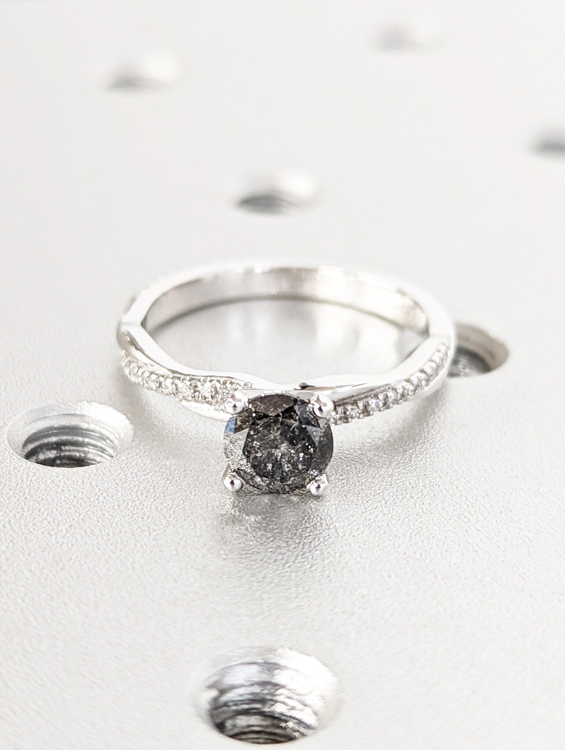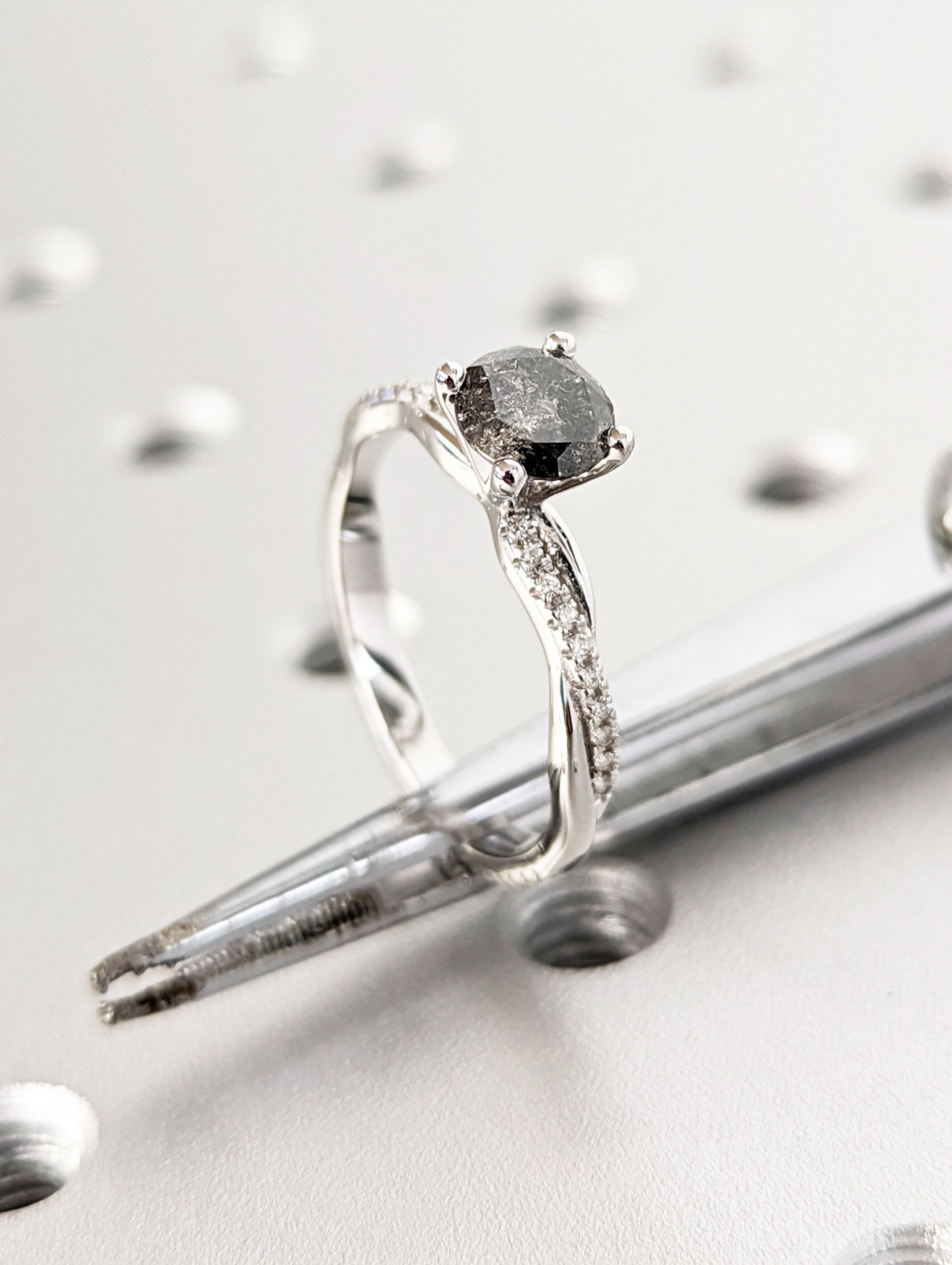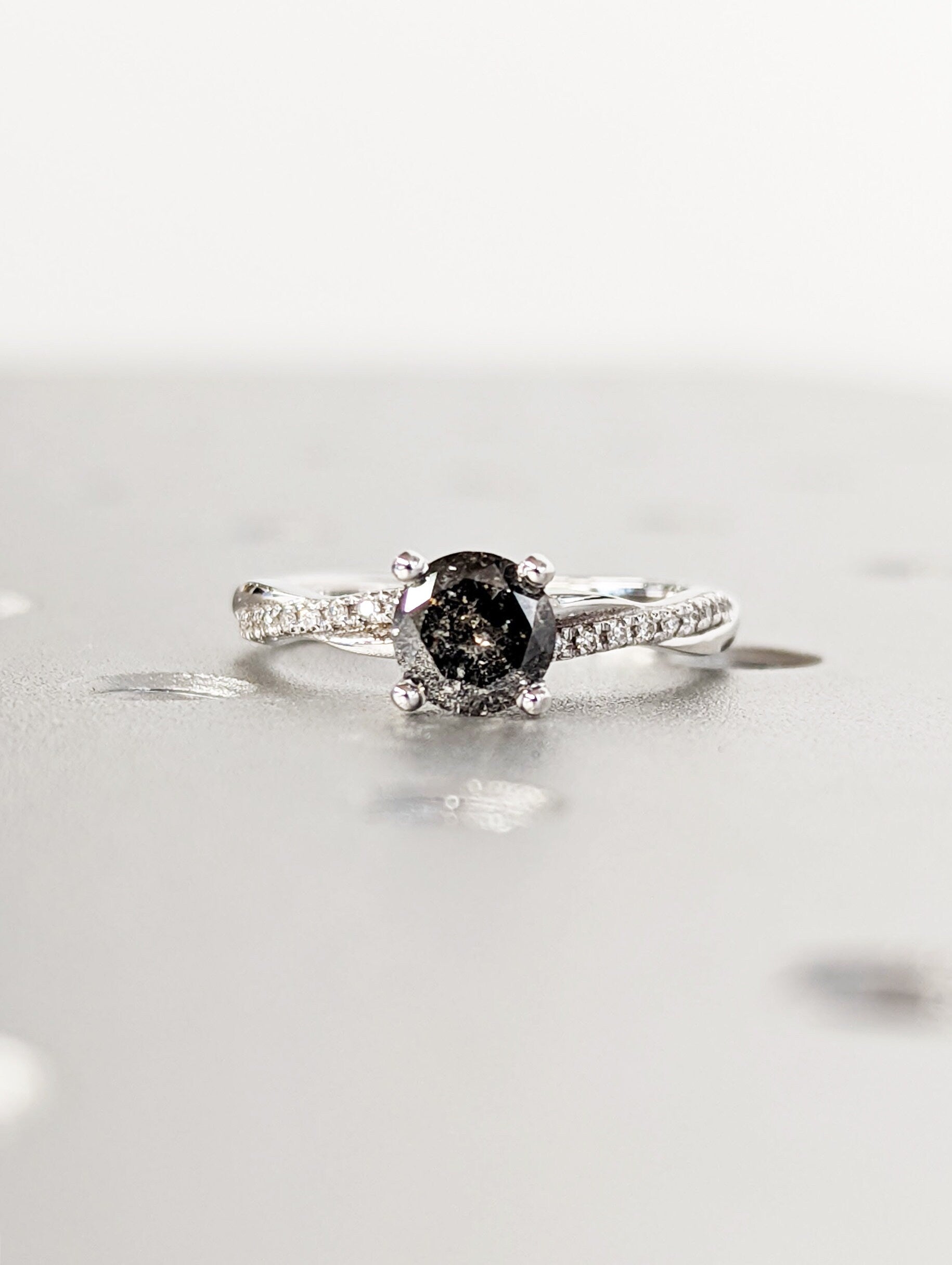 Salt and Pepper Diamond Ring Solitaire White Gold Engagement Ring Petite Twist Half Eternity Ring Infinity Twist Vine Engagement Ring Rope