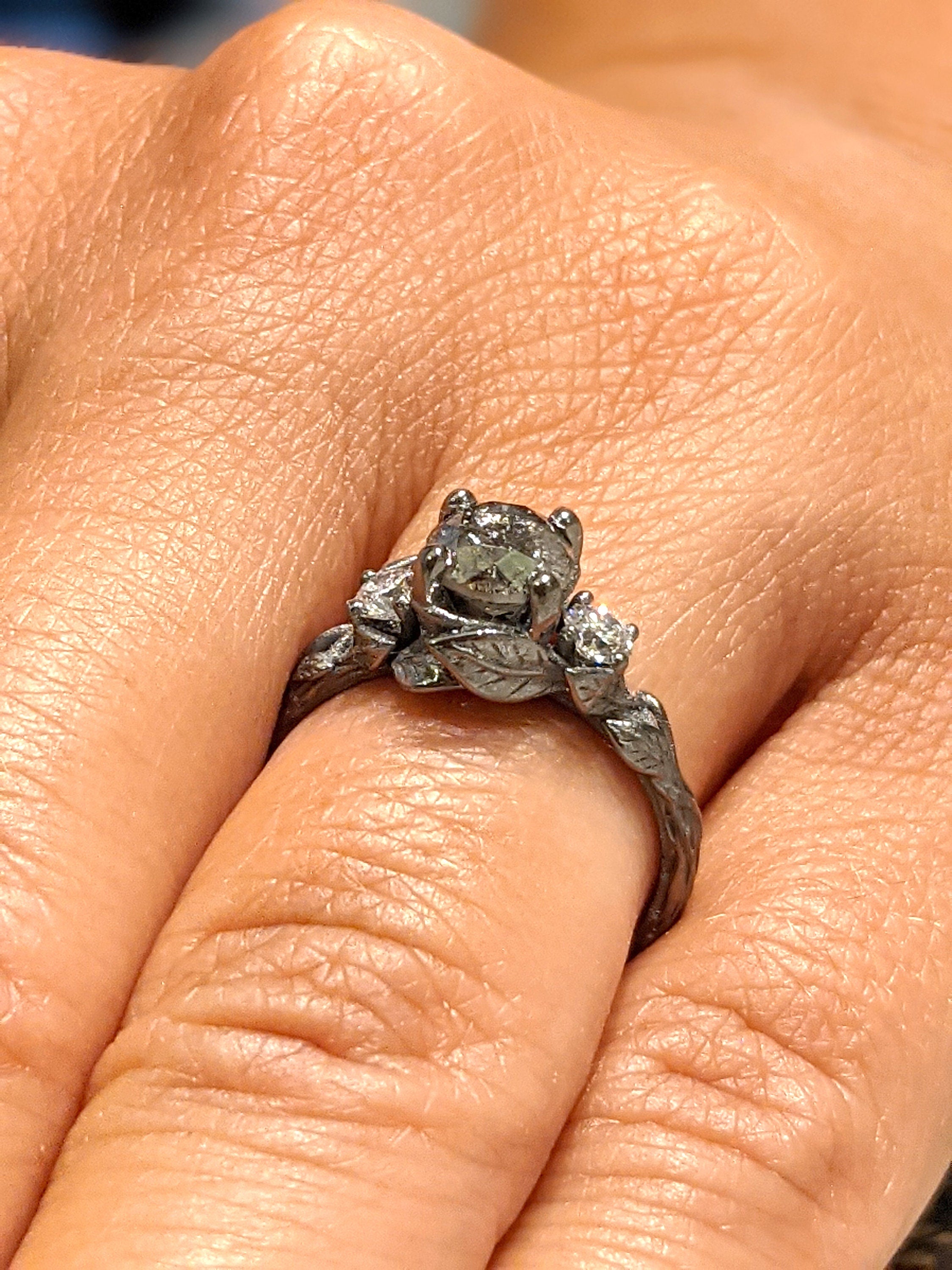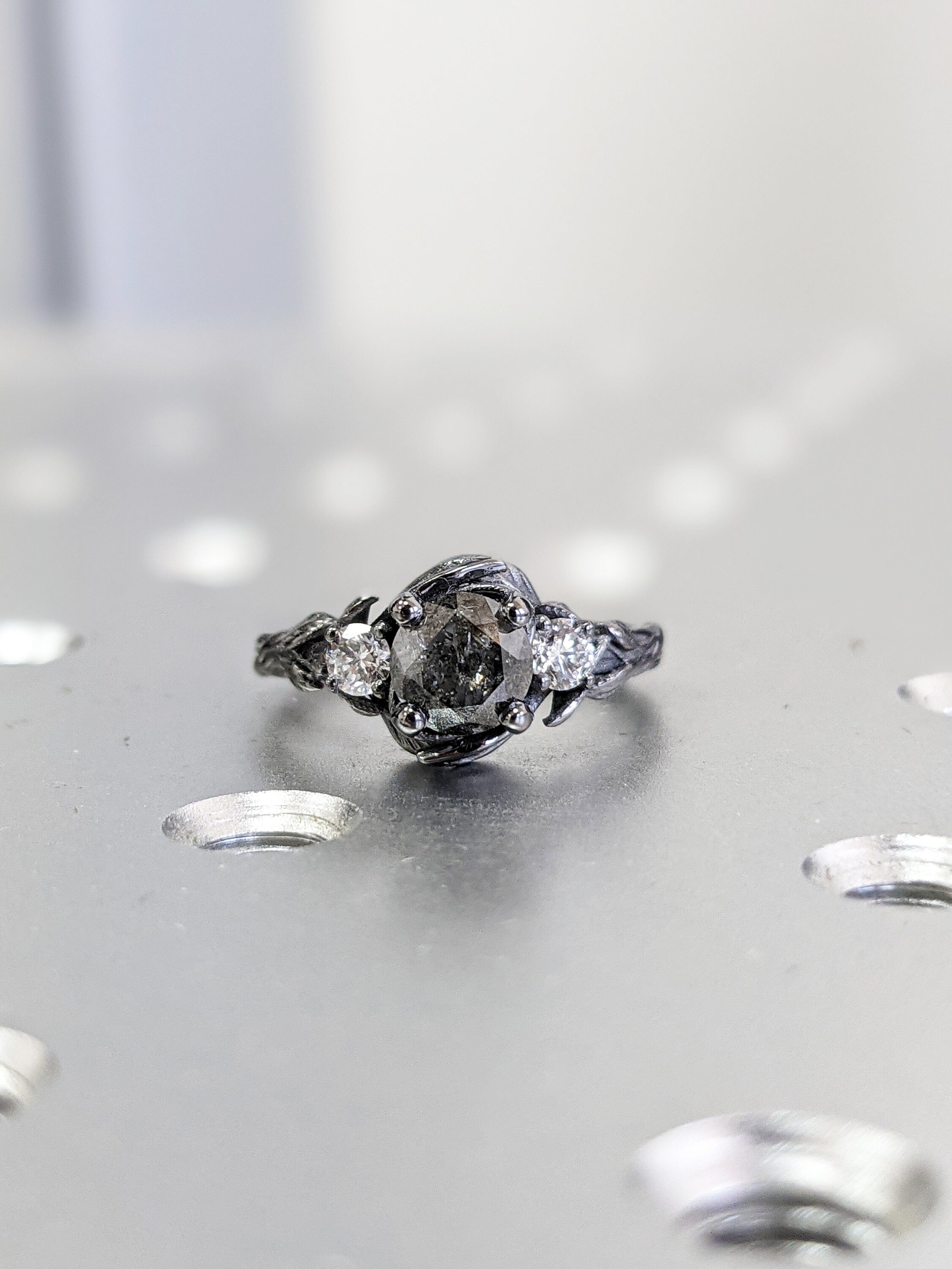 Salt & Pepper Diamond Engagement Ring, Black Diamond Ring, Black Gold Ring, Black Gold Diamond Engagement ring, Black Gold Engagement Ring