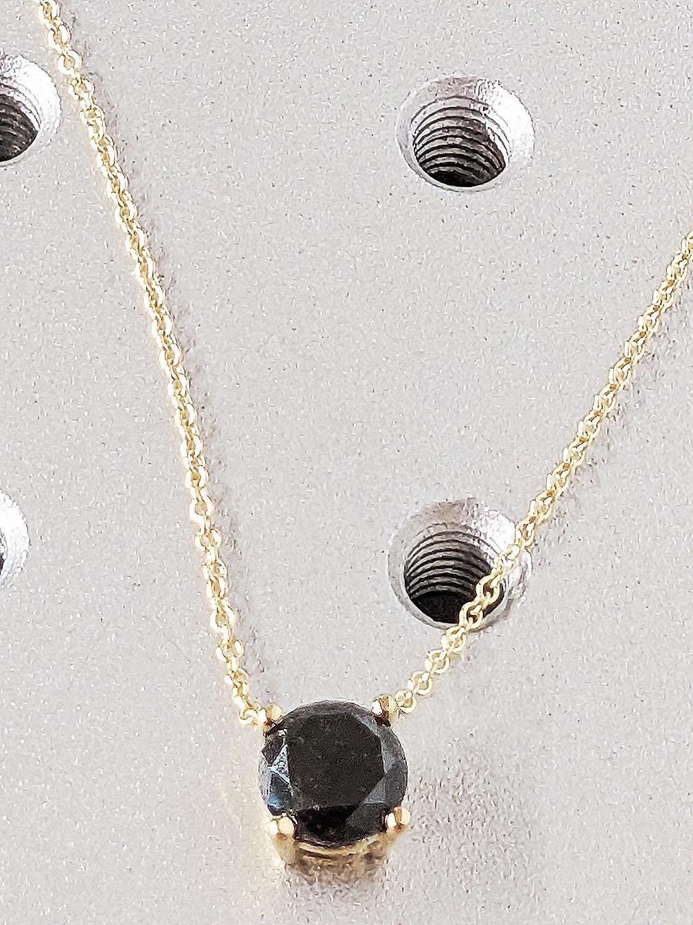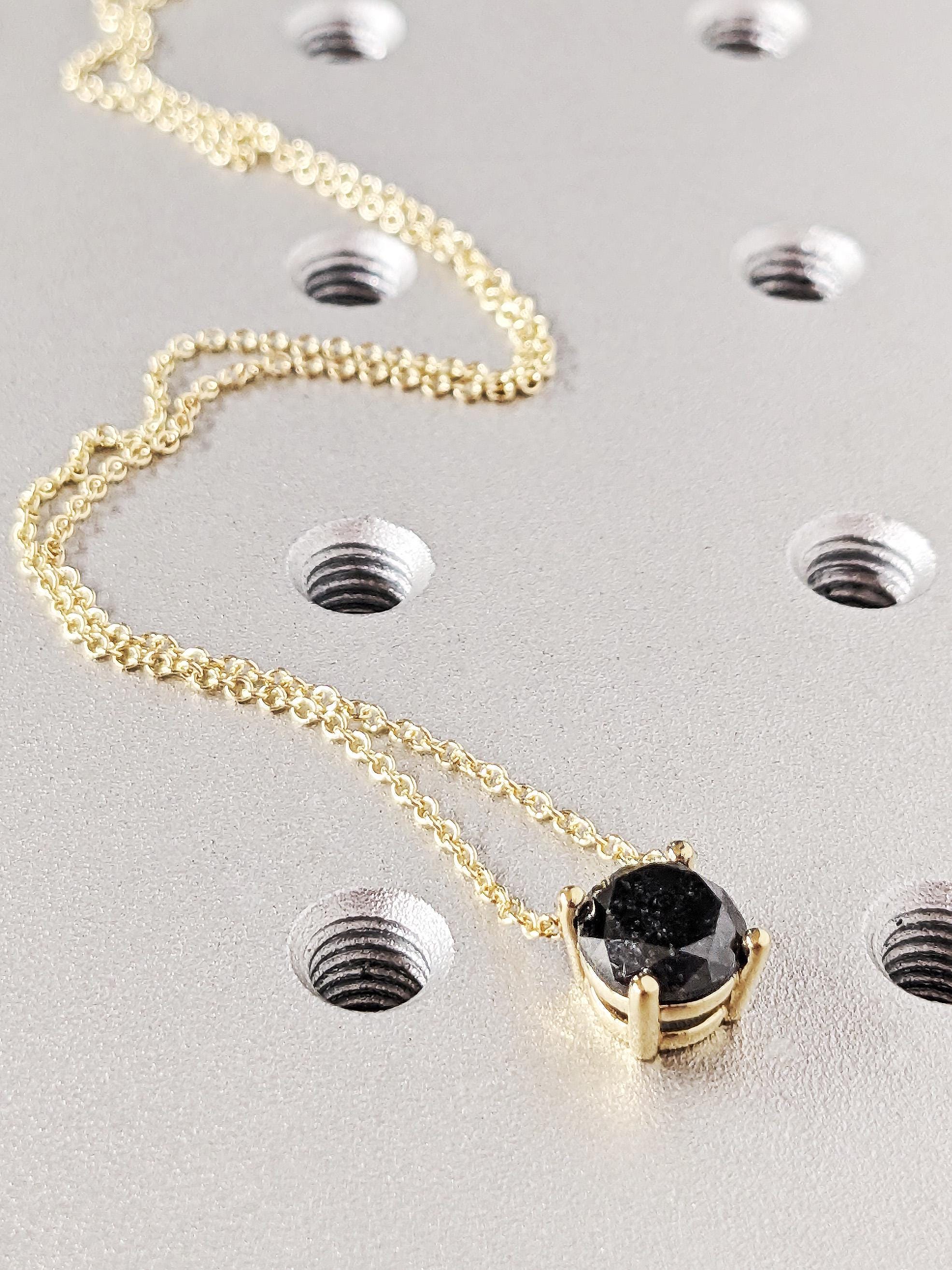 Salt & Pepper Diamond Necklace, 14k Solid Yellow Gold Diamond Necklace, Dainty Bridal Solitaire Necklace, Cosmic Necklace, Vintage Pendant