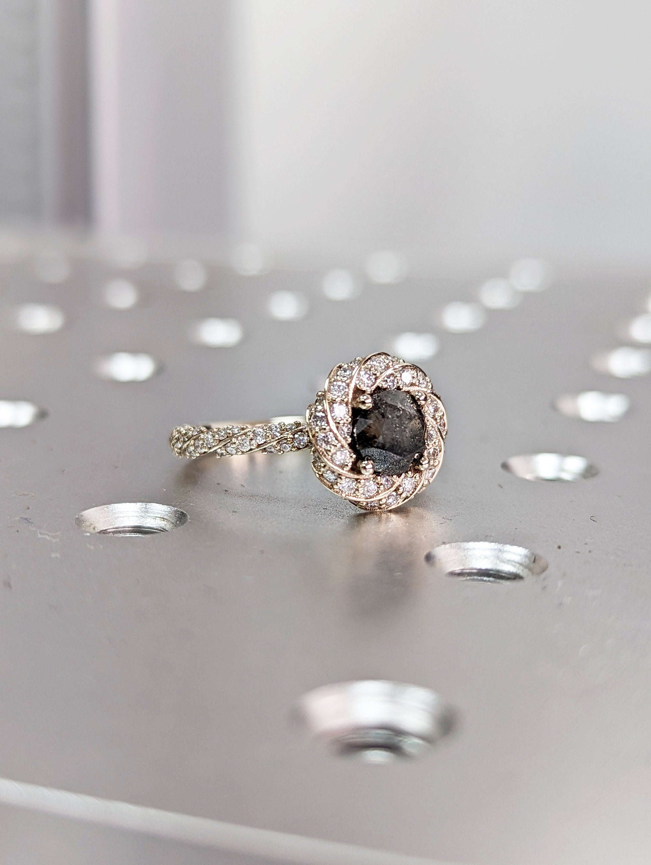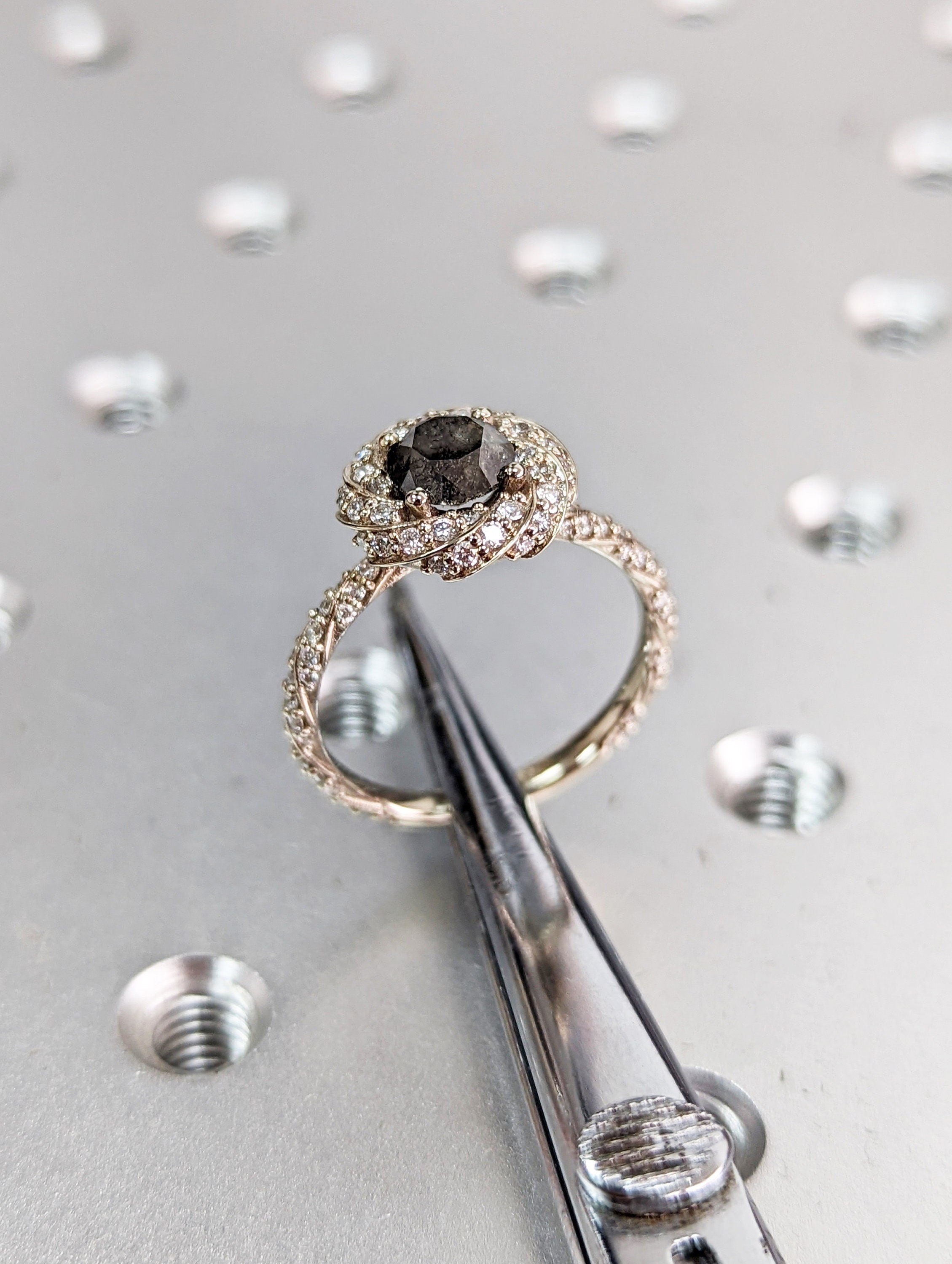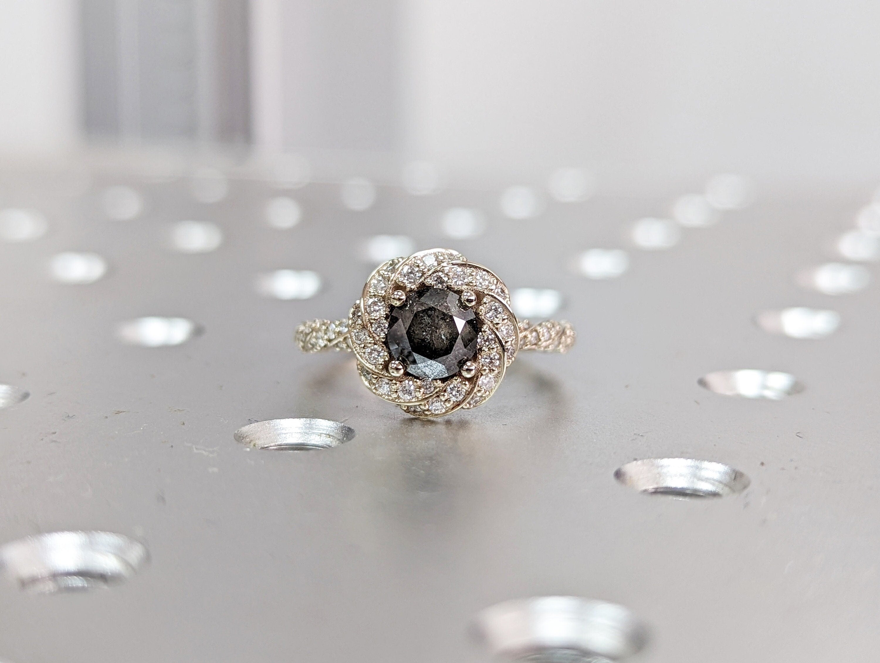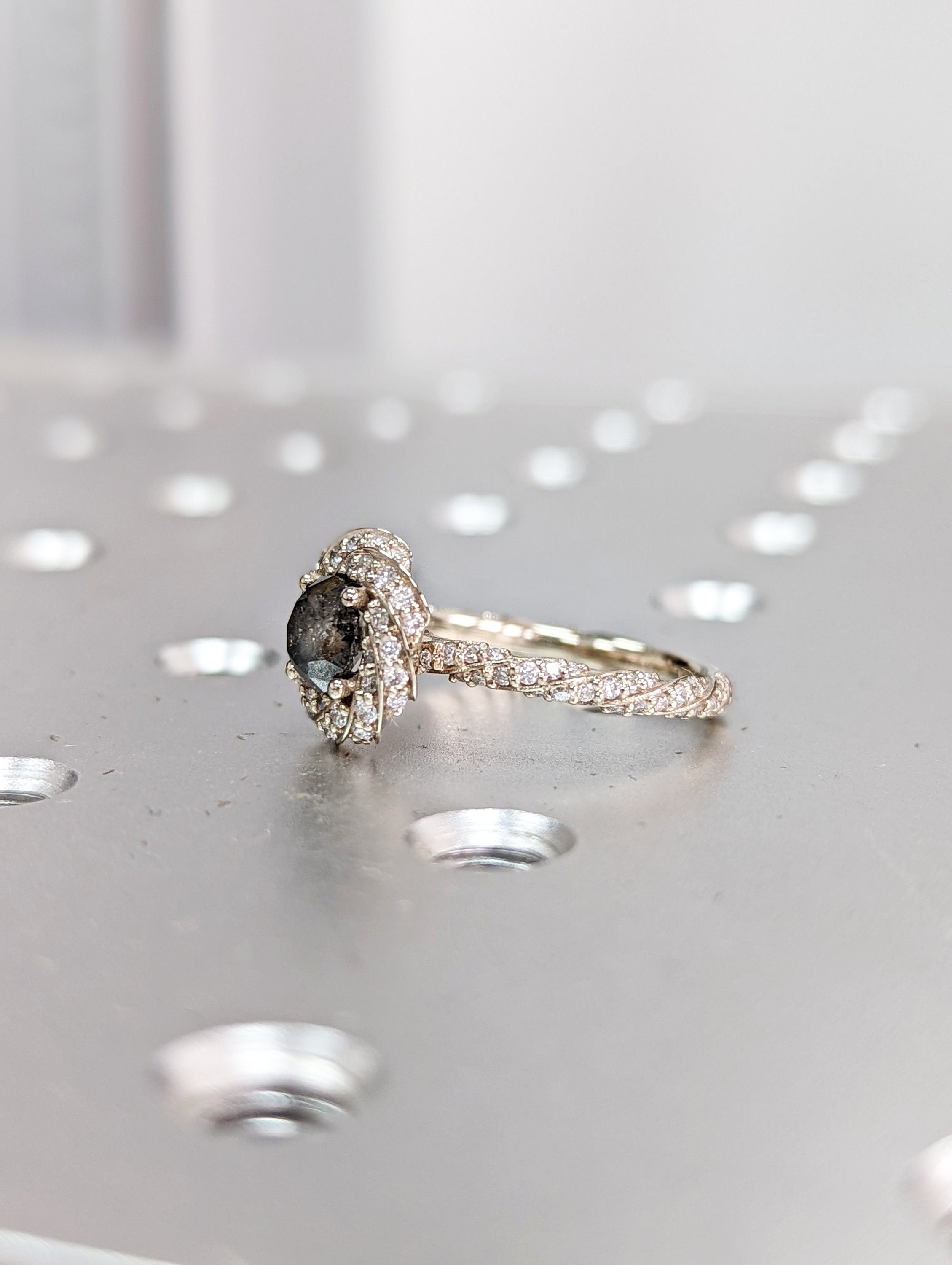 Salt & pepper diamond ring, Grey diamond engagement ring, Natural diamond cluster, Round Cut Halo Engagement Ring Solid 14k White Gold