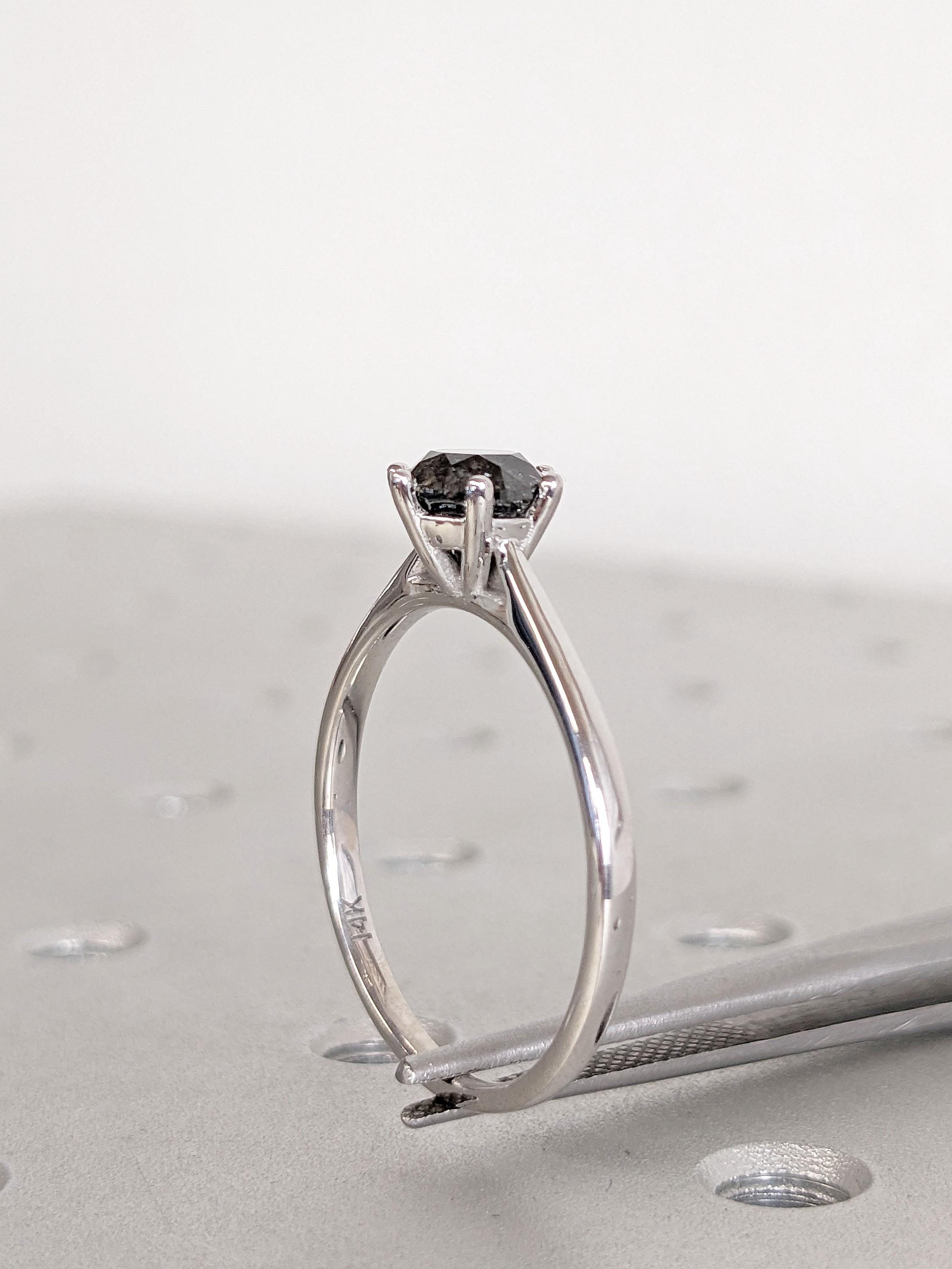 Salt & Pepper Round Cut Solitaire Engagement Ring • Grey Diamond Ring • 14K Gold Ring • Simple Proposal Ring • Cathedral Style Promise Ring