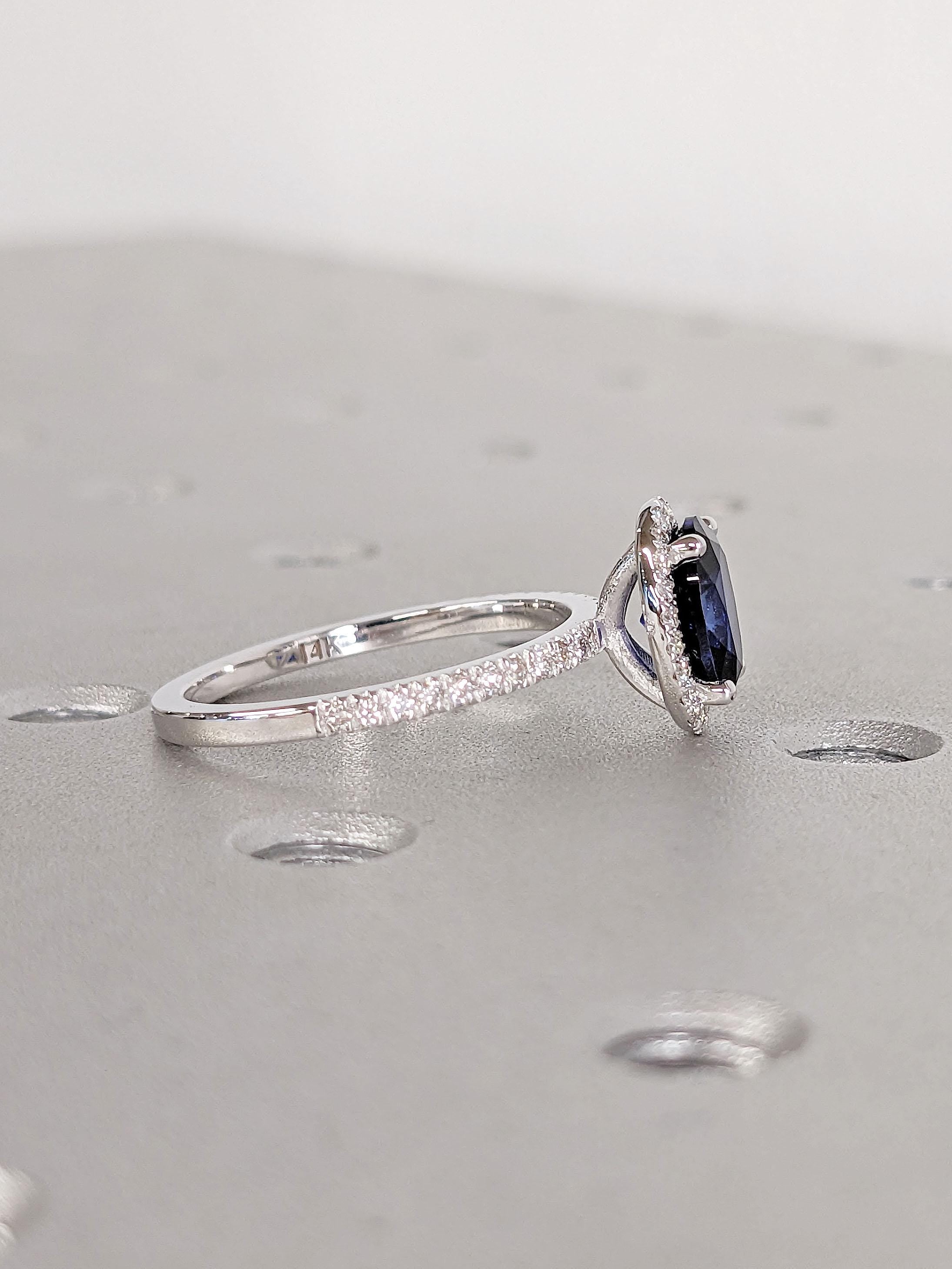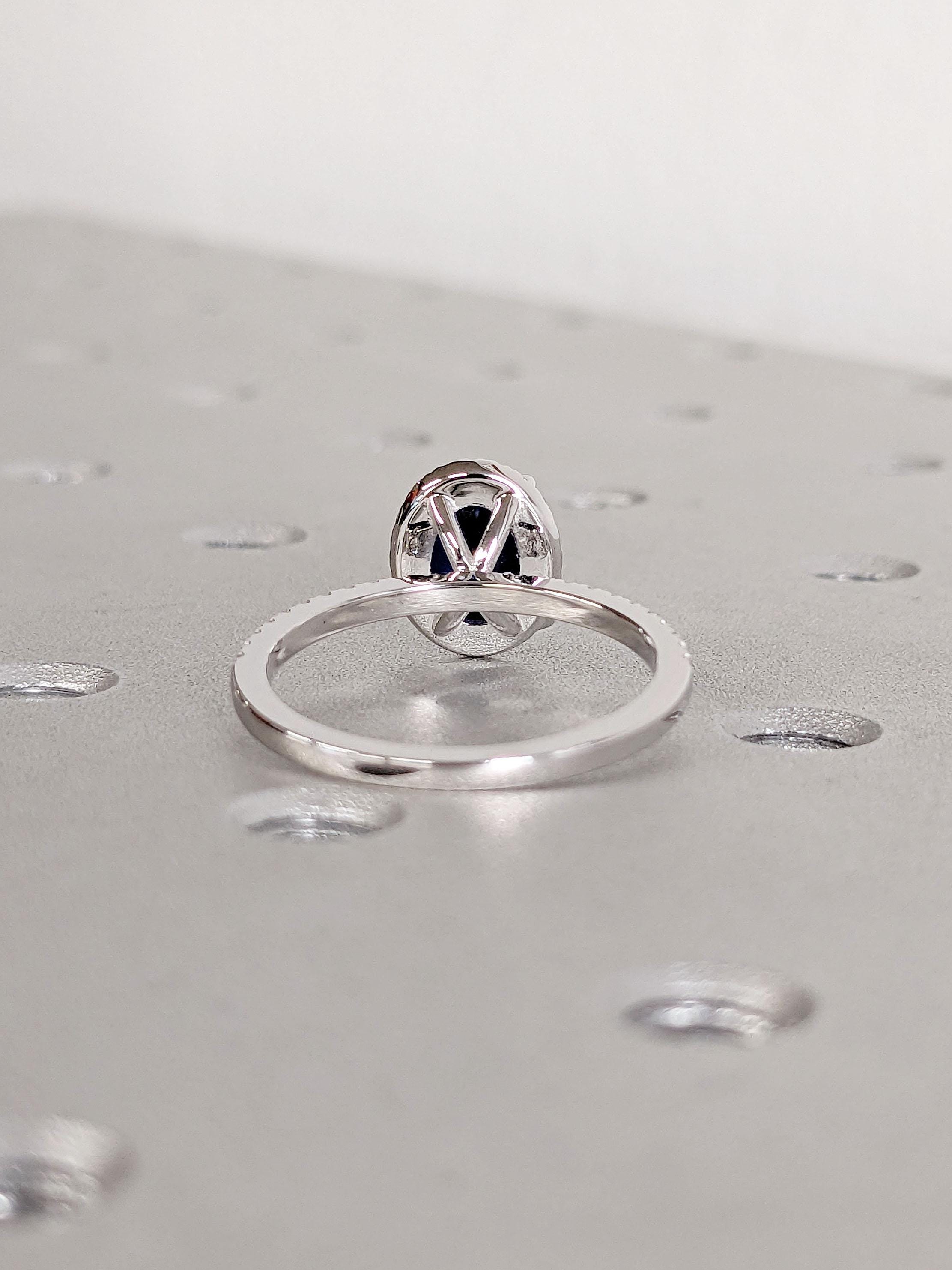 Sapphire and Diamond Ring | Vintage Oval Halo Rings | Lab Created Sapphire Engagement Rings for Women | White Gold Blue Sapphire Ring