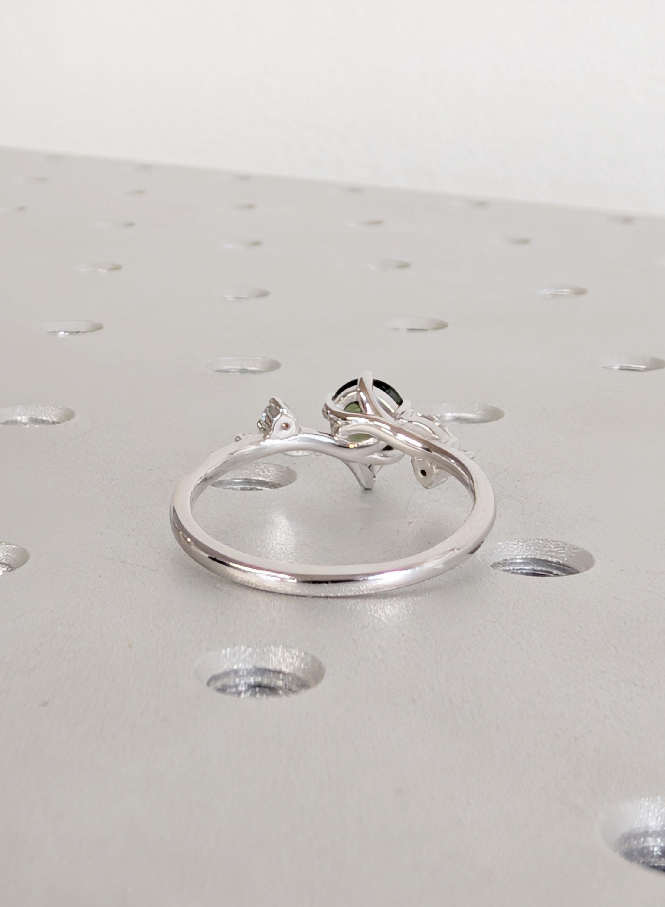 Sapphire Engagement Ring, 14K White Gold Pear Shaped Sapphire Ring, Nature Inspired Diamond Leaf Ring, Vintage Peacock Sapphire Wedding Ring