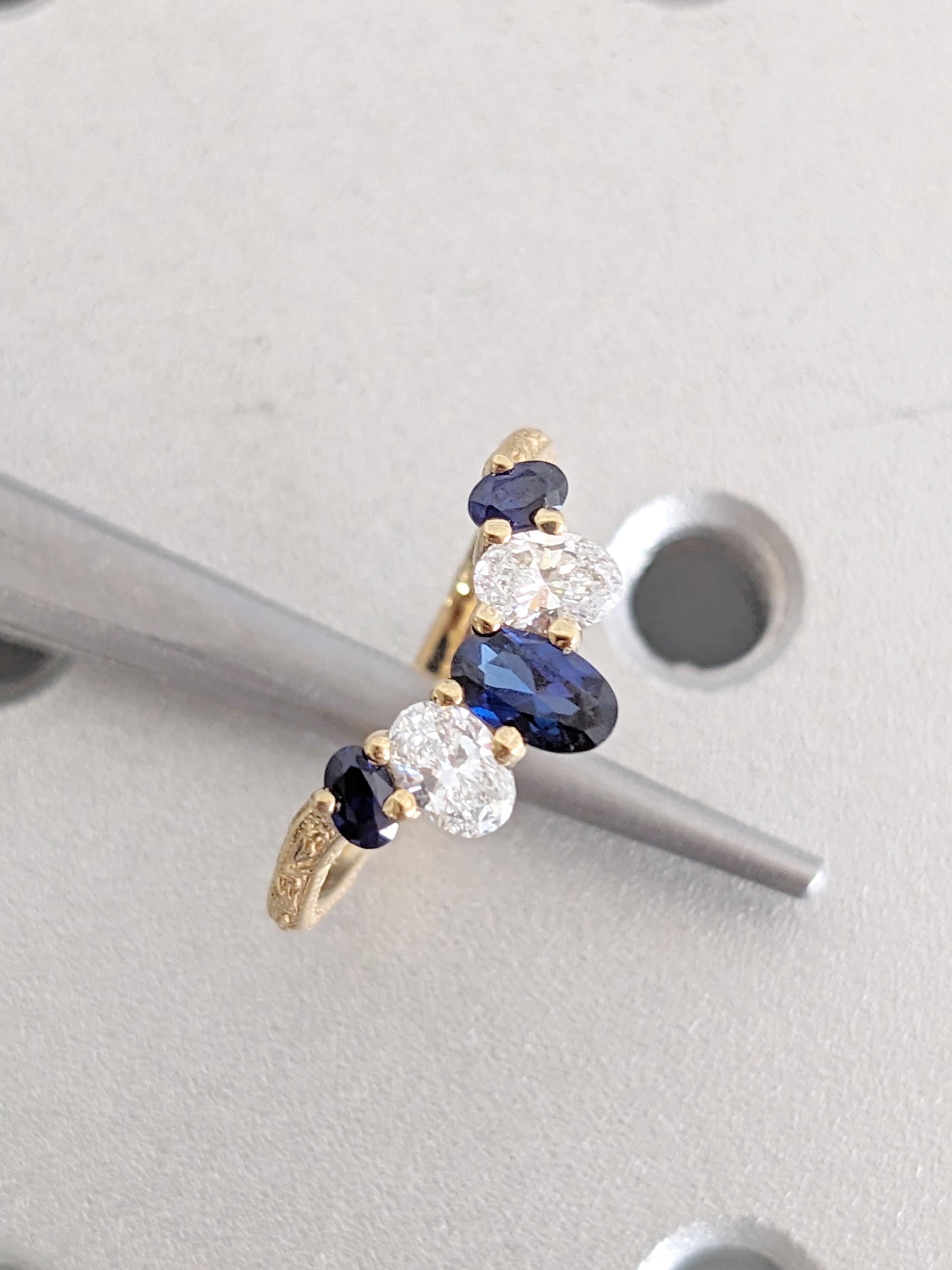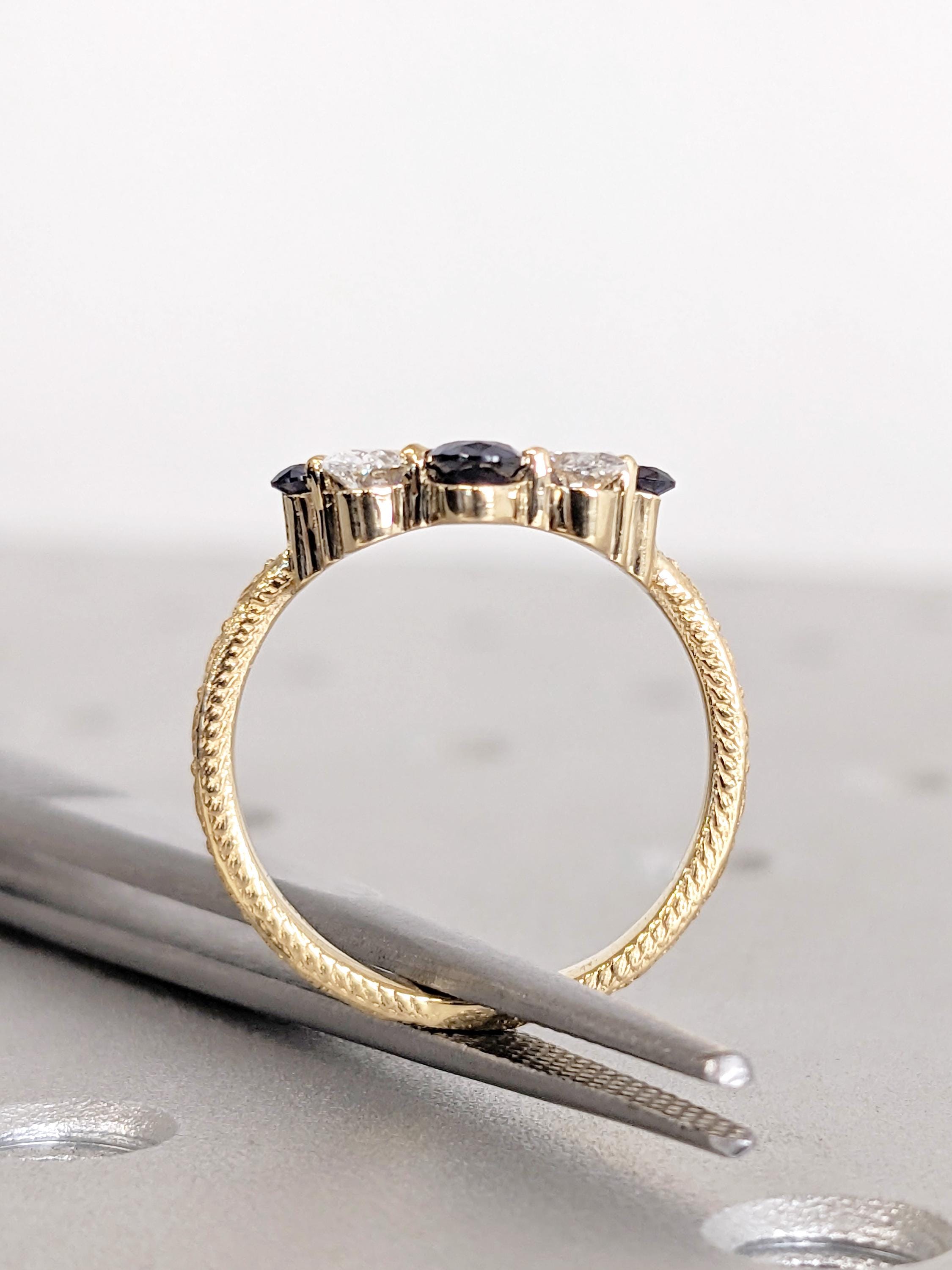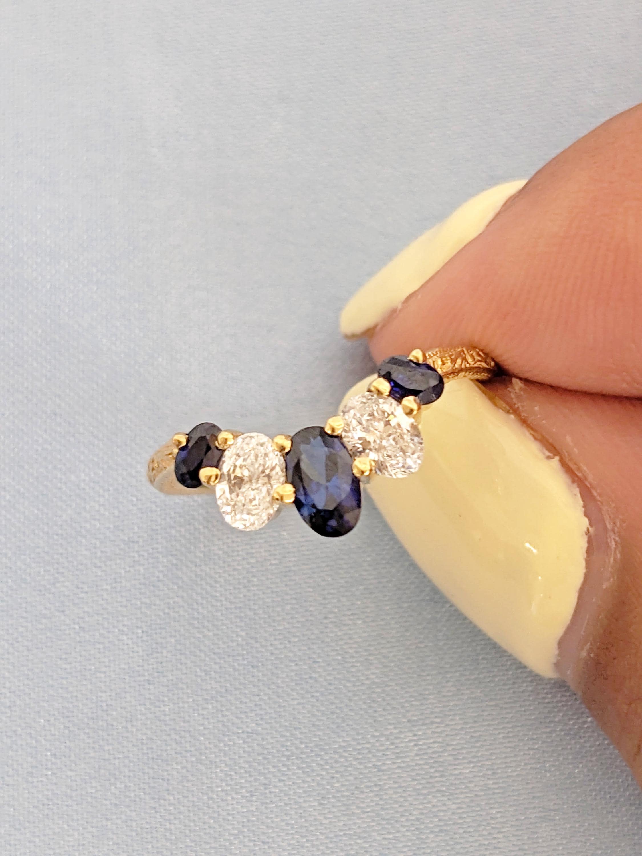 Sapphire Wedding Bands | Blue Sapphire Matching Ring | 18K Yellow Gold Ring | Oval Cut Lab Sapphire and Diamond Ring | Sapphire Jewelry Gift