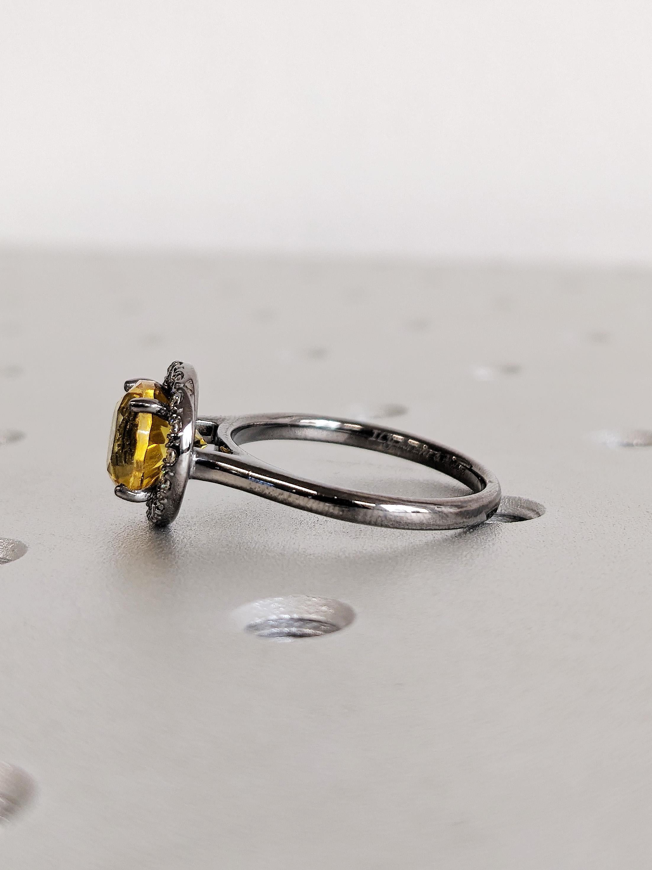 This yellow Lab Sapphire engagement ring radiates warmth and brilliance, surrounded by a shimmering halo that enhances its golden glow. A symbol of creativity and wisdom, it’s the perfect birthstone piece. The side stones are available in Natural Diamond, Lab Diamond and Moissanite, making it a meaningful choice for anniversaries or everyday wear.