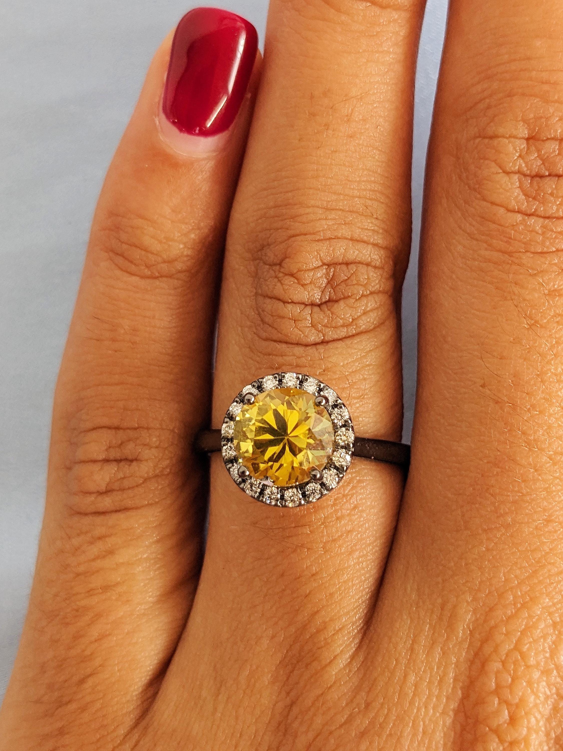 September Birthstone Engagement Ring, Round Yellow Sapphire Anniversary Wedding Band, Diamond Halo Promise Ring