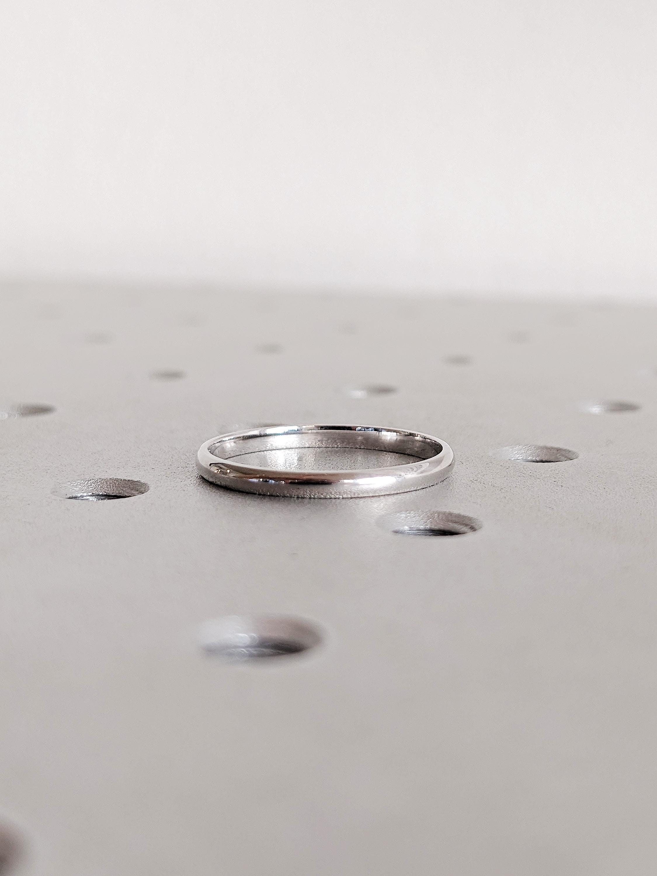 This classic low dome wedding band embodies timeless simplicity and elegance. Its smooth, low dome profile and shiny polished finish make it feel “barely there” and perfect for everyday wear. Designed with a comfortable fit, it reflects subtle sophistication, making it ideal as a wedding band, engagement ring, or a meaningful piece for daily style.
