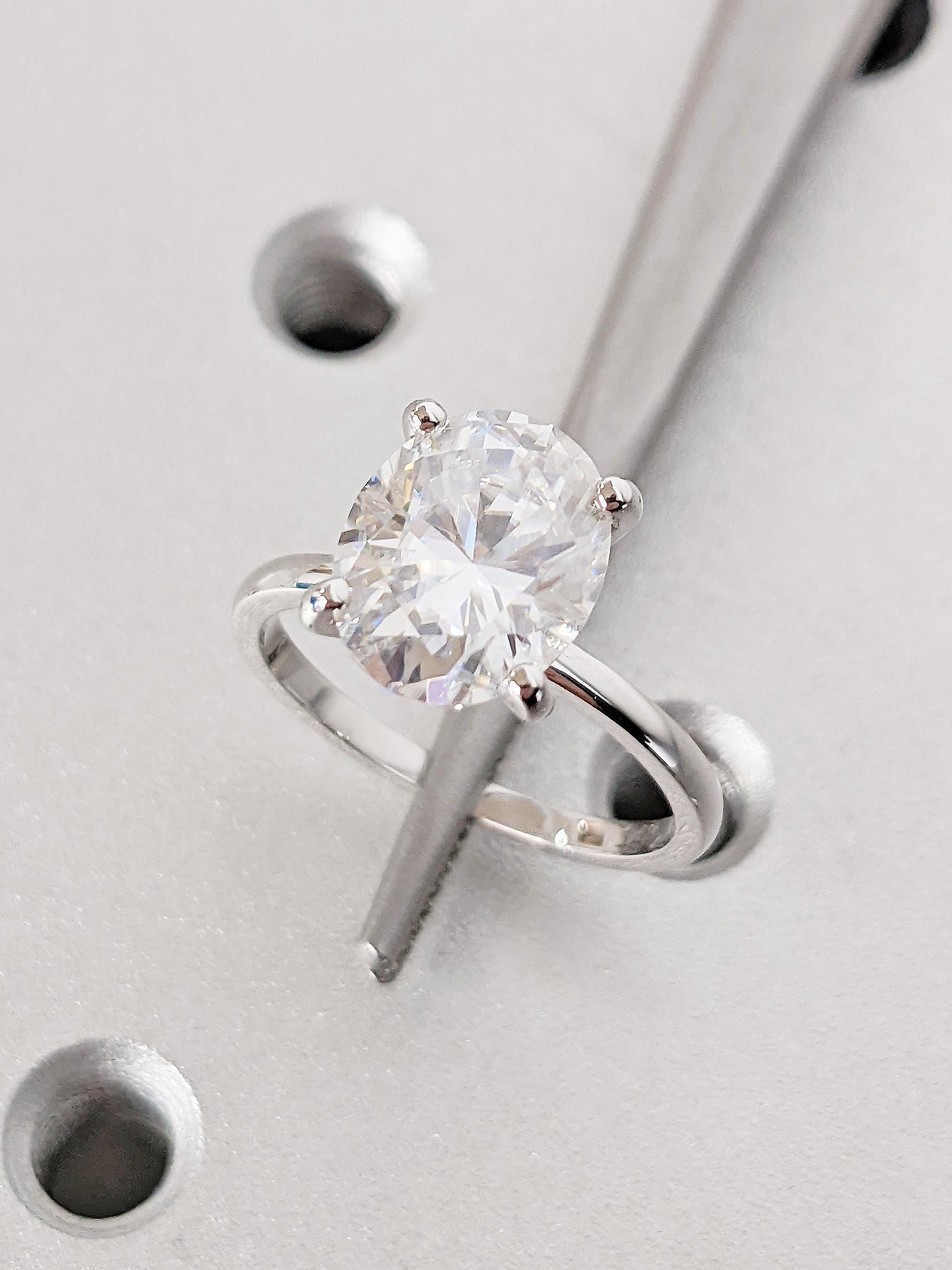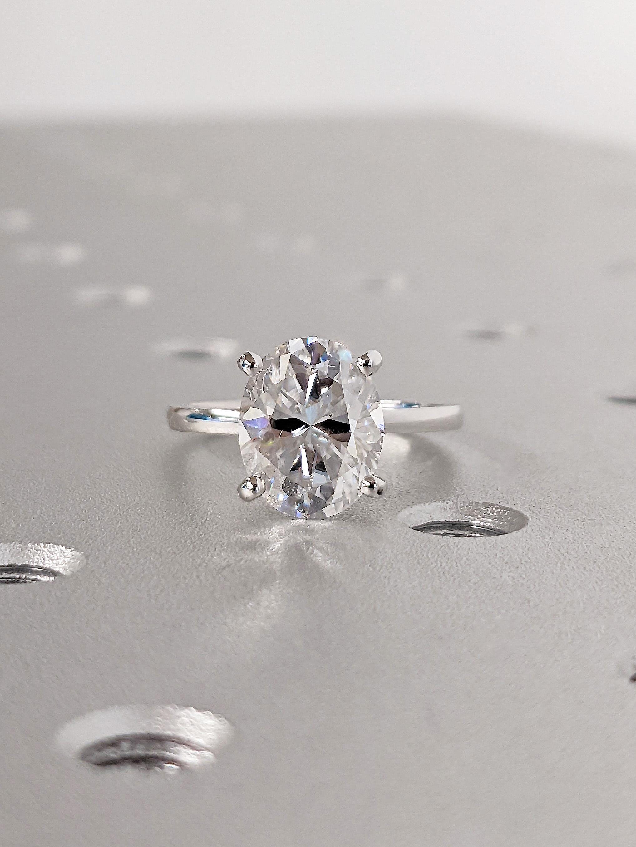 Simple Oval Lab Diamond Wedding Ring, 14k White Gold Lab Grown Diamond Engagement Ring, Oval Cut Solitaire Ring, Certified Lab Diamond Ring
