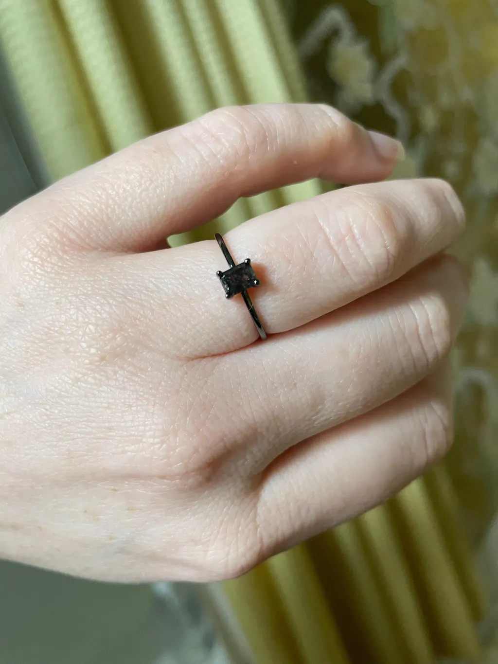 The definition of minimalism, a stunning emerald cut salt and pepper diamond, makes a unique and memorable stacking, wedding or simply stylish ring.