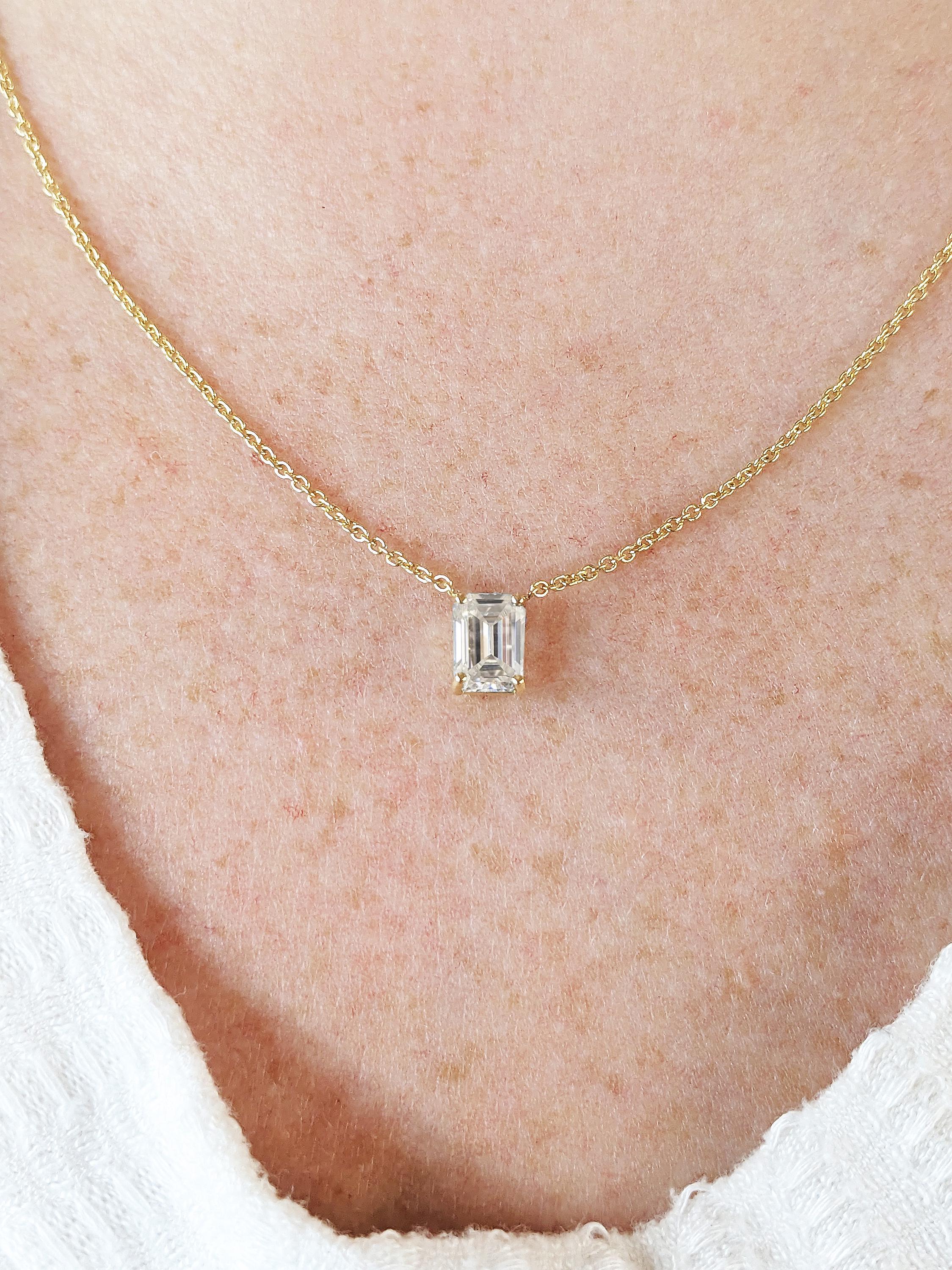 Solitaire Emerald Shaped Lab Diamond Necklace, 18K Solid Yellow Gold Lab Grown Diamond Pendant, Dainty Gold Chain, Christmas Gift for Her